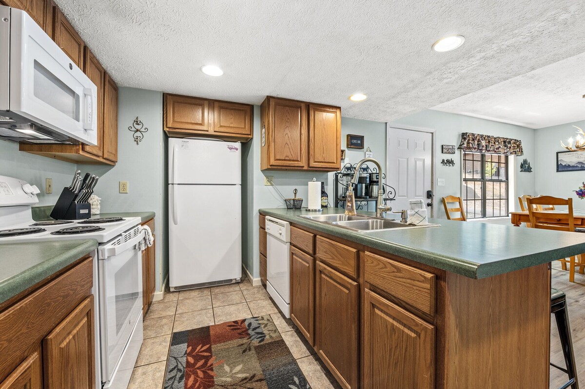 Timber’s Edge cabin is comfortable and updated with 4 true bedrooms and 3 full bathrooms. This cabin provides plenty of space for family and friends with a roomy, open-concept living area with dining room and a well-appointed kitchen, 4 true bedrooms, an upper private balcony, a front porch with rocking chairs and a spacious main level deck. Timber's Edge comfortably sleeps 10 with... *1 KING bedroom on MAIN level with Roku TV. * 2 KING bedrooms on the second floor. One with private balcony and a beautiful wall of windows. The other has a Roku TV. * 2 twin beds in a second floor bedroom with upright arcade video system and a barrel arcade game system. *Pull-out sofa bed in family room plus full size couch Timber's Edge offers plenty of deck space to relax and unwind with the ease of a natural gas grill and fireplace, the peacefulness of a hot tub under the stars, an outdoor table for a game or a meal beneath a canopy of trees, an upper balcony for coffee and a book, or rock on the porch and count the lightening bugs. Inside you can snuggle into either of the 2 leather sofas, lay back in the recliner, or enjoy the comfort of two leather swivel club chairs. The dining area is large, seats 8 at a reclaimed barn wood table, with room for four at the counter/bar. Please check the basket under the coffee bar for additional recommendations and fun things to do! The kitchen is fully stocked with full size range and oven, refrigerator, dishwasher and microwave. Timber's Edge kitchen is nicely outfitted with a large and small crockpot, a large electric griddle, electric can opener, mixing bowls, pitchers, bakeware, utensils, measuring cups and spoons, sheet and pizza pans, etc. Make coffee at the coffee bar by the pot or by the cup in the Keurig. *There is a Ring Audio/Video Camera Motion Activated Flood Light on the front porch to light up the front steps and monitor the front door for the security of both our guests and the property. Timber's Edge is located in a small resort area. Enjoy the smooth paved roads, a community outdoor swimming pool (open seasonally May to September) and a covered pavilion area with rockers and tables overlooking the pool. The cabin is 3 minutes from the Pigeon Forge Parkway. The Island is 1.5 miles. The Cal Ripken experience, 3.4 miles. Dollywood is 5.6 miles away! Wears Valley is 8 miles and Gatlinburg is 10! Take the Townsend entrance to the Great Smokey Mountain National Park, have easy access to the Foothills Parkway, and don't miss the Metcalf Bottom entrance to Cade's Cove. Our prices include all fees. No hidden fees.
