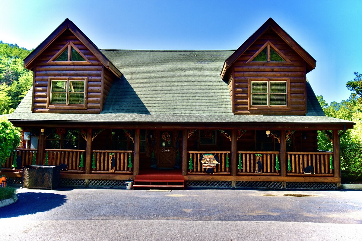 Take your next Smoky Mountains retreat from ordinary to extraordinary with our Hallmark Log Cabin. A 5-bedroom, 5-bath cabin. This exceptional home boasts 2900 sq feet of living space, sleeps 12, private hot tub & jacuzzi, BBQ, Game room. Enjoy the indoor & outdoor resort pools. Show off your skills on the community putting green or discover the world-class attractions in Gatlinburg or Pigeon Forge, both located under 5 miles away. Our prices include all fees. No hidden fees.