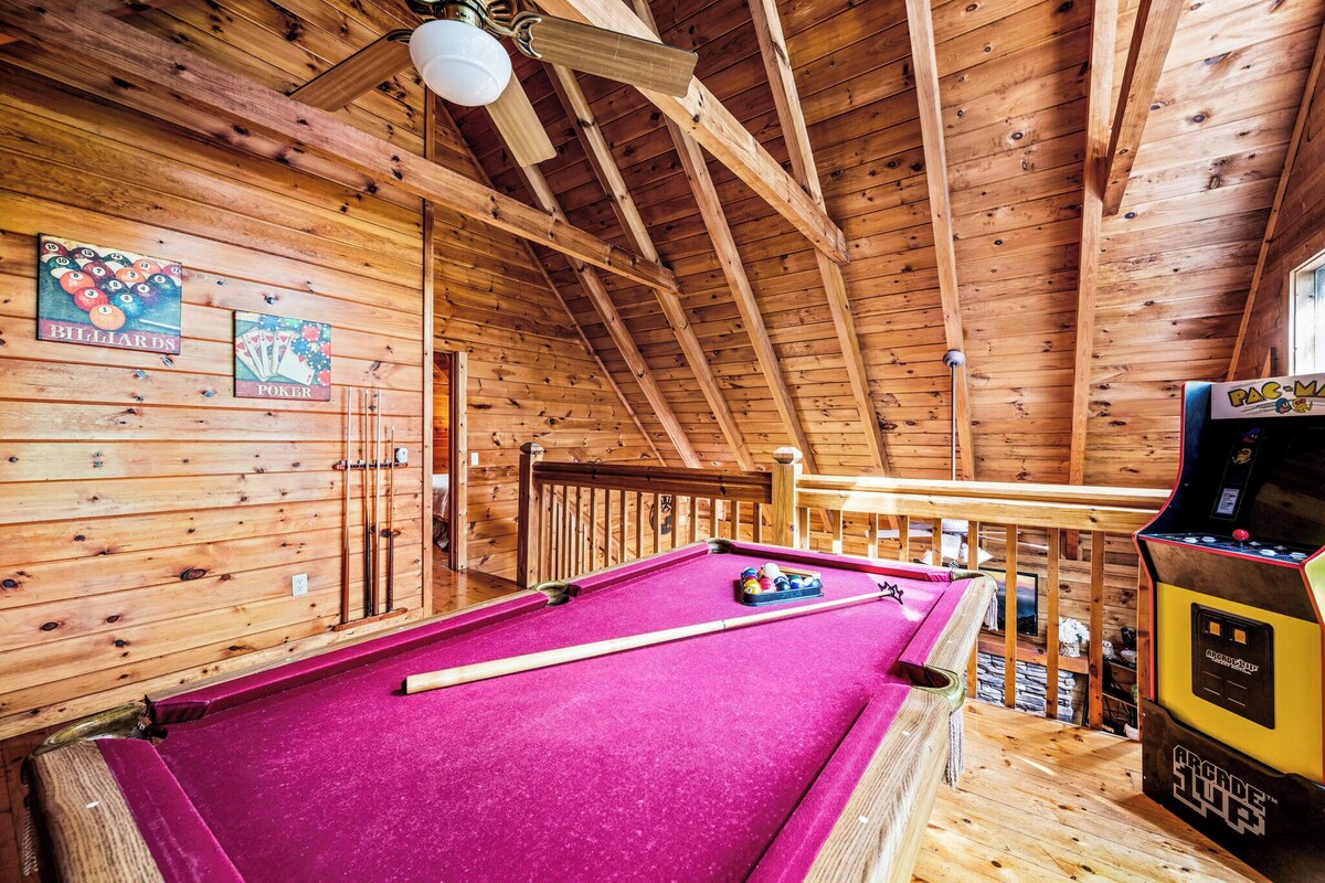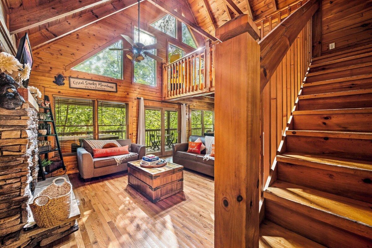 Our charming cabin is in the heart of the Smoky Mountains, conveniently located between Pigeon Forge and Gatlinburg. Designed for multiple families traveling together, this open-concept, 2 BDR/2 full BA cabin combines modern amenities with classic cabin elements. It boasts two levels of living space for 8 guests and decks with great views. If you have kids in tow, it's the home for you! KEY FEATURES: 🛏 Sleeps 8, 2 private bedrooms; 1 king bed and 1 queen bed. Additional sleeping spaces in the living room ( 🛋 queen sofa bed, 🛋 twin sofa bed and futon) ☀ Pet friendly ☀ Smart TVs in each room 🕹🕹Arcade games ☀ 2 full bathrooms; tub/shower combos ☀ Reliable Hi-speed internet ☀ Private Outdoor hot tub ☀ Pool Table ☀ Board games selections to enjoy with family or friends after a long day out ☀ Two Fireplaces ☀ Fresh coffee (combo K-cup & drip coffee machine) ☀ Perfect location in a quiet neighborhood near all the popular attractions ☀ 3.9 miles to Gatlinburg and 4.9 to Pigeon Forge 🏔 Beautiful views ☀ Private Wrap around Deck ☀ Fully stocked kitchen ☀ In-unit washer and dryer ☀ Parking for 2 cars ☀No smoking inside Guest access 🗝You will get a personalized key code for the front door before check-in. Easily park 2 cars in the driveway, possibly fit up to 3. *The kitchen comes fully stocked with utensils and ample cookware making it easy for a quiet night in with groceries that you provide. *Step out onto the newly-covered back deck to enjoy the serenity of being located within the Wildwood Forest by soaking in the color changing hot tub that is drained and sanitized before your stay. *We provide you a clean cabin upon your arrival with freshly cleaned bedding; ample towels and wash cloths; a small starter set of essentials such as trash bags, paper towels, toilet paper, and dishwasher soap. There is a washer and dryer for your convenience, but you will need to provide your own detergent. *Unlimited High-Speed Wi-fi is provided. Our prices include all fees. No hidden fees.