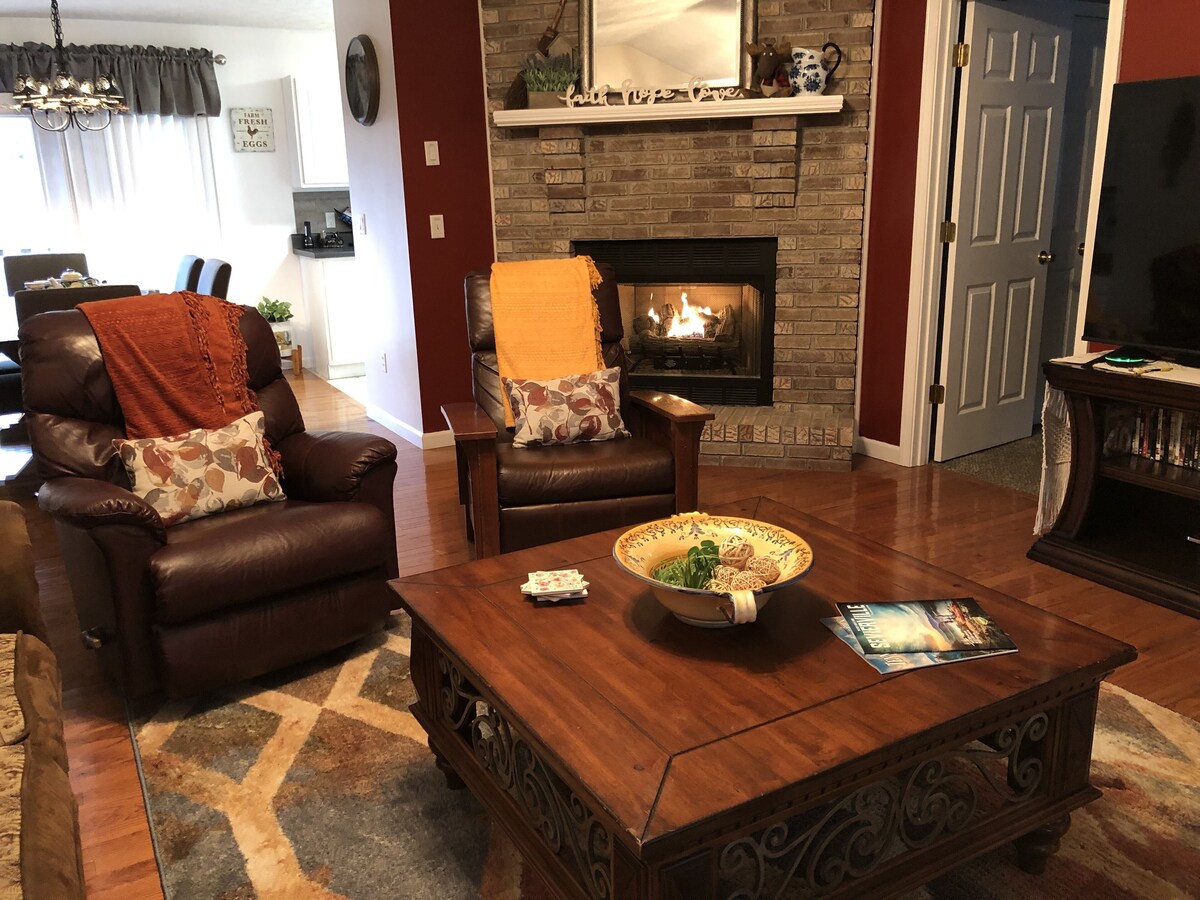 This is a well appointed single level home with everything your vacation needs. The Master bedroom has a comfy king size bed, private bath with jacuzzi tub, a walk-in closet and a large HDTV. The second room has a cozy King size bed, large closet and beautiful HDTV. The third bedroom features two Bunk beds, plenty of board games and a large HDTV. The second and third bedrooms share a bath between them. The living room is spacious with fireplace, plenty of seating, a queen size sleeper sofa, a gaming system with over a hundred games and a 65in HDTV. All TV's have streaming for our quests to enjoy. The dining room seats 6 around a large wooden farmhouse table (we have extra chairs in mudroom). The Kitchen has everything you need to prepare large meals or just microwaving leftovers, and a huge coffee and tea station to get your morning started. The main hang out spot is the game room. We spared no expense to make this a room to build family memories. Pool Table, foosball table, Competition Air Hockey Table, Competition Dart board, 4 stand up video game Cabinets, With multiple Games, 65in HDTV , and over 50 popular Board Games, And much more make this the FUN ZONE. The home is equipped with blazing fast Wi-Fi for gamers, streamers, and workaholics. The front porch offers rockers and a swing to relax and enjoy the night skies and the back deck features a Jacuzzi Hot Tub where you and your guests can relax sipping your favorite adult beverages while watching the nightly Dollywood fireworks show, (yes, we are that close to Dollywood, but you would never know it). We follow advanced cleaning techniques and CDC guidelines for the home and The Hot Tub is emptied, cleaned, and refilled between each guest. The Home is on an acre of private land for you to enjoy. So, welcome to Sunshine Cottage, kick back and relax, we got you covered. Our prices include all fees. No hidden fees.