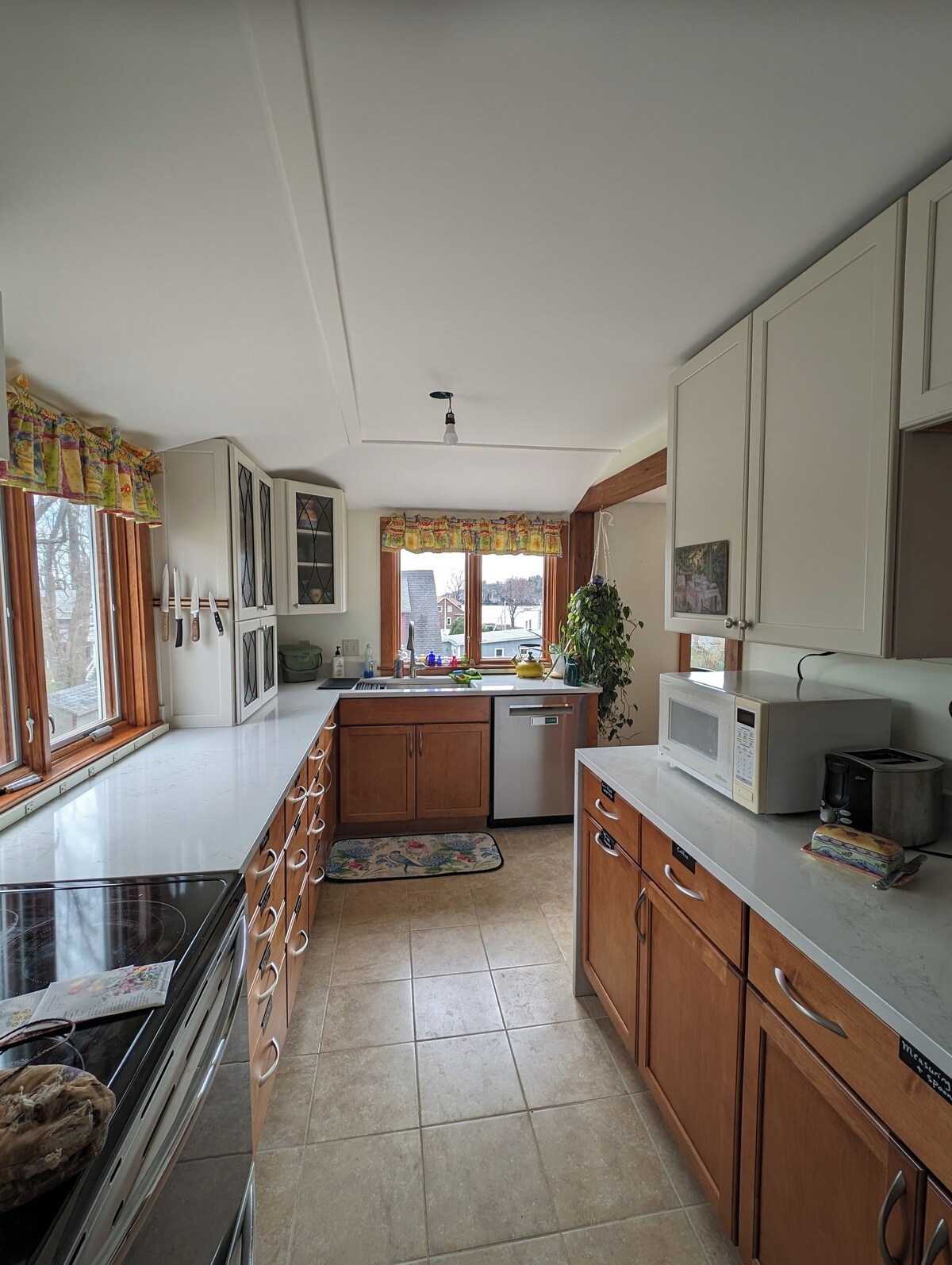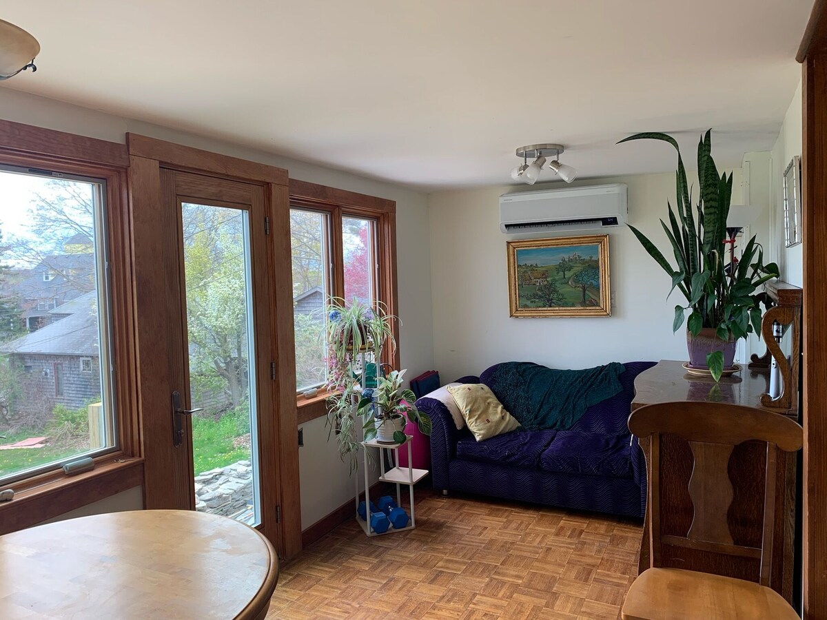 Cagasa Cottage is a friendly place originally designed for an inter-generational family with mobility issues and a dog. It is a sunny cottage with bright east and south light, ocean views from most rooms, centrally located and very joyful comfortable place to stay. There are two bedrooms outfitted with queen beds, and a 'bunk room' that has a double bed with a twin upper bunk, and a free-standing twin bed. The cottage is appropriate for no more than 7 adults, but there is room for more kids on the upper twin bunk and in the 'Harry Potter Room. Right now we have a crib installed in one of the bedrooms. There is also a port-a-crib available. Downstairs is a fully outfitted kitchen, freshly updated in 2024, with views of the ocean from the sink. Next to that is the enclosed sunroom with the dining area and a reading nook with a couch. The 'Maine Room' behind that has a conversation area, card table for puzzles or games, a bar, a gas fireplace, a smart TV, and the special 'Harry Potter Room' under the stairs, outfitted with a twin mattress and bunches of pillows. To the north of this room is a downstairs master bedroom with a queen bed. The adjoining bathroom has a 3'x5' step-in shower alcove with a bath chair and/or a wash tub for bathing sticky children. Upstairs is a bright bathroom with a spacious shower stall. The ocean-view upstairs south bedroom has a queen bed and a writing desk overlooking the water. The east-facing \ has two twin beds (including the top bunk) and a full (double) bed. We've set up the place to be handicap friendly: there is a 30' metal ramp up to the front door. The downstairs bathroom has a step-in alcove shower and chair-height toilet. (Be aware, though, that there are some elevation changes between rooms of up to 2' in one place and doorways are too narrow to be ADA compliant.) It was designed for an elder who used a walker. Dogs are allowed with an extra non-refundable cleaning fee. We provide food and water dishes, a crate suitable for a dog up to 90 pounds, and tie-outs in case you wish to secure your pet while you're away from the cottage. We clean carefully after pets, but people who are allergic to pet fur should look elsewhere. Please no smoking in the house, but there's an ash bucket and seating on both the east and west decks for smoking outside. A main attraction of Peaks Island is walking or biking or rollerblading the four mile loop around the island. It goes through the village but also around the Back Shore with views of other islands and the nothingness of the ocean. The south windows at Cagasa Cottage all look out onto the Seashore Road and you can make a sport of watching people even if you're not into doing the loop yourself. There are a couple of sandy beaches and a lot of rocky ones within a five minute walk. Be sure to check out the 'sculpture beach' where people make rock towers that are quite ambitious sometimes... way better than sand castles. There are two decks and a patio: the east deck is larger and acts as the front porch. We often take a cup of coffee out and sit on the steps enjoying the air in the morning. It's also a nice place to find shade in the afternoon. The west deck is in the small enclosed garden and has nice views of the ocean, including breakers off of Cushing Island. It has a round table with an umbrella for shade that seats five and a rectangular table that can seat six, so that's where we have our lobster feasts. The new stone patio is more public than either of those: a fine place to watch the parade of people going by on the Seashore loop, or simply enjoy the view of the ocean peaking through. The special surprise deck, however, is kitty corner across the street on the back porch of 5th Maine Museum. We often bring a tablecloth and a picnic and eat lunch over there, hanging over the ocean with breathtaking views. It's 10 degrees colder there, so bring a sweater and please port your trash home and clean up after yourself. The museum is staffed by volunteers and runs by donations. Amenities: wifi, gas grill, microwave, full-size oven range, dishwasher, toaster, Keurig coffee-maker, a drip coffee maker that uses #4 cone filters, pancake griddle, crock pot, cooking and baking utensils, bath towels, first aid kit, fire extinguishers and smoke detectors, handicap ramp, first-floor step-in shower, ground-level washer/dryer, remote-controlled gas fireplace, mini-splits for heating and cooling, TRX straps and dumbbells and various workout equipment in the walk-out basement, usually at least one bike suitable for a 5'10\ s a smart TV, though, and there s a wash-tub for bathing sandy sun-blocked small children in the shower alcove.) We usually don ll find stocked at the cottage: spices, soap, at least four rolls of toilet paper, gas for the gas grill, bedspreads and pillows (linens are available for a separate charge), the tools to make a lobster dinner, a dozen or so decaf and regular K-cups for the Keurig, tea bags, sugar, whatever condiments were left by the owner or previous tenants in the fridge (it s vacation home we open up to guests for the summer months. Other notes: The ferry costs about $63 to go over with your car and a driver on Mondays and Tuesdays, ($83 other days) and roughly $14/person ($7 senior) although you can buy a commuter five-pack at a discount. There d want to order ahead for Schwan. WE HAVE A SIX NIGHT MINIMUM: we want this to be a place families could come back to each year so we try to keep the place open for people who love the island and seek to return. Please do not inquire about nightly rates for week-ends: we drive 3 hours each way to clean between guests. We will occasionally do a 4 night minimum in the off season, but in July and August we have a SIX NIGHT MINIMUM. We generally prefer to start the week on Sunday or Monday: the highways and ferry are really hard on Saturdays. We ,