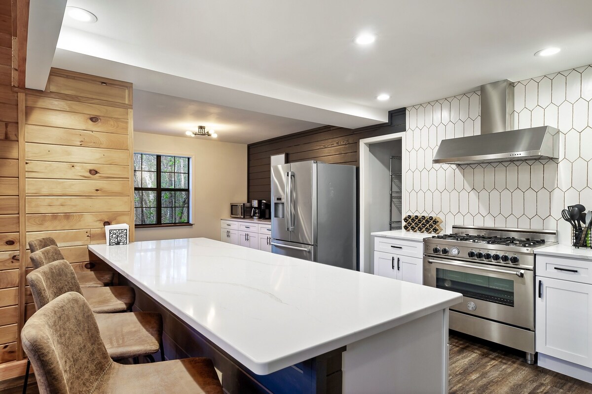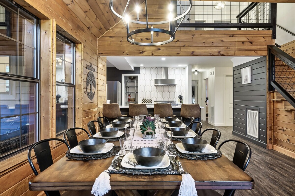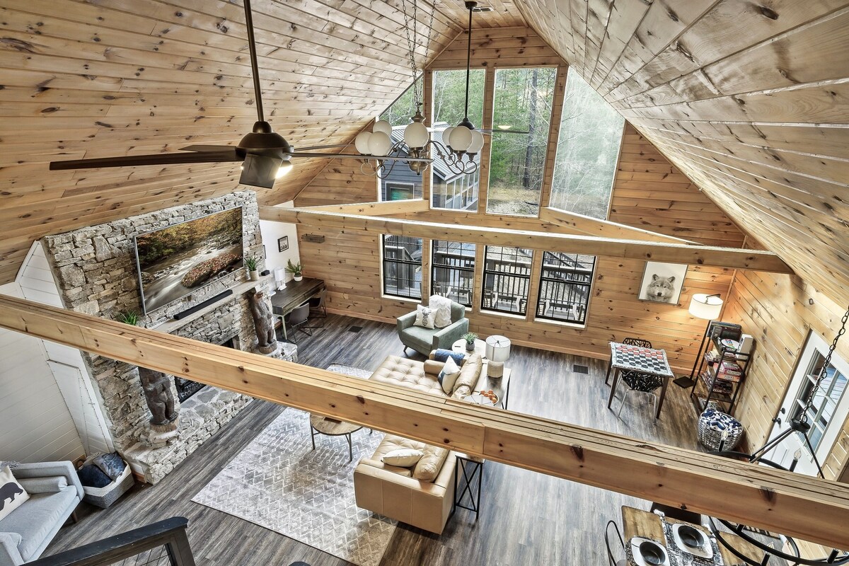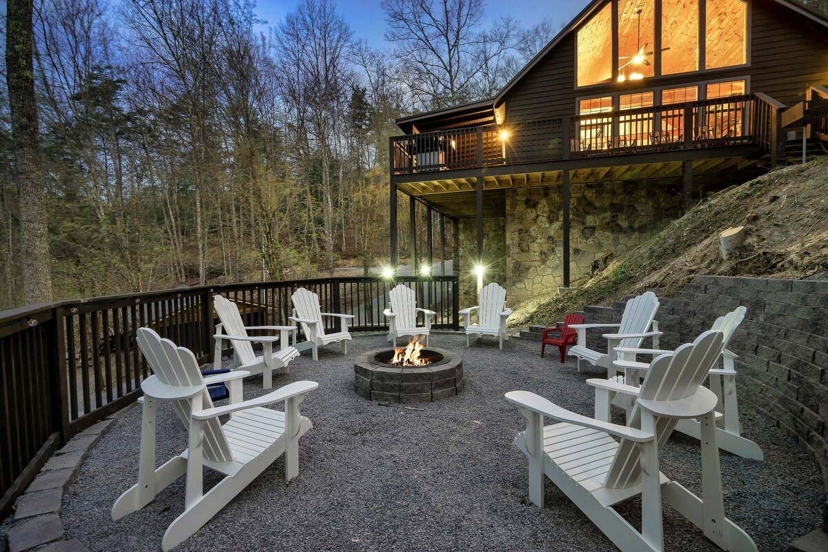 ✔ 5 Spacious *Private* Bedrooms ✔ Fully Equipped Spacious Kitchen ✔ Rustic Modern Open Design ✔ Cathedral Windows ✔ Separate Game Cabin w/Karaoke ✔ Large Deck w/Seating & BBQ Grill ✔ Hot Tub ✔ High-Speed Wi-Fi (800 Mbps) ✔ Community Pool (Seasonal) and Deli ✔ Catch & Release Pond ✔ Whole House Generator With privacy & room to roam, you will find a mountain oasis & no neighbors nearby at this welcoming cabin retreat. When it’s time for adventure & exploration of the Smoky Mountains, you’re just minutes from an entrance to the National Park. It’s a perfect mix of comfort, seclusion & convenience. There’s more below! ▼▼▼ The Space: Upon entering this newly remodeled cabin, you’ll feel the luxurious vibe and take in the modern décor. The spaces are also comfortable and inviting. You will immediately feel at home. Enjoy the main floor open living area with vaulted ceilings. With two bedrooms on the main floor and three bedrooms on the upper level, there’s room for everyone to recharge after a day of exciting adventures in The Smokies. But the best is yet to come – the large fire pit area with plenty of seating, the hot tub, and the separate game cabin with foosball, air hockey, a 60+ video game console, and karaoke provide entertainment options for your whole group. Finally, you’ll be able to breathe the fresh mountain air from the private deck and marvel at the gorgeous natural surroundings. Temporarily turn off the world as you surround yourself with nature’s soothing calm. Your closest neighbors will be of the furred or feathered variety. ★ LIVING ROOM ★ Open concept design living room is the heartbeat of the home. Relax by the fireplace after a day of adventuring through the gorgeous mountains or the many nearby attractions. ✔ Comfortable Seating w/Throws ✔ Smart TV – 75” LG Artificial Intelligence ThinQ ✔ Indoor Fireplace (electric) ✔ Coffee & Side Tables ✔ Quiet corner stocked with Games & Puzzles ✔ Access to the Outdoor Deck ★ KITCHEN & DINING ★ This kitchen and a large dining table is a culinary oasis. Even the most demanding chefs can prepare delicious meals using the modern appliances. Spacious quartz countertops and enormous kitchen peninsula provide plenty of space to unleash your cooking creativity. ✔ Microwave ✔ Gas Stove & Oven ✔ Refrigerator/Freezer ✔ Dishwasher ✔ Coffee Makers ✔ Electric tea kettle w/infuser ✔ Toaster ✔ Blender ✔ Food Processor ✔ Roasting Pan ✔ Glassware ✔ Coffee Mugs ✔ Silverware ✔ Pots & Pans ✔ Grill tools ✔ Marshmallow Skewers ✔ Dining table - seating for 10-12, plus additional seating at the kitchen bar ★ SLEEPING ARRANGEMENTS – 5 PRIVATE BEDROOMS ★ The cabin features five tastefully furnished private bedrooms. No loft beds or sleeper sofas! All bedrooms offer high levels of comfort and convenience needed after a full day of creating memories. ♛ Bedroom 1: King-Size Bed (upper level; ensuite access to shared bathroom) ♛ Bedroom 2: King-Size Bed (upper level) ♛ Bedroom 3: Twin Day Bed (upper level) ♛ Bedroom 4: Queen-Size Bed (main level) ♛ Bedroom 5: Two Full Size Beds (main level) All bedrooms feature a similar set of amenities. ✔ Premium Pillows, Linens, and Sheets ✔ Flat-Screen TVs - Roku or Android TV (no TV in twin bedroom), bring your logins and passwords ✔ Nightstands with Reading Lamps ✔ Luggage Racks ✔ Dressing Table w/Lamp & Magnifying Mirror (not in twin bedroom) ✔ Robes ✔ Closet with hangers ✔ Box Fans ★ BATHROOMS ★ To provide you with the most carefree stay imaginable, all baths are stocked with… ✔ Ample Fresh Luxurious Towels ✔ Shower/Tub Combination ✔ Vanity ✔ Mirror ✔ Toilet ✔ Hair Dryer ✔ Essential Toiletries (starter pack) ★ GAME CABIN ★ (standalone building) Enjoy the entertaining game cabin, where you can partake in different fun activities. Be careful, though. You’ll quickly lose track of time while playing with your family and friends. Because it's separate from the main cabin, folks can enjoy quiet conversation in the living room while others can hoot and holler (or Karaoke) in the game cabin. ✔ Karaoke ✔ Arcade Style Gaming Console (60+ games) ✔ Air Hockey ✔ Foosball ✔ Flat-Screen TV (Roku) ★ OUTDOOR AREAS ★ A private mountain setting doesn't get much better than this! Surrounded by treetops, at times you will feel as if you are in a treehouse in this lovely outdoor setting from which you can enjoy the quiet and majestic natural ambiance. Start your day with a cup of fresh coffee on the wraparound (covered) deck, and end your day of adventuring by grilling some BBQ, relaxing in the hot tub, or chill in the Adirondack chairs cooking s’mores around the fire pit. There are endless opportunities! ✔ Hot Tub ✔ Outdoor Fire Pit with Ample Seating (wood not provided, easily purchased along Wears Valley Rd or local grocerystores) ✔ BBQ (propane grill) ✔ Deck Seating Areas - Cushioned Chairs, Ottomans, and Bentwood Rockers with Side Tables We love this cabin and want you to as well. We have tried to think of everything that would make your stay relaxing and memorable. We look forward to hosting you, and please let us know if you have any questions; Happy Travels! Guest Access The cabin is exclusively yours, so, relax, unwind, and make yourself at home. Note: The only exceptions are the locked crawl space (mechanicals and storage) as well as a hallway closet upstairs reserved for the cleaning team and a closet in the twin bedroom which houses part of the heat pump. Other than the already mentioned amenities, our home is also equipped with: ✔ High-Speed Wi-Fi (max ~600 Mbs) – cellular coverage is sketchy throughout the Smoky Mountains, but once you are on site we have you covered ✔ Air Conditioning ✔ Heating ✔ Washer/Dryer ✔ Iron/Board ✔ *Whole Cabin Generator* – You won’t find this amenity in 99% of cabins! The generator will provide power f