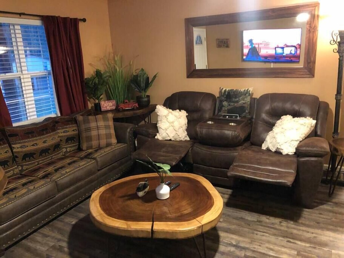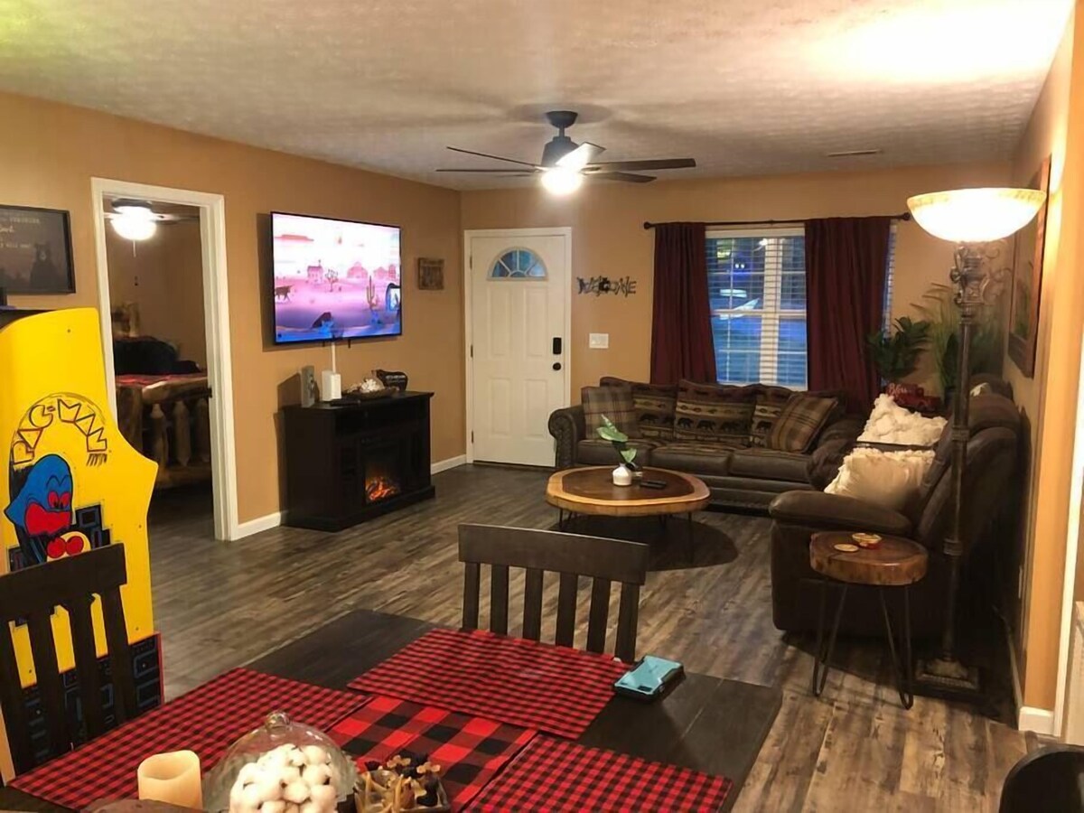 Do you want to settle for a “good enough” place for your family’s vacation or do you want something that will wow them? Welcome to our newly renovated home just 2 miles from Dollywood! If you want to stay in the lap of luxury right in the heart of Pigeon Forge and Sevierville and still feel like you are nestled away in the mountains, then this is right for you! We take a ton of pride in making this the cleanest place you’ve ever stayed. If you have any question about the cleanliness, location, or pure awesomeness, take a look at our reviews and you will believe! This home is located in a very quiet holler right off of Veterans Blvd. so you can get where ya wanna go quick but feel like you’re deep in the woods when you get back home from a day of fun! You’ll be snoozin’ about a minute from Veterans Blvd. and only a few minutes from the Parkway! We want y'all to love this place like we love our home so we spared no expense to make you feel at home. From the Egyptian Cotton, Anti-Allergen linens, to the down alternative comforters and pillows, bamboo heat-wicking sheets, brand new foam top mattresses, and more, you’ll be sleeping like royalty. (We just ain’t got no one to feed you grapes). This place is also loaded with some tech goodies. We’ve got a comprehensive cable package you can watch on your 42” smart TVs in each bedroom, 55” in the master, 65” in the living room, and arcade games with 31 games for you to set some high scores! Our favorites are the Simpsons, Bowling, Rampage, Pac-Man, Big Buck Hunter, Mortal Kombat, Tapper, and Galaga. And listen… I know this ain’t no beach but with our high speed 1200 Mbps internet (our teenager says that’s good), you can still surf the web! #DadJokes Your retreat will come fully stocked with all the kitchen appliances we could think of for any home cooked meals you like to make. From the granite countertops to the special touches you’ll feel when you stay, you’ll appreciate all of the love we put into this place. You’ll also enjoy a dining table that seats more people than you can fit into the house so you really ain’t gotta sit by someone if you’re mad come dinner time. (But if you are, you won’t be a jerk on vacation anyways) While you’re out on the town, don’t be afraid to get a little dirty or start a food fight at a nice restaurant (as long as you don’t tell ‘em we said to do it)… The washer and dryer are ultra high-tech quick and quiet with a steam function too… so you can enjoy your family while the laundry spins. The living room has seating for the whole family and a pull-out sofa for your extra guests or your spouse when they’re in trouble! But hey, they probably won’t mind since they’ll have the 65” TV and the arcade games! The master bedroom has a large super comfy king bed. One of the other bedrooms has a king bed which is ultra plush. The other room has a bunk bed with a twin on top and a full on bottom. Last but certainly not least, is the outdoor space complete hammock chairs which… are… awesome sauce! Your family will love the fresh mountain air in between activities. Your pets will also love all the open spaces and grassy areas that you surely won’t find in other listings! If you’re still reading, I know that was about as long as a your grandfather’s encyclopedia collection but… we take pride in our place so we figured you outta know what kind of luxuries you’re in for! We know you’ll love this quiet oasis so much and it will help you make the memories you are here to create. Don’t stay somewhere that’s just “good enough” when you can stay here. Your family will love it and you will NOT regret it. With all the love in our hearts, we hope to see you soon. ❤️Kim and Logan 👶 If you need a pack & play/ crib combo or a high chair, we have limited quantities, so please let us know ASAP. We will confirm availability for you and hold one for you during your reservation. 👶 We are looking forward to serving you soon! Our prices include all fees. No hidden fees.