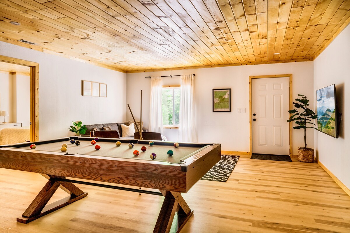 Welcome to Wears Modern by Evereste Experiences – a unique modern mountain cabin in the Smokies with designer touches, stunning views, and all the comforts you need for a relaxing getaway. Unlike many cabins perched high on steep, winding roads, ours is easy to reach and features a spacious yard where kids can roam freely while adults kick back and unwind. With thoughtful design, luxury amenities, and the best of the Smokies right at your doorstep, this cabin is the perfect blend of comfort, convenience, and adventure. Inside, you’ll find 2,500 sq. ft. of bright, open living space with natural wood tones, white walls, and modern mountain style. The inviting living room features a cozy gas fireplace and Roku-equipped TVs, while the game room offers a pool table, sleeper sofa, retro arcade table with 60+ games, and plenty of space for fun. A well-stocked kitchen and coffee station make cooking and gathering easy, while fresh towels, soaps, high-speed WiFi, and reliable cell service ensure your stay is stress-free. Step outside to enjoy everything the Smokies are known for. Soak in the HydroPool Swim Spa (a relaxing hot tub for up to 10+ adults or a kid-friendly plunge pool in summer), gather around the wood-burning fire pit, or take in mountain views from the spacious back deck. The backyard is made for family fun, complete with cornhole and giant Jenga, while the covered front porch is perfect for a morning coffee or evening wind-down. Guests also enjoy complimentary access to Honeysuckle Pool & Deli, just five minutes away. Highlights at a Glance Spacious 2,500 sq. ft. modern cabin 2 living areas with gas fireplace & game room HydroPool Swim Spa (hot tub + plunge pool) Fire pit, mountain views, and large yard Outdoor games: cornhole & giant Jenga Access to Honeysuckle Pool & Deli Well-stocked kitchen + coffee station Free WiFi, Roku TVs, and retro arcade table Easy access—no steep or “scary” mountain roads Nearby Attractions – The Best of the Smokies Heavenly Roast Coffee – 1 min (mention Wears Modern for 10% off!) Wears Valley Food Truck Park – 5 min “Secret” National Park Entrance – 10 min The Sinks Waterfall & Swimming Hole – 10 min Cataract Falls – 20 min hike Pigeon Forge – 15 min Townsend – 15 min Gatlinburg – 30 min Dollywood – 30 min Cades Cove – 30 min scenic loop with wildlife & history At Wears Modern, you’ll have everything you need to relax, recharge, and make lasting memories in the Smoky Mountains. You may see or come across them during your trip. The same is true of any other cabin or condo in the Smoky Mountains. Our prices include all fees. No hidden fees.