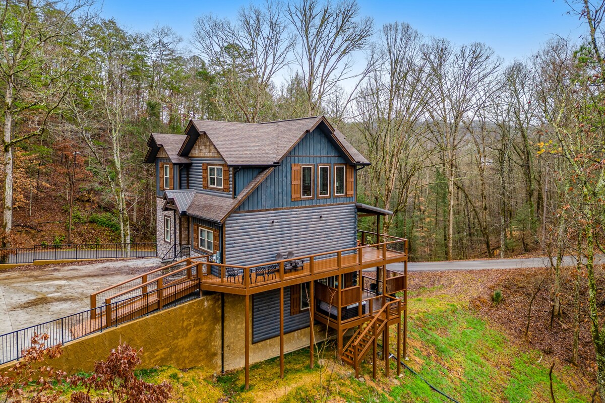 Hideaway Pointe Our calendar is updated in real-time & our nightly rates are accurately displayed. Simply enter your desired dates and click 'Book Now!' A hub of entertainment awaits at this polished, contemporary home in the woodlands of Sevierville. Enjoy a private indoor pool, an outdoor hot tub where you can relax in the cool evening air, a home theater, and a fantastic game room full of fun for all ages. This modern home sits in the countryside outside Sevierville and Pigeon Forge, about a 10-mile drive from all the action on the Parkway. It's a scenic spot that provides peace and quiet as well as easy driving access to Dollywood and Great Smoky Mountains National Park. A wealth of renowned attractions await in the surrounding area, but you need never leave the house to have a memorable getaway with your loved ones. Begin each morning with a dip in the pool and hot tub, and spend your afternoons reading, grilling, and dining outside on the shaded deck. Evenings are best spent roasting s'mores around the firepit, screening movies in the home theater, and gathering in the window-lined game room for foosball, pool, air hockey, Ping-Pong, shuffleboard, board games, and more than 3,000 games on two arcade consoles. The rest of the home wonderfully combines the ambience of country living with every contemporary comfort. Throughout the house, you'll find smart TVs, central air, and stylish details of stacked stone and cable railings. Enjoy a chic kitchen with stainless steel appliances, space to dine at both the large island and the adjacent table, and a light-filled living room with an electric fireplace. Of the five bedrooms, one is a primary suite with its own electric fireplace, a smart TV, and a private bathroom. With your reservation, enjoy one FREE Ticket to each of these attractions: Paula Dean's Lumberjack Dinner Show, Wonderworks, Smoky Mountain Observation Wheel, NASCAR Speedpark, Rocky Top Mountain Coaster and Skyland Ranch, Alcatraz East Crime Museum, Fox Fire Adventure Park, and County Tonight (a $305.00 Value) as well as Exclusive Discounted Tickets to Anakeesta, Hatfield & McCoy, Dolly's Stampede, Comedy Barn and more. *Attractions are subject to change. THINGS TO KNOW This property is managed by Vacasa Tennessee, LLC. If you are bringing a dog on your trip, the pet fee is already included in your quote when selecting ‘Yes’ to pets. If you would like to add more dogs, please contact us. Parking notes: There is free parking available for 6 vehicles. Please note: this home resides in a noise-sensitive area and the owners participate in our Good Neighbor protection program. Our smart home technology will alert our team if excessive decibel or occupancy levels are detected, allowing us to reach out directly with a reminder of maximum occupancy and quiet hours. This technology is privacy compliant, and only monitors the presence of decibels and devices-not any personal conversation or information. Thank you for supporting our efforts to be good neighbors! Damage waiver: The total cost of your reservation for this Property includes a nightly damage waiver fee, plus tax if applicable (the “Damage Waiver”). (A discount may be applied for stays of 28 nights or longer, if permitted.) The Damage Waiver covers you for up to $3,000 of accidental damage to the Property or its contents (such as furniture, fixtures, and appliances) as long as you report the incident to the host prior to checking out. The Damage Waiver fee eliminates the need for a traditional security deposit. More information can be downloaded from the \ on the checkout page. Due to local laws or HOA requirements, guests must be at least 25 years of age to book. Guests under 25 must be accompanied by a parent or legal guardian for the duration of the reservation. Our prices include all fees. No hidden fees.