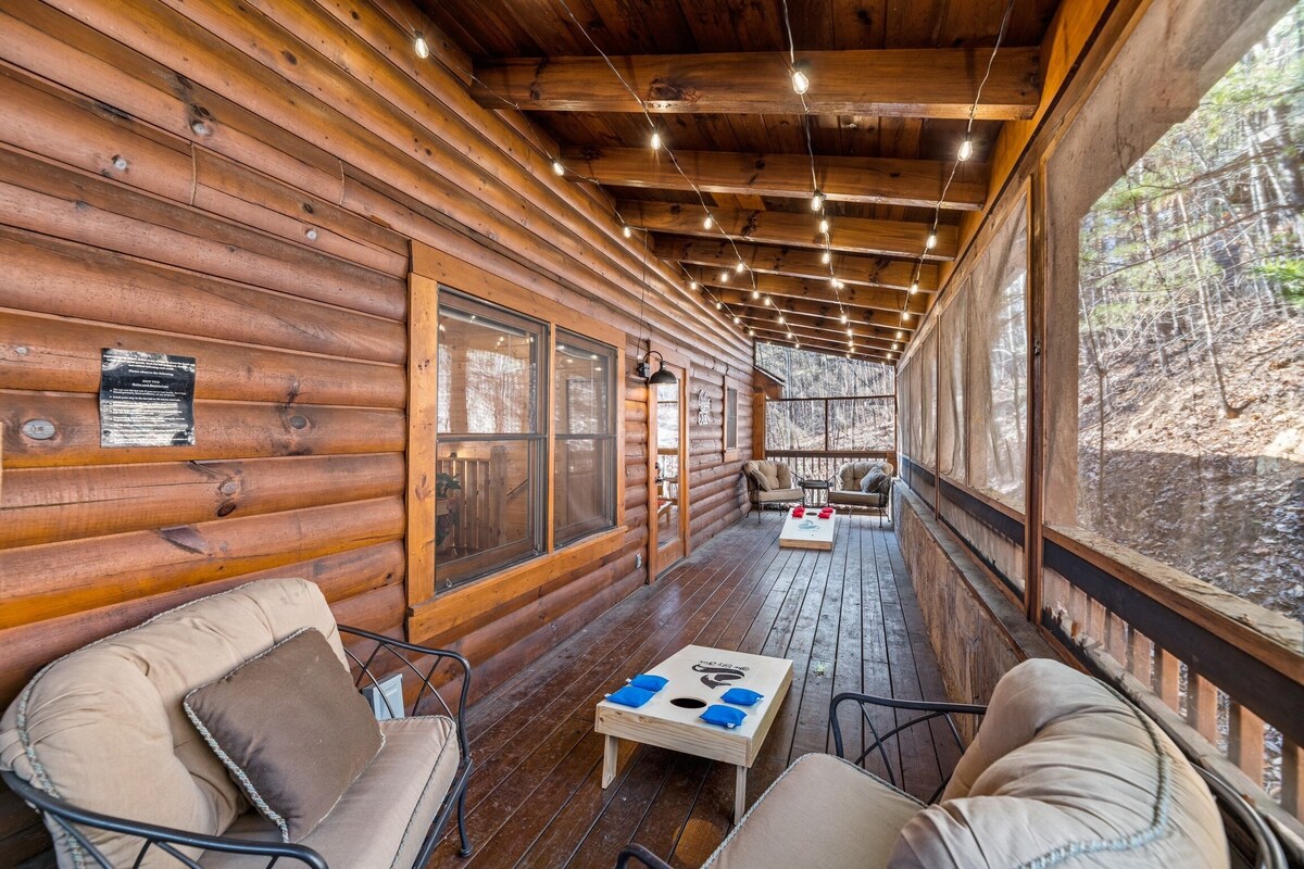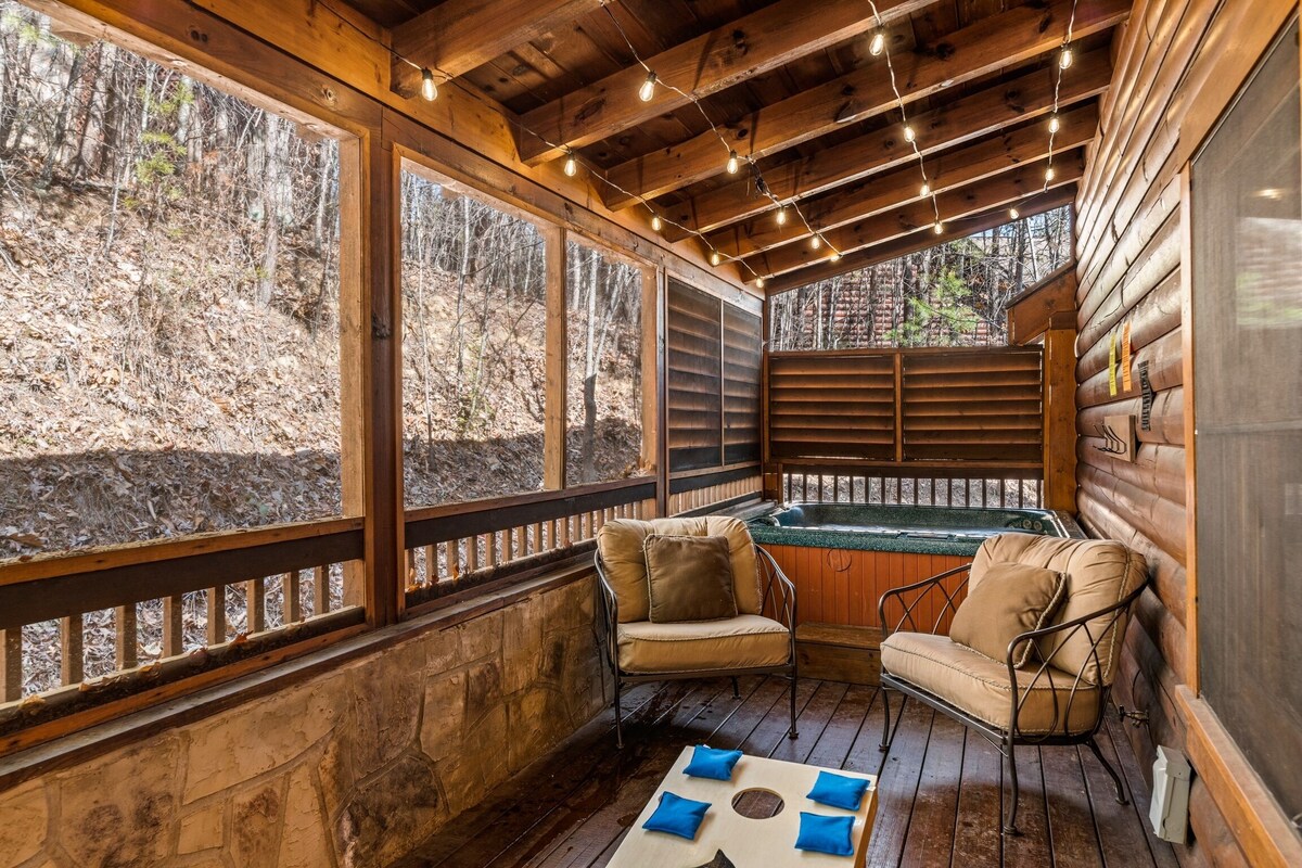 Book your fall and holiday trip now, the best time to experience The Smoky Mountains! Family fun begins at The Sly Fox, a mountain cabin nestled in the heart of Pigeon Forge 5-10 minutes from the main strip, The Island, Outlet Mall, and less than 5 miles from Dollywood! Located in Eagles Ridge Resort, this charming cabin is the perfect getaway for those looking to escape the hustle and bustle of everyday life and immerse themselves in the serene beauty of The Smoky Mountains while also being a launchpad for all the family fun activities Pigeon Forge has to offer. 10 miles away from Gatlinburg and The Smoky Mountain National Park, you can enjoy all this area of the country has to offer with hiking trails, waterfalls, zip lines, mountain coasters, and so many activities your family and friends will love. The Sly Fox boasts four bedrooms, each with a full bathroom attached, making it the perfect retreat for families or groups of friends. This cabin is over 2,000 square feet, and with two queen sleeper sofas, this cabin can accommodate up to 14 guests. The drive to The Sly Fox is easily navigated with all paved access and no steep treacherous roads. Entrance to the cabin is easy with ramp access and we offer self check-in, making move in a breeze. The driveway accommodates 3 vehicles. While parking is available at both the top and bottom sections, the lower portion of the driveway has a steeper incline that may be challenging for some guests to park on or walk up. For guests needing easier access, we recommend using the upper part of the driveway where it levels out more comfortably. The interior is fully furnished with a relaxing fox themed décor to ensure you have a comfortable stay. The kitchen is equipped with a coffee bar with Keurig and electric kettle for coffee, tea, or that cup of hot cocoa for the kids. The kitchen and dining area has everything you need to cook a full meal for your group, or fire up the gas grill on the front porch for some barbecue. If you don’t feel like cooking, no problem! The Sly Fox is just minutes from downtown Pigeon Forge and 20 minutes from Gatlinburg, both with countless restaurants to feed your hungry group. We know how important it is to bring your furry friends on vacation, which is why The Sly Fox is a dog-friendly cabin if you want to bring up to two dogs along for your stay. Your dog can relax in The Fox Hole, a space made just for dogs under the stairs where we provide a crate and dog bed for them to enjoy. We also provide waste bags on the front porch to use when your dog needs to go to the bathroom and pet covers for furniture. While other hosts often charge a steep pet fee, DOGS STAY FOR FREE at The Sly Fox because we believe your dog is a part of your family and deserves to tag along for the fun. Relax and unwind in the bubbling hot tub or curl up in a chair on the screened in back porch, perfect for sipping on your morning coffee or enjoying a glass of wine at sunset. Challenge your family and friends with a game of cornhole on the back porch. The game room loft is the perfect spot for friendly competition, with a pool table, air hockey table, or newly added arcade game system! For those looking for a quieter activity, pull out a game or puzzle to work on. In the evenings after a long day of outdoor activities, sit down and enjoy your favorite show or movie on the big screen TV with Hulu Live Plus. The large upstairs porch is easily accessed from the game room and provides a quiet place to enjoy being in the midst of the beautiful Smoky Mountains. Come and experience the magic of The Sly Fox in the stunning Smoky Mountains. The cabin is family owned and operated, so we strive to provide that personal touch to make your stay special. Book your stay with us now and create unforgettable memories that will last a lifetime. Looking for a longer stay? If you stay 7+ nights you get a 10% discount! Downstairs floor includes: Deluxe King Suite featuring large Jacuzzi tub, full bathroom, and TV Queen bedroom with private bathroom and TV Open floorplan featuring living room, updated kitchen with large dining table, coffee bar, and TV Queen Sleeper Sofa Laundry Room Closet Special Fox Hole “cave” with dog bed for the family pet Access to front porch with gas grill for your use Upstairs Floor Includes: Deluxe King Suite featuring large Jacuzzi Tub, full bathroom, and TV Double queen bedroom with private bathroom and TV Large common room featuring pool table, air hockey table, 65 inch TV for movie viewing Large supply of games and puzzles Access to large front porch with rocking chairs Large screened in porch with hot tub and seating area, corn hole Amenities Starter pack including hand soap, small shampoo,1 roll of paper towels, 2 rolls of toilet paper per bathroom, several pods for dishwasher, dish soap, coffee, 2 trash bags TV included in the living room, loft, and each bedroom Easy ramp access and low step in showers for guests Fully stocked kitchen including pots and pans, silverware, dishes, glassware Keurig coffee maker, drip coffee maker Washer and Dryer Dog bed and furniture protectors Linens for all beds including sleeper sofas Towels for all bathrooms Hairdryers Ironing board and Iron Fire Extinguisher Broom and Dustpan, Vacuum Hot Tub Pool Table Air Hockey Table Games, puzzles What you need to bring: Extra Shampoos and body wash Anything not listed or extras needed beyond provided starter pack Food and water Hulu plus live tv included, but please bring passwords for any other personal streaming platforms you wish to use Additional information: High-speed internet available with approximately 200mbps download speeds You must be 25 or older to book The Sly Fox cabin Minimum 2 night stay required Photo identification is required $300 deposit is required to cover any damages Check-in after 4:00 pm and check out is 10:00 am No Parties Are Permitted You will receive a unique pin code for access to the cabin through the front door electronic l