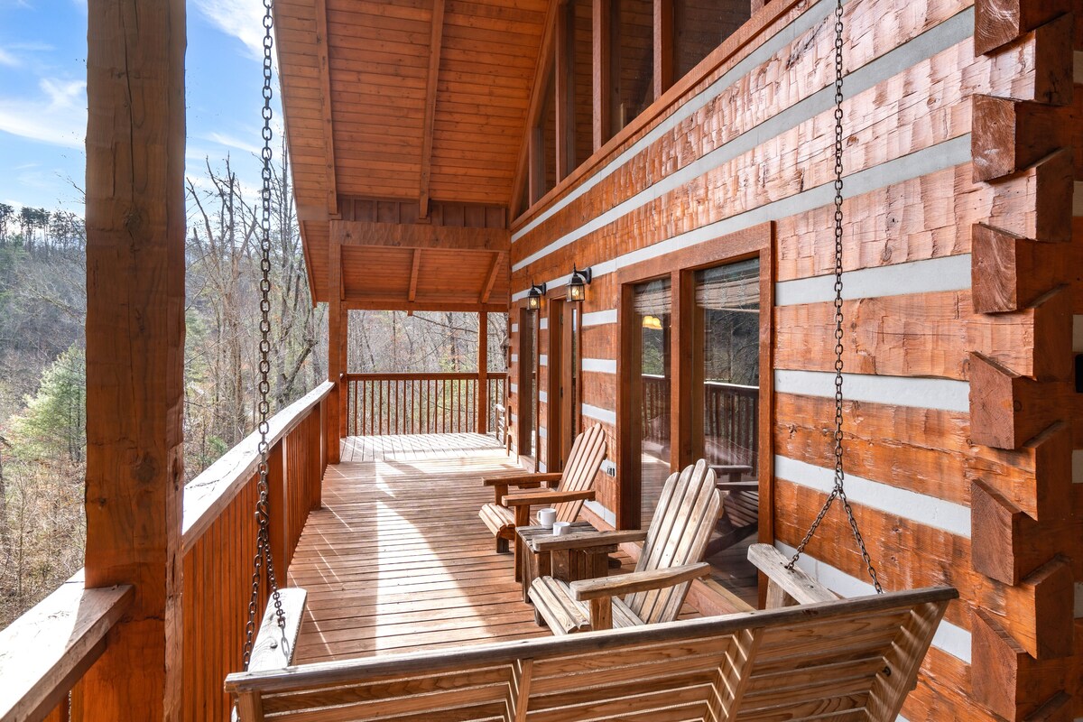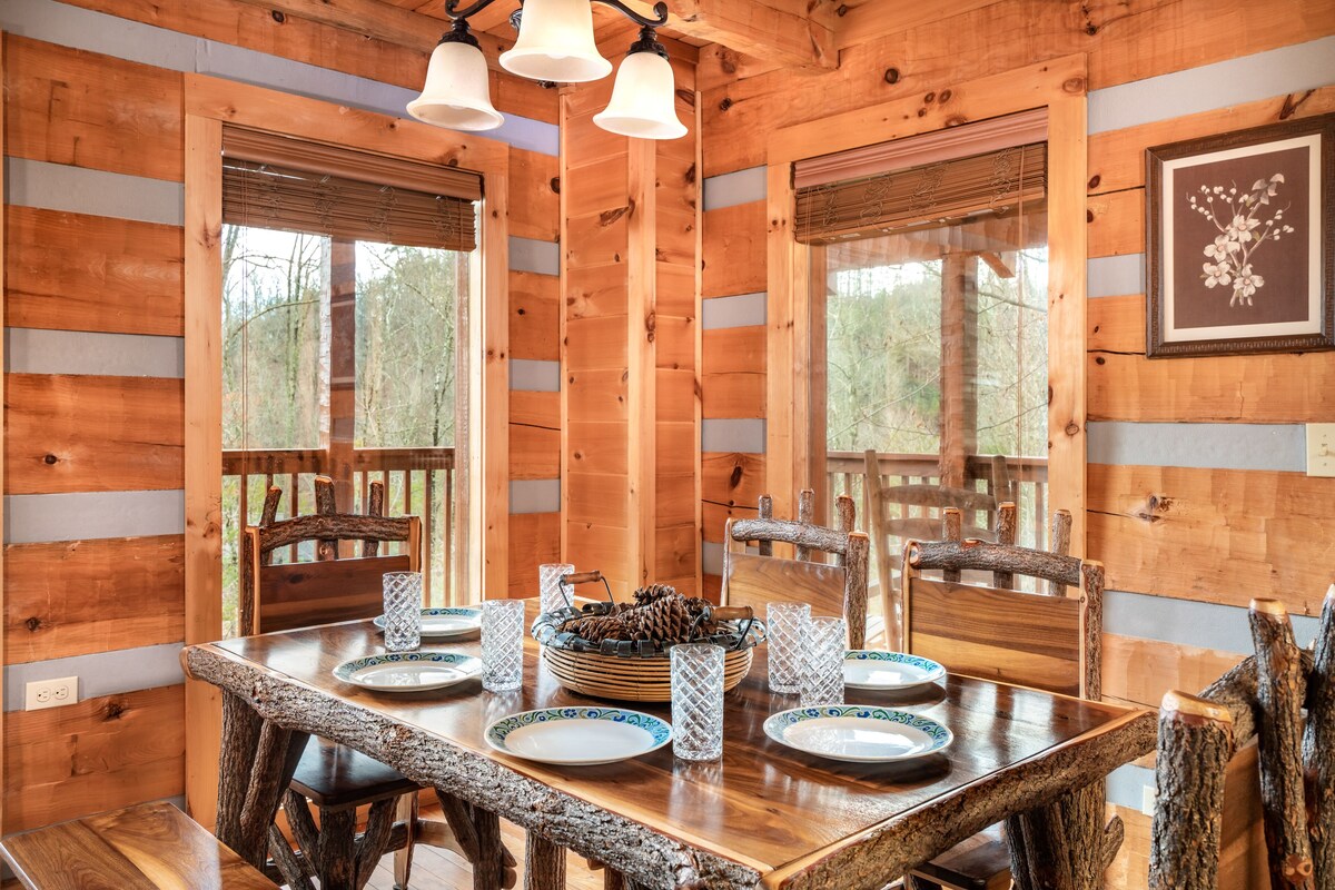 Welcome to Bear Valley! This cozy log cabin is only 5.4 miles from the Parkway through Pigeon Forge, yet is tucked away in privacy in scenic Bluff Mountain Acres. Bear Valley can accommodate up to six guests. This open concept cabin includes a wonderful gas fireplace, dining room with Amish-made dining table, and full kitchen. The living room has a very comfortable, high-end leather seating. The kids will enjoy an arcade game in the loft. There are bunk beds nearby, so they can stay up all night without bothering Mom & Dad! Bear Valley has a beautiful wrap-around porch perfect for sipping coffee in the morning, or relaxing in the hot tub after exploring the beautiful Smoky Mountains. The first bedroom is on the main floor along with a full bathroom. The second bedroom and bathroom are located in the spacious loft area. Our prices include all fees. No hidden fees.