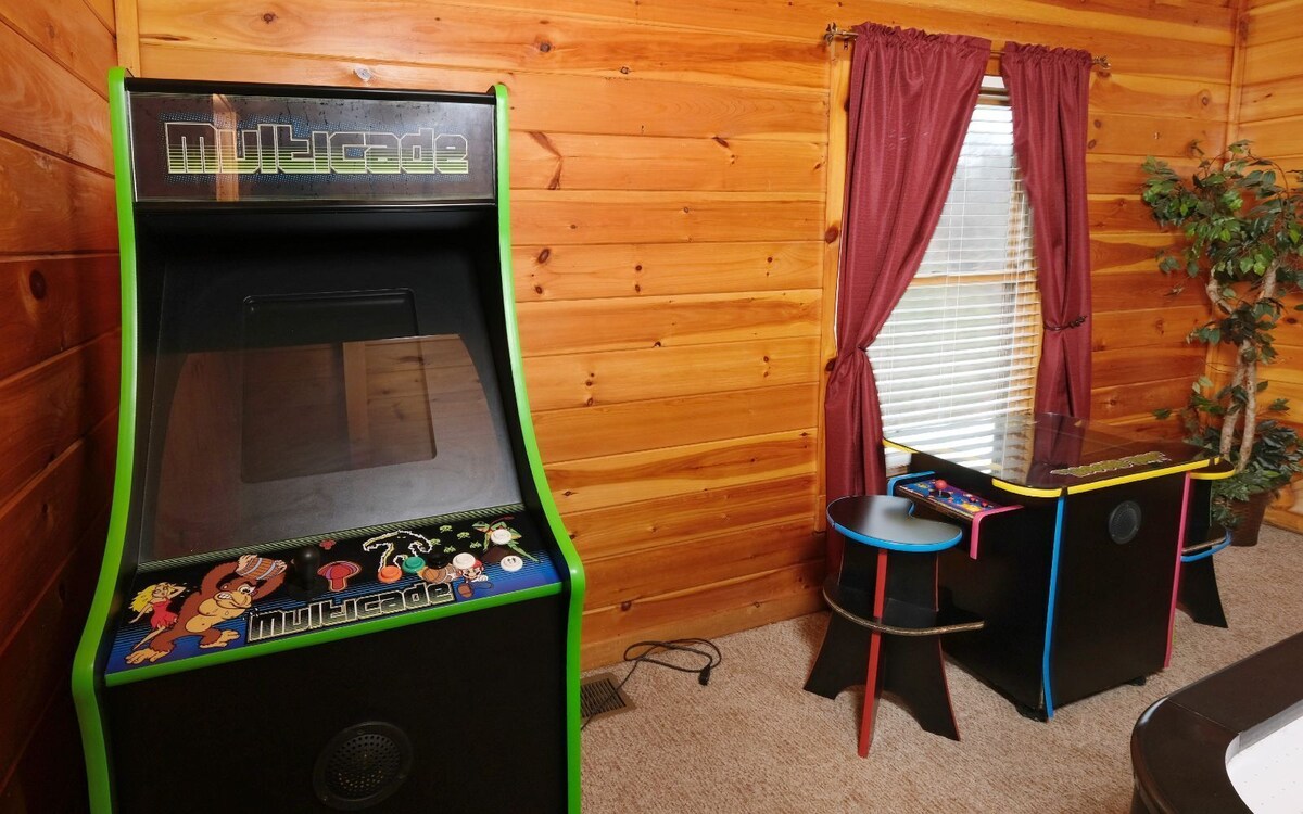 Stay Logged Inn to fun at this exciting 3-bedroom Pigeon Forge, Tennessee, cabin! Each bedroom has a queen-size bed, and there are 3.5 bathrooms for guests' convenience. After busy days riding roller coasters at Dollywood, shopping at The Island, or exploring the national park, come back to Logged Inn to unwind and play. Make breakfast in your fully equipped kitchen and enjoy coffee in the rocking chairs on the deck. For lunch, toss burgers or steaks on the park-style, charcoal grill before relaxing in front of the big screen TV or just surfing the web via the Wi-Fi. For playtime, have fun with the air hockey table, foosball table, and arcade games. Before bed, have a nice bath in the indoor jetted tub or get cozy by the gas fireplace. Additional amenities include a washer/dryer, a flat and paved driveway, seasonal mountain views, and community pool access in Alpine Mountain Village. Our prices include all fees. No hidden fees.