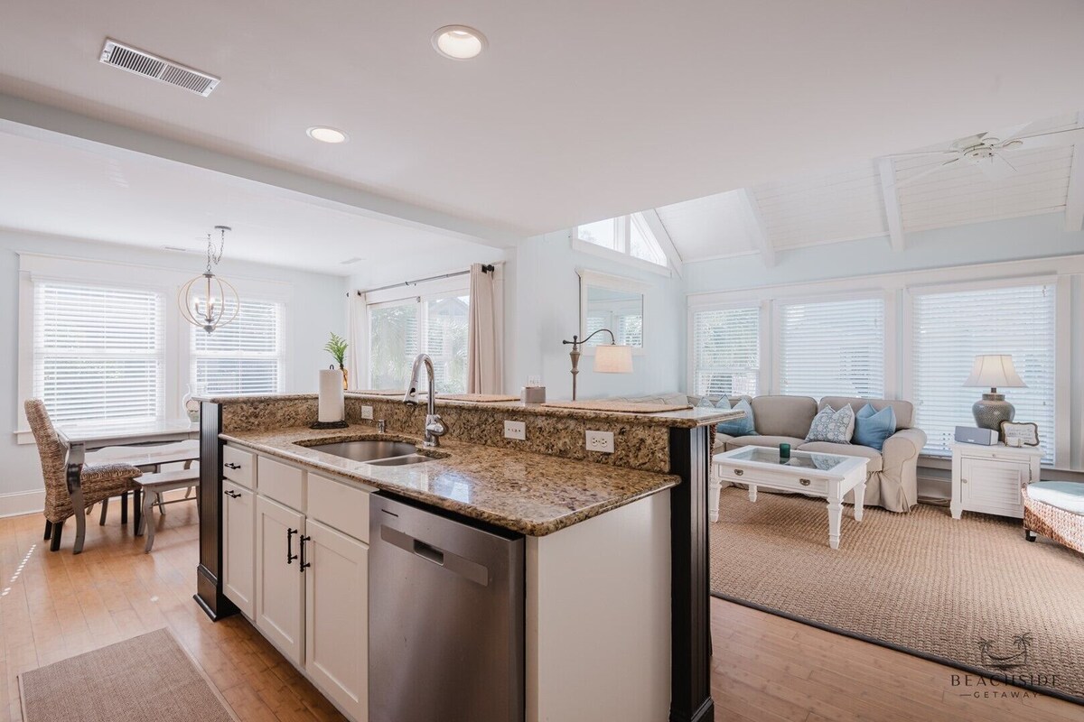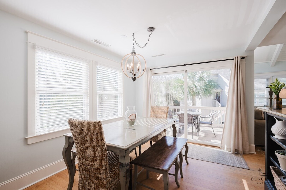 Myrtle Lane 15 is a beautiful South Forest Beach home, just minutes from the ocean! Stairs from the garage lead you to the sunny, open, recently redecorated main level of the home where you will find a fully-appointed kitchen with bar seating for four, table seating for six to eight, and a balcony with additional seating to overlook the pool. The in-law apartment is on the first floor of the home and has a separate entrance, accessible from the garage. This is a perfect set-up for grandparents or multiple families vacationing together, as it offers complete privacy! The apartment has a living room with a sofa, television, a small kitchen with an oven, microwave, sink, and refrigerator, and a cozy table to enjoy your morning coffee. A large bedroom holds a king-size bed. There is also a full bathroom in the apartment that has a tub/shower combo. The main level of the home also features a main bedroom with a king bed, a large bathroom complete with granite countertops and natural stone stand-up shower and jetted tub, and a spacious walk-in closet. A porch off the main bedroom offers another view of the pool. On the main level, you will also find a bedroom with twin beds, a full bathroom with a tub/shower combo, and a laundry room with a washer and dryer. Just up the stairs, enter another lovely room with vaulted ceilings, two queen beds, and an en-suite full bathroom with a tub/shower combo. Just outside the charming outdoor space is meticulously designed to offer both relaxation and entertainment. The pool area is equipped with a propane gas grill and a shaded oasis with tastefully furnished nooks, offers relief from the sun's embrace. In-Law Apartment Bedroom 1: 1 King (Private Bath) First Floor Bedroom 2: 1 King (Private Bath) Bedroom 3: 2 Twins (Private Bath) Second Floor Bedroom 4: 2 Queens (Private Bath) - Additional Features: ~ Pool size: 25x12 ~ Parking Spaces: 6 - Pets: Max 2 dogs with a fee ~ Pool and Spa Heat – Yes, inquire about fee ~ Neighborhood: South Forest Beach - Distances ~ Beach: 0.25 mi (1200 ft) ~ Coligny: 1.7 mi ~ Harbor Town: 4.6 mi ~ South Beach: 4.0 mi ~ Shelter Cove: 5.2 mi Our prices include all fees. No hidden fees.