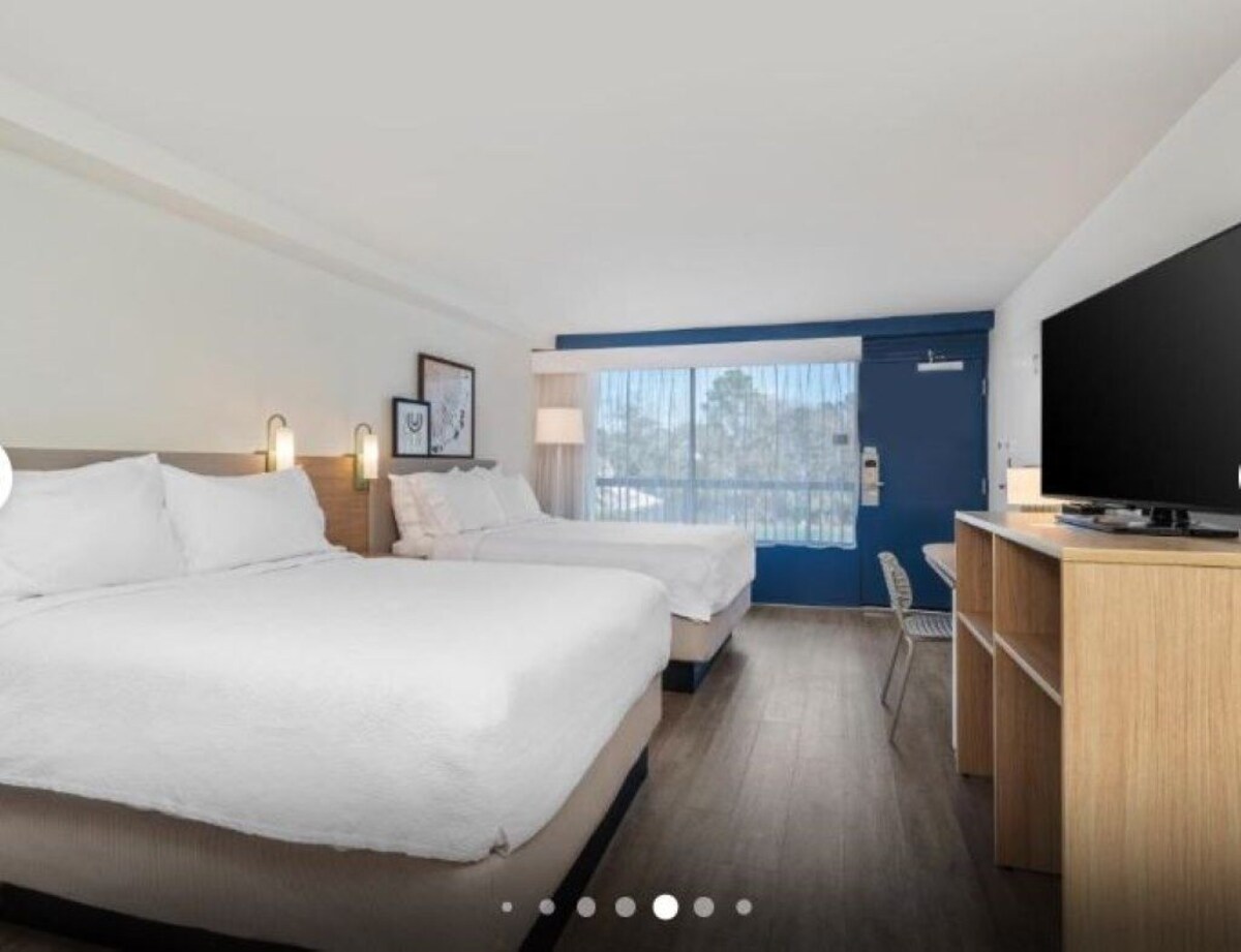 This listing is for a room within a hotel. ✦ Your room is 250 sq. ft, equipped with complimentary toiletries, high definition 50-inch TV. ✦ Daily cleaning services included in the nightly price. There are a few additional details to know before you book: ✦ The minimum age required for check-in is 21 years old. ✦ Please ensure you have a valid ID for check-in, as it is mandatory for entry. ——————————————— Guest Access: During your stay, you will have access to the property and amenities according to the following schedule: ✦ Check-in is available from 04:00 pm. ✦ Fitness center is available. ✦ Outdoor shared pool is available, opened from 8:00AM to 10:00PM. ✦ Paid parking lot – 1 space(s), available for $10 per day. ——————————————— Other Things to Note: There are several additional things to note: ✦ A credit/debit card is required at check-in for a $250 refundable deposit, returned after check-out if no damages occur. ✦ Pets are welcome with an additional charge of $75.00. Plus $75 cleaning fee. Dogs/cats, 45lbs max weight ✦ We use multi-unit listings, so rooms are similar but may have small differences. Our prices include all fees. No hidden fees.