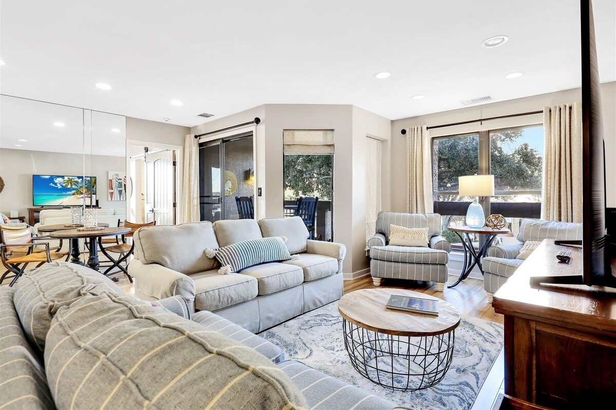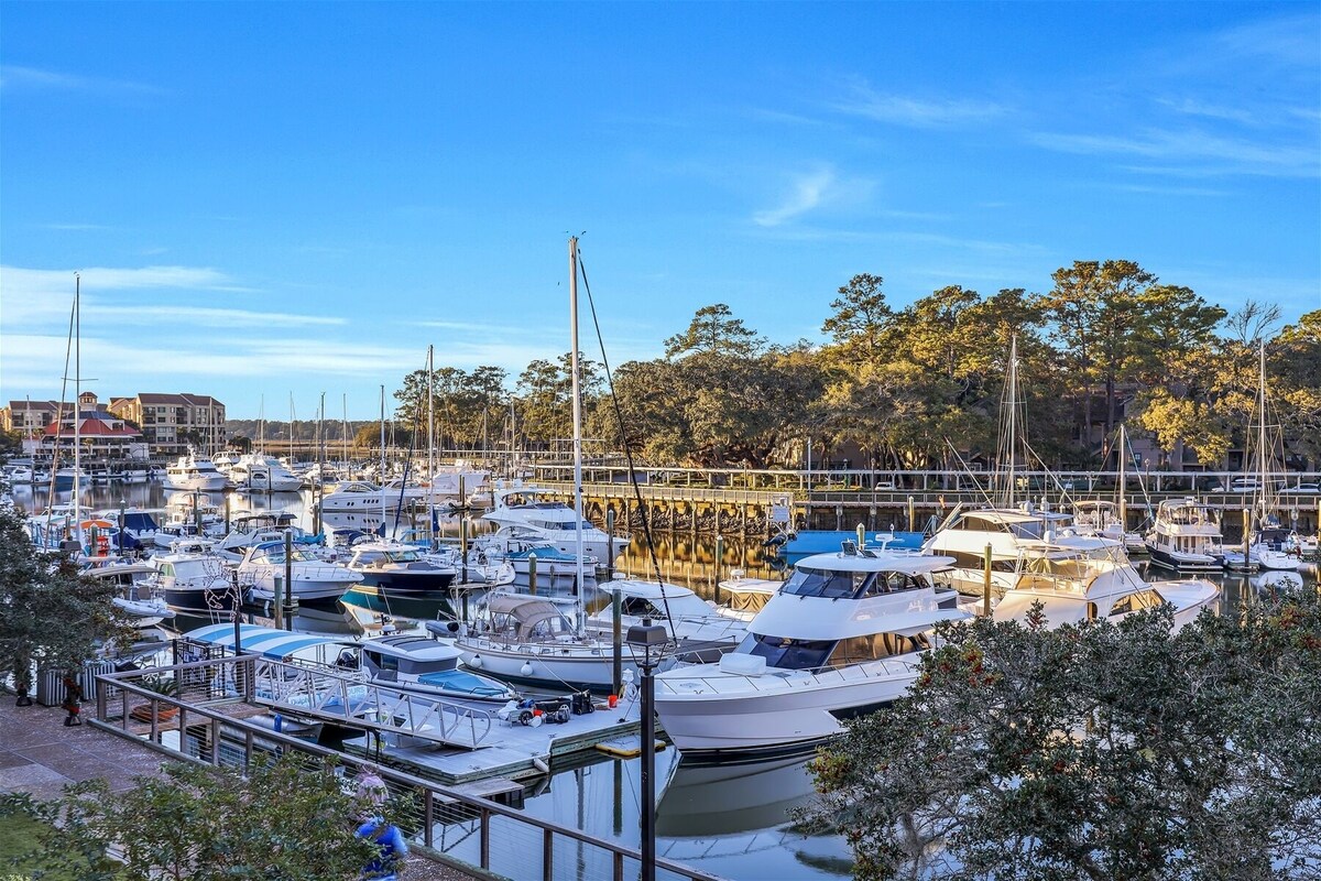 Looking for the perfect villa on Hilton Head Island? You just found it! New to our rental program, this one bedroom villa in Harborside II is sure to be one of the most sought-after vacation properties on the island! Seamlessly blending contemporary furnishings & luxury design with a bright, coastal vibe, you'll appreciate the attention-to-detail the owner has taken to ensure your comfort and enjoyment. With outstanding views of beautiful Shelter Cove Marina from TWO balconies, this spectaular villa offers an island experience unlike any other. Breathe in the fresh sea breezes, enjoy spectacular views from your balconies and get ready for a relaxing getaway by the beach! Upon entering the villa, you will be delighted with the contemporary, coastal decor. Two comfortable sofas for lounging provide plenty of space for a couple or small family to enjoy the island. Unique coastal touches are everywhere in this villa, all with comfort and enjoyment in mind. The cozy bedroom with a King bed is tucked away for peaceful relaxation and privacy, but with fabulous marina views and it's own private deck! The ensuite bath has a walk-in shower and is beautiufully tiled for a contemporary, clean look. Washer and dryer are conveniently located in the villa. The kitchen is stocked with everything needed for a quick lunch between beach outings or a seafood feast prepared with local fare. Dine inside or out, with lots of extra seating . . Why not end the day with a quiet cockail on the balcony, watching the boats cruise in and out of the harbor? Although the interior of this villa is remarkable, most of your time will probably be spent on the deck. Stunning views, beautiful sunrises and ocean breezes will fill your days with memories of an island experience you will never forget! Evenings are special in the harbor, no matter what your plans entail. Harborside II is a small 5 story complex located mid island in Shelter Cove. Once inside the private parking area, you may never have to get in your car again! Just a few steps away are dozens of outstanding restaurants, shops, and attractions, something for everyone to do when not lounging at the pool or beach. Enjoy watersports of every kind, from kayaking to paddle boards to guided tours or even rent your own boat if you are adventurous. Seasonal complimentary shuttle service to the beach and other neighboring attractions is available (March-September). Harborsides community pool is loctated behind Harborside I, just next door. Community grill is available inside the pool area. Did we mention fireworks? Now in its 30th year, Shelter Cove is known for its weekly family friendly festival, Harborfest. Every Tuesday night during summer months (weather permitting), generations of families have enjoyed music, crafts, vendors and our special fireworks extravaganza to conclude the evening. Harborfest is much anticipated island tradition, you can enjoy right from the comfort of your villa! *1 car pass is included with your reservation* Our prices include all fees. No hidden fees.