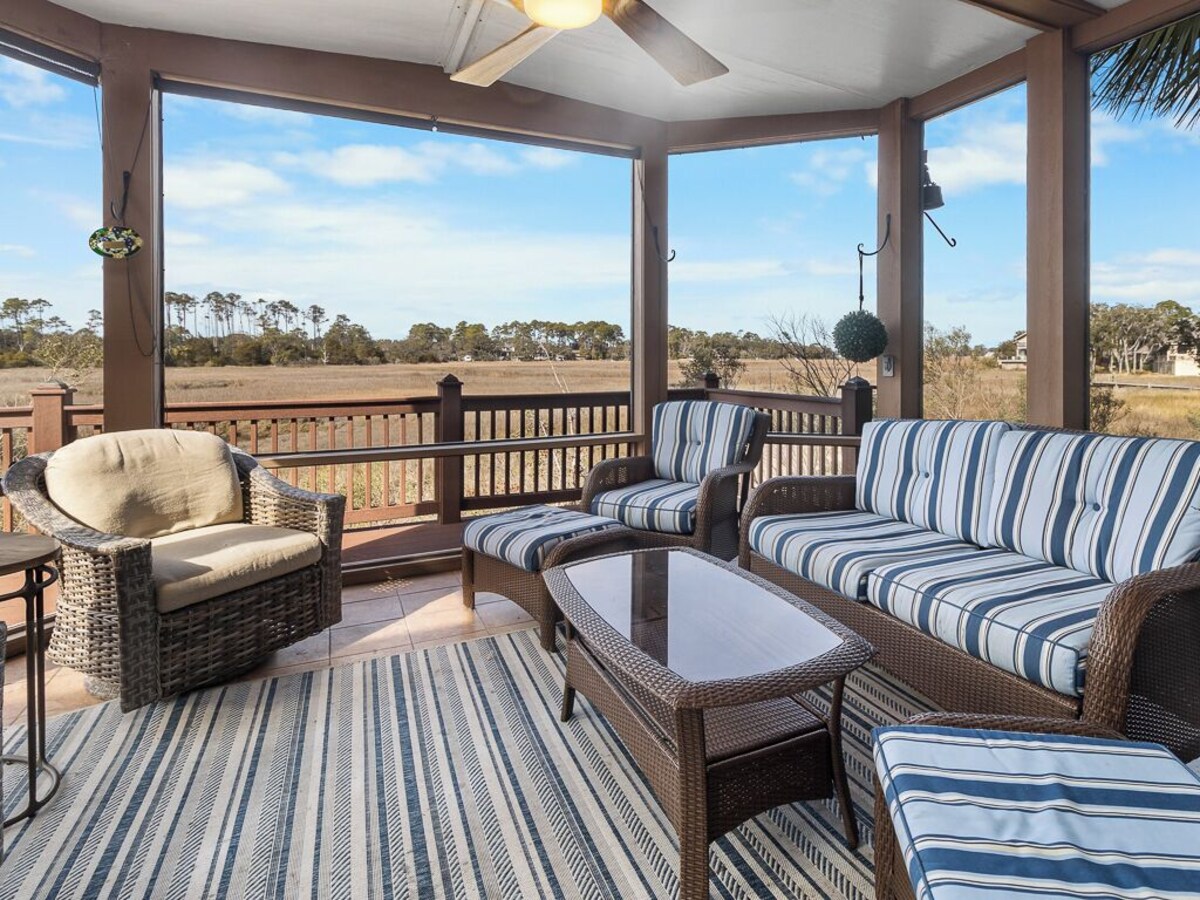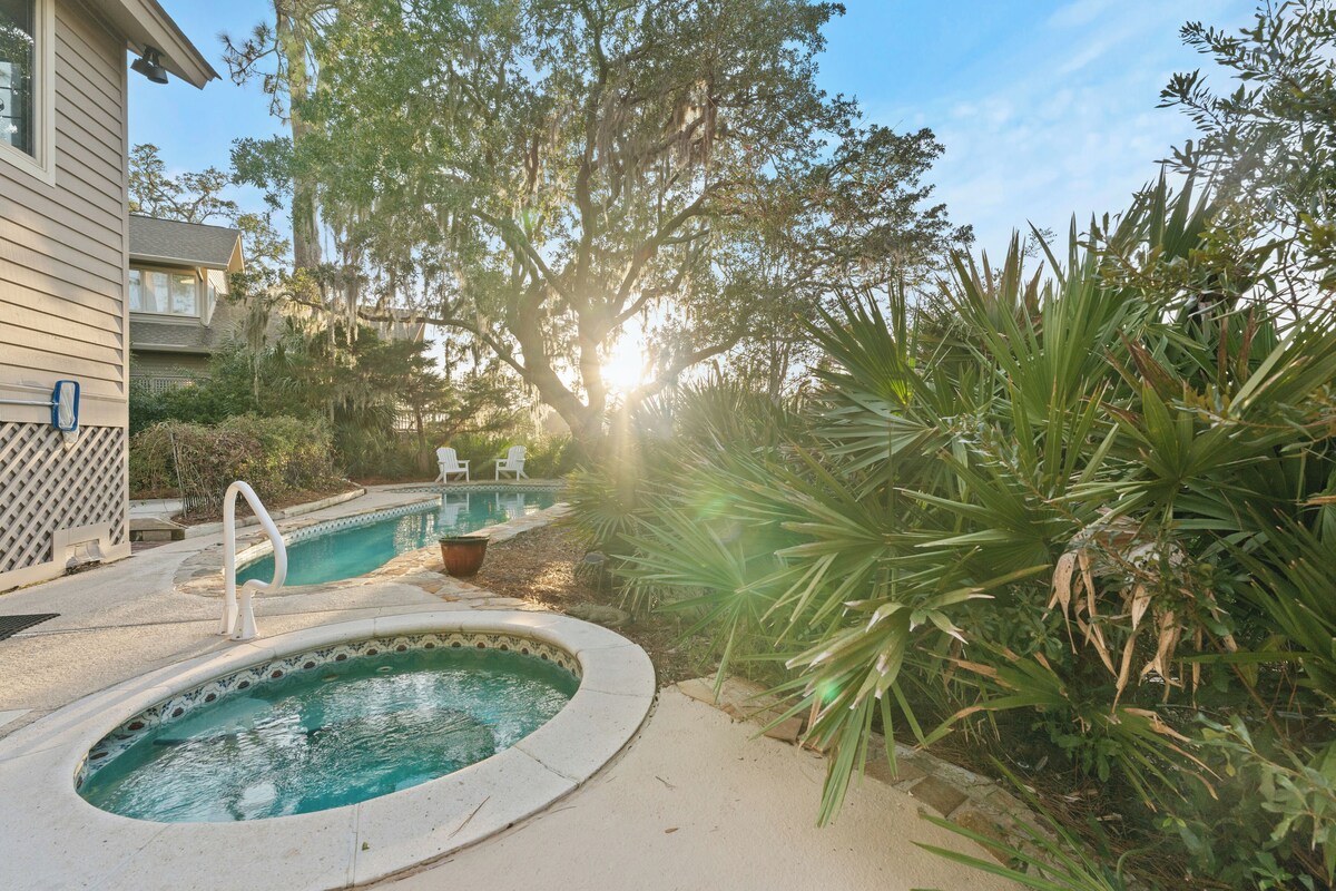 Welcome to Tidal Tranquility Where breathtaking marsh views meet the elegance of lowcountry living. From serene sunsets to modern amenities, this is more than just a vacation—it's a memory waiting to be made. Nestled in the heart of Sea Pines, Tidal Tranquility is a luxurious 6-bedroom, 5.5-bathroom retreat where modern elegance meets lowcountry charm. Overlooking the marsh with breathtaking sunsets, this stunning home is designed for relaxation, entertainment, and unforgettable memories—whether you're savoring a meal on the deck, enjoying a swim in the heated pool, or gathering with loved ones in the screened-in porch to watch the sun set over the lowcountry landscape. Plus, we now welcome well-behaved dogs, so your furry family members can join in on the adventure! Why Tidal Tranquility? • Private Pool & Spa: Enjoy your own propane-heated pool and spa, nestled among lush tropical foliage with serene marsh views. • Pet-Friendly Retreat: Now welcoming well-behaved dogs! A pet fee applies, and we provide pet-friendly touches to ensure a comfortable stay for your four-legged friends. • Spacious & Versatile: With 6 bedrooms and multiple living areas, this home comfortably sleeps up to 14 guests, making it ideal for family reunions, group getaways, or retreats. Its spacious design ensures plenty of room for everyone to gather, relax, and create lasting memories. • Outdoor Living: Multiple decks and patios offer picturesque spots to unwind, including a top-floor private deck, poolside seating, and a screened-in porch for enjoying the sights and sounds of the marsh. • Chef's Kitchen: Fully equipped with premium appliances, a gas stove, and two dishwashers, the kitchen is perfect for preparing meals to share in the formal dining area or casual kitchen table seating. • Exclusive Sea Pines Location: Situated on Hearthwood Drive, just 2 miles from the Sea Pines Beach Club, Tidal Tranquility offers easy access to bike trails, pristine beaches, and vibrant local attractions. Bedroom Configurations: 6 Bedrooms, 5.5 Bathrooms: Sleeps up to 14 guests comfortably. • Primary Suite (Main Level): King bed, private bath, decorative fireplace, desk area, flat-screen TV, and marsh views. • Primary Suite #2 (Upstairs): King bed, spa-like bath with soaking tub and large shower, private deck with marsh views. • King Bedroom (Upstairs): King bed, private bath, flat-screen TV, marsh views. • Twin Room (Upstairs): Two twin beds (convertible to a king), flat-screen TV, marsh views. • Queen Room (Upstairs): Two queen beds, attached bath, walk-in closet, flat-screen TV. • Den (Main Level): Queen sleeper sofa, flat-screen TV. Living Areas: • Main Living Room: Large sectional couch, flat-screen TV, open to kitchen, marsh views. • Den: Adjacent to the front entrance, leather sofas (with queen sleeper), flat-screen TV. • Screened in Porch: Off main living room with ample seating and marsh views. Dining Areas: • Formal dining table for 6. • Kitchen bar seating for 3. • Kitchen table seating for 6. Amenities & Features: • Comfortable Spaces: Two living areas, large sectional seating, and a screened-in porch with marsh views. • Entertainment Ready: Smart TVs throughout the home and Wi-Fi for seamless streaming. • Guest Amenities: Full-size Dove body wash, shampoo, conditioner, beach towels, a soft-sided cooler, and a complimentary beach umbrella. • Outdoor Dining: A deck with a grill and outdoor dining table for six. • Convenient Proximity: Just 2 miles from the Sea Pines Beach Club, with easy access to bike trails and the Sea Pines Trolley. Bonus Beachside HHI Amenities: At Beachside HHI, we take pride in offering thoughtful touches and conveniences to elevate your stay. At Tidal Tranquility, you'll enjoy: • Guest Support: Linda and Jay, your dedicated local hosts, available for personalized assistance. • Complimentary Essentials: Dishwasher pods, laundry pods, trash bags, kitchen spices, and starter cleaning supplies. • Luxury Bath Products: Full-size Dove body wash, shampoo, and conditioner in each bathroom, along with hair dryers. • Beach Convenience: Turkish beach towels, a soft-sided beach cooler, and a complimentary beach umbrella for your outings. • Coffee Perks: Both Keurig and drip coffee machines, with complimentary K-Cups, creamer, and sweeteners. • Additional Rentals: Bikes, extra beach gear, and baby gear available upon request. Why Guests Love Tidal Tranquility: • One of the few 6-bedroom, pet-firendly homes in Sea Pines, offering ample space for families and groups. • Stunning marsh views and lush tropical landscaping create a serene and private retreat. • The perfect blend of lowcountry charm and modern luxury, with thoughtful touches designed to delight every guest. Sea Pines Neighborhood Info: Sea Pines is a gated, private community spanning 5,000 acres on Hilton Head Island, offering unparalleled privacy and luxury. Explore 15 miles of scenic bike trails, the pristine forest preserve, championship golf courses, and vibrant marinas, making Sea Pines the perfect blend of relaxation and adventure. Whether you're biking scenic paths or enjoying live music at Harbour Town, Sea Pines has something for everyone. Biking is a popular way to explore Hilton Head, offering a scenic and convenient way to immerse yourself in the island's natural beauty. Beachside HHI can deliver rental bikes directly to Tidal Tranquility, making it easy to embark on adventures along the 15 miles of private bike trails in Sea Pines. During peak season, the free Sea Pines Trolley offers convenient transportation throughout the community. Important Information: • Gate Passes: One complimentary pass included; additional passes available for purchase ($19 per week, per car) Parking is available for up to 6 cars (2 in the garage, 4 in the driveway) • Pool & Spa Heating: Available for an additional fee. Please inquire for pricing for a specific stay, the cost varies depen