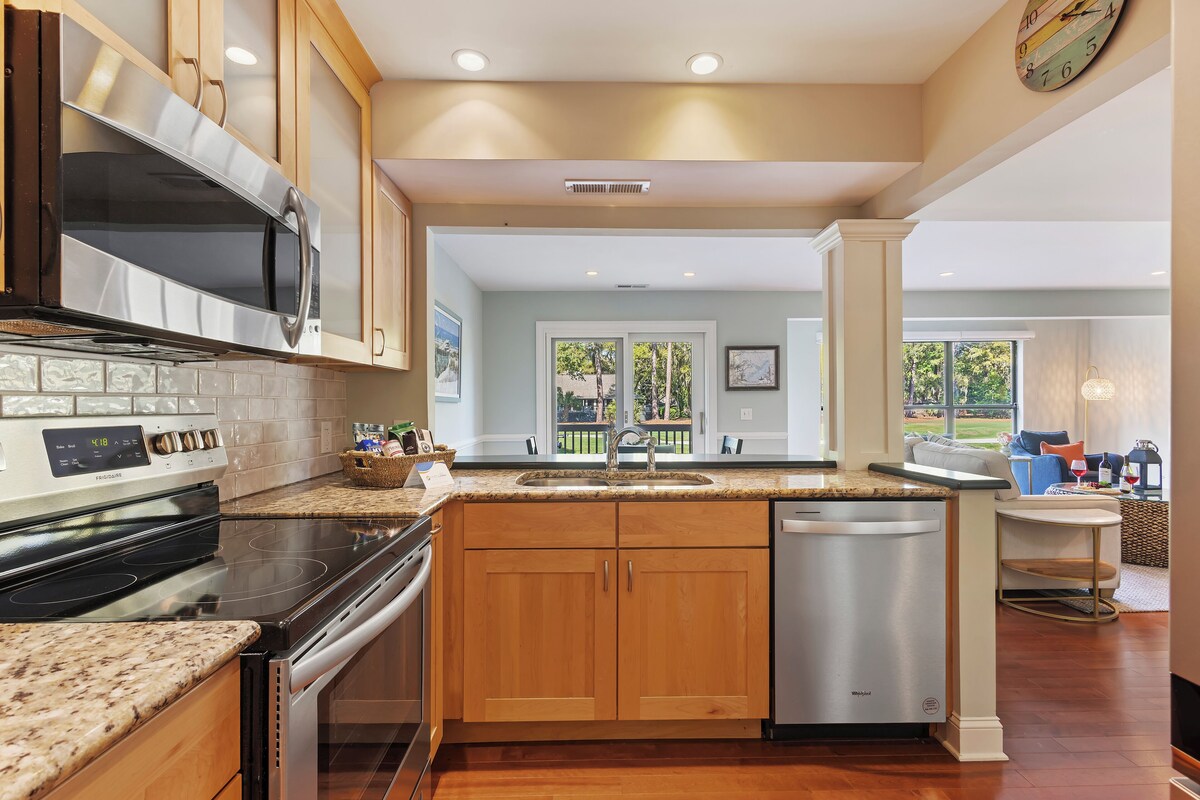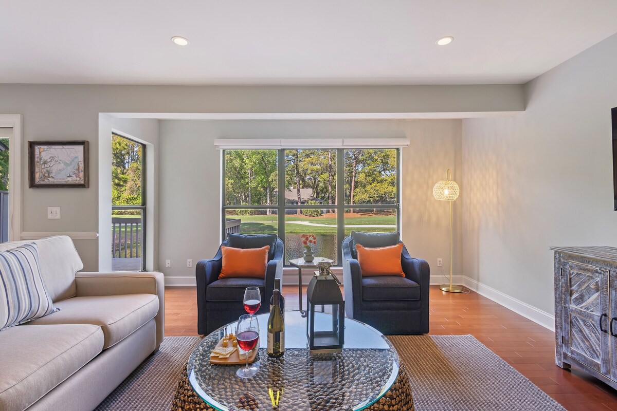 Escape to 2428 Inland Harbour by Host & Home, a freshly renovated pet-friendly villa in Sea Pines. Enjoy mornings with coffee on the oversized deck, overlooking serene lagoon and Heron Point Golf Course views, and unwind in the evening tranquility. With 2 King Suites, a redesigned kitchen, updated bathrooms, and dedicated work desk, this villa combines style and comfort. Walk to Harbour Town, play golf or tennis, relax at the community pool and explore renown Sea Pines beaches. Learn more below! ☆☆ HIGHLIGHTS ☆☆ ✹ Pet-Friendly - Bring your furry dog! 1 dog 60lb or less, or 2 dogs where their combined weight does not exceed 100lbs is allowed. There is an additional non-refundable pet fee of $300 for up to 2 dogs. ✹ Breathtaking Lagoon & Golf Views – Unwind on the expanded deck with stunning vistas of Heron Point Golf Course. ✹ Spacious 2-Bedroom Villa – Features two luxurious king en-suites and a sleeper sofa, comfortably accommodating up to 6 guests across 1,430 sqft. ✹ Elegant Upgraded Interiors – Showcasing fresh designer furnishings, renovated bathrooms and a dedicated workspace for added convenience. ✹ Fully Equipped Gourmet Kitchen – Outfitted with granite countertops, stainless steel appliances, and everything you need to prepare and serve delicious meals. ✹ Prime Location – Just a short walk to Harbour Town or a quick drive to Sea Pines Beach Club, offering unbeatable accessibility. ✹ Exclusive Sea Pines Amenities – Enjoy access to a community pool, golf, tennis courts, Lawton Stables, the Sea Pines Nature Preserve, miles of scenic trails, and pristine sandy beaches. Eager to Read More? Here Are A Few Kind Words From Our Previous Guests: - “Our family had a great stay at one of the Host & Home homes. We loved the welcome basket upon our arrival. The kitchen is stocked with everything needed. We highly recommend it and hope to come back for another visit soon!” – Tanner - “We had amazing communication from Host & Home. They were great to deal with & answered our questions very promptly. Everything was organized & very well organized. I would highly recommend them.” –Karen - “Really enjoyed our stay!! Condo is clean and well decorated. Love the beach towels available. Love how helpful and friendly Host and Home was from booking to the end. Would book here and with Host and Home again for sure!” –Stephanie A Tranquil Sea Pines Retreat Nestled in the heart of prestigious community of Sea Pines, this meticulously maintained villa offers a spacious and serene escape. With its prime location, 2428 Inland Harbour is perfect for relaxing with loved ones and making lasting memories on Hilton Head Island. Enjoy an open living space with a sleeper sofa, a fully equipped kitchen, and a stunning deck offering unmatched lagoon and golf views. Whether you're working remotely at the desk nook or exploring the local amenities, relaxation meets functionality here. ☆☆ LIVING AREA ☆☆ ✓ Comfortable seating with a modern, inviting design ✓ Smart TV for your entertainment needs ✓ Sliding doors that lead to the expansive deck with tranquil views ☆☆ KITCHEN & DINING ☆☆ ✓ Granite countertops and new stainless-steel appliances ✓ Plenty of cookware for crafting the perfect meals ✓ Dining table with seating for 6 ✓ Wet bar for evening cocktails ☆☆ BEDROOMS & BATHROOMS ☆☆ Bedroom 1 – Master King Suite ✓ Luxurious King-size bed ✓ Ensuite with double vanity and walk-in shower ✓ Custom closet for convenient storage ✓ Peaceful ambiance with lush lagoon and golf views Bedroom 2 – King Suite ✓ King-size bed ✓ Ensuite with tub/shower combo ✓ Peaceful ambiance with lush lagoon and golf views Additional Sleeping Space ✓ Living room sleeper sofa for extra flexibility ☆☆ EXCLUSIVE SEA PINES AMENITIES ☆☆ Enjoy easy beach access just 1.2 miles away, along with the Sea Pines Beach Club and its renowned dining options. Take advantage of three world-class golf courses, the Sea Pines Racquet Club, Lawton Stables, or embark on a sea adventure at historic Harbour Town. Sea Pine Amenities (additional fees might apply): ✓ World renowned golf courses including Harbour Town Golf Links and Atlantic Dunes by David Love III ✓ Sea Pines Racquet Club ✓ Lawton Stables ✓ Sea Pines Forest Preserve ✓ Endless shaded bike and walking paths throughout resort and beyond ✓ 12 miles of sandy white beach ✓ Beach Access can be found at the Sea Pines Beach Club: Located at 87 N. Sea Pines Drive, this is Sea Pines Resort's organized beach access for the community. Parking at the Sea Pines Beach Club is reserved exclusively for Sea Pines property owners during the season (April through Labor Day) between 8am and 3pm. During the season you would catch the complimentary Sea Pines Trolley service to the Beach Club. Otherwise, renters can park there after 3:00pm. Off Season renters can park at the club without limits. The beach Club features three restaurants including Coast, Oceanfront Dining and restrooms. ☆☆ NEARBY ATTRACTIONS☆☆ Nearby, you'll find a wealth of attractions to explore, from the beach just stone's throw away to charming shops and world-class dining establishments. Here are some of the best activities and attractions. FAMILY-FRIENDLY ATTRACTIONS: Explore engaging and premium attractions perfect for all ages nearby. ✔ The Sandbox Children's Museum (3.6 miles) ✔ Pirate's Island Adventure Golf (5.1 miles) ✔ Coastal Discovery Museum (8.0 miles) DINING AND SHOPPING: Discover a variety of upscale dining and shopping options to enjoy during your stay. ✔ Harbour Town (2.4 miles) ✔ Coligny Plaza Shopping Center (3.8 miles) ✔ Shelter Cove Towne Centre (5.9 miles) ☆ SNOWBIRDS WELCOME ☆ Looking for a winter getaway? We offer a warm welcome to Snowbirds from October through February, providing a cozy retreat during the cooler months. Please reach out to inquire about a special discounted price for 30+