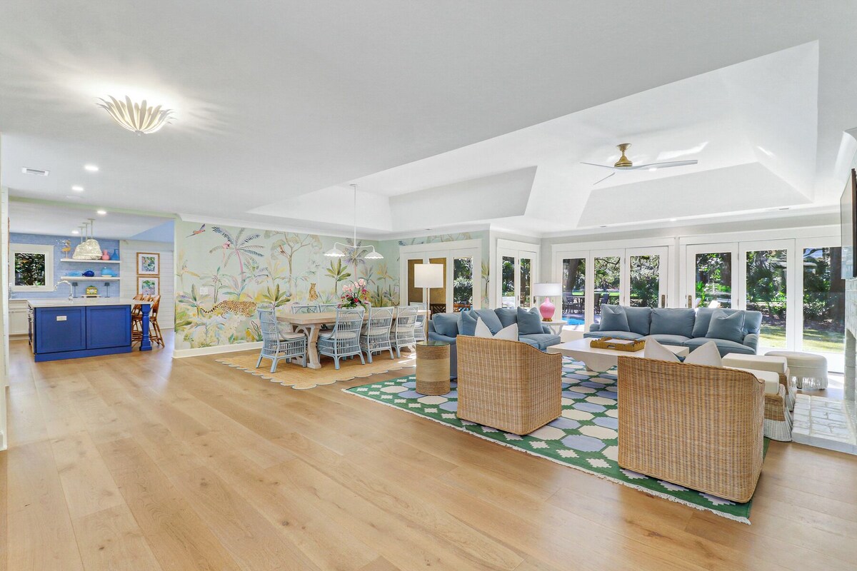 Welcome to 54 Harleston Green! This gorgeous home has three bedrooms, two and a half bathrooms + can sleep up to six guests. Located on the 4th tee/fairway of the Harbourtown Golf Links, it is a great spot to be for the annual RBC Heritage Golf Tournament! This bright and fun home has been recently renovated and is the perfect spot for your next Hilton Head Island vacation. A nice perk of this home is that it is dog friendly allowing one dog maximum per reservation weighing 20 pounds or less. The pet fee is an additional $250 plus tax – please reach out to our office in advance to confirm and provide details about your small dog. *BEDDING CONFIGURATION* • Bedroom 1: King (Master, 1st Floor, 50” Flat Screen TV, Private Bathroom) • Bedroom 2: King (1st Floor, 50” Flat Screen TV, Shared Jack/Jill Bathroom) • Bedroom 3: King (1st Floor, 50” Flat Screen TV, Shared Jack/Jill Bathroom) *ADDITIONAL INFO* • Distance to Beach: This closest beach path is located approximately 1 mile from the home (off of South Sea Pines Drive) - an easy bike ride. There is also beach access available at the Sea Pines Beach Club - which is two miles away from the home. If you bike to the Beach Club - there are bike racks available. There is a complimentary beach shuttle from the Harbourtown area which operates seasonally only. No parking is available at the Beach Club unless you are staying typically after Labor Day through mid-March or it is after 5pm. • Pool Info: 54 Harleston Green features a nice sized private pool - approximately 32' x 15'. The pool is not able to be heated. • Dog Friendly: This property allows one dog total per reservation & it must weigh 20 pounds or less. The pet fee is an additional $250 plus tax – please reach out to our office in advance to confirm and provide details about your small dog + pay the additional pet fee. • Fully Equipped Kitchen with All Major Appliances Including Two Refrigerators + Regular Drip Coffee Maker, Keurig, Crockpot • Two Living Rooms with Flat Screen TVs • 8 Beach Towels Available • Gas Grill, Washer/Dryer, Wireless Internet • Bright & Airy Small Office with a Desk • Outdoor Covered Patio with Seating • 2,820 Square Feet • Paying guest reservations staying between 4-27 nights will receive a $250 VayK Life beach/bike gear credit. This will be emailed to you after making a reservation and is valid for VayK Life rentals only. • Parking: There is parking available for up to three cars max in the driveway. Parking passes are an additional $17/pass plus tax. Welcome to Hilton Head Island's most celebrated resort! With its iconic lighthouse, 2 world-class marinas, 5,000 oceanfront acres and seemingly endless walking and biking paths, Sea Pines (located on the southern tip of the island) has been the island's most recognized resort for more than 50 years. The array of activities available to guests is virtually limitless; from its three premier gold courses (including Harbour Town Links, a perennial stop for the PGA Tour) to tennis at the Sea Pines Racquet Club (ranked #1 for tennis programs by TENNIS Magazine) to incredible dining, shopping and outdoor adventures. For many, Sea Pines is more than a resort - it's the essence of Hilton Head Island and the best of the Lowcountry. Our prices include all fees. No hidden fees.