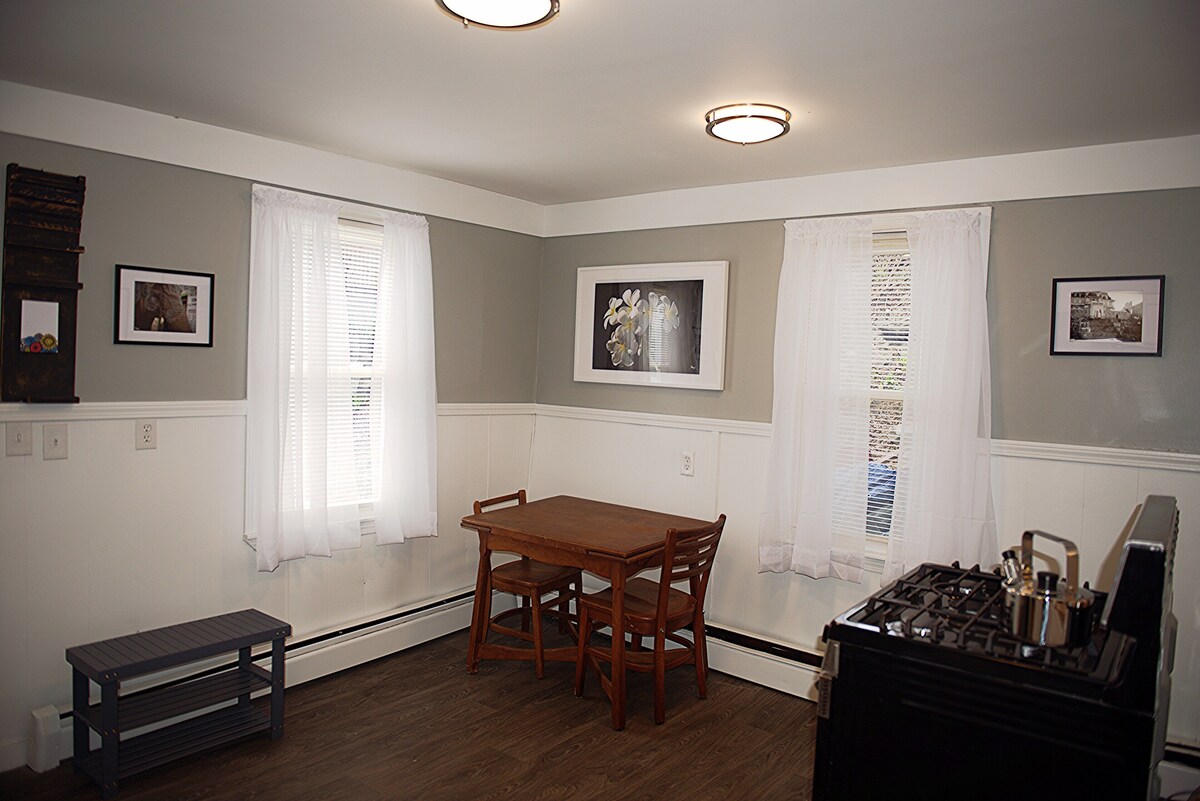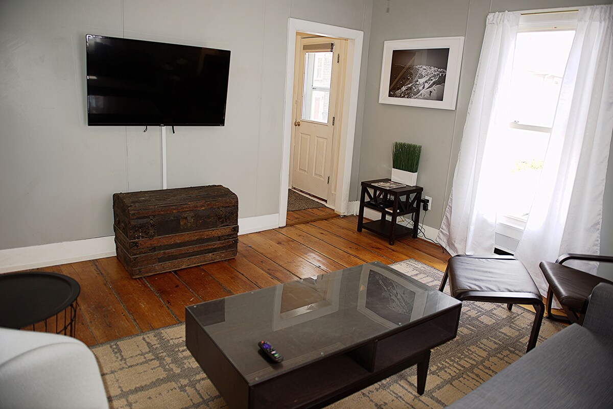 Renovated building with old school charm (100 year old pumpkin pine floors) and updated amenities. Features include: rare off street parking, Luxurious new bedding, ACs throughout, High speed internet and mounted flat screen TVs with premium cable and Netflix/Google TV. Unwind in 1300 square feet of two floor living, and relax with no one above or below you. Small private yard with own private entrance. Dogs are welcome for a small fee! Our prices include all fees. No hidden fees.