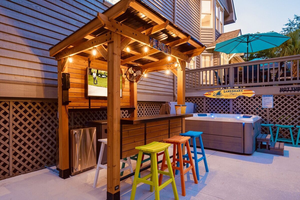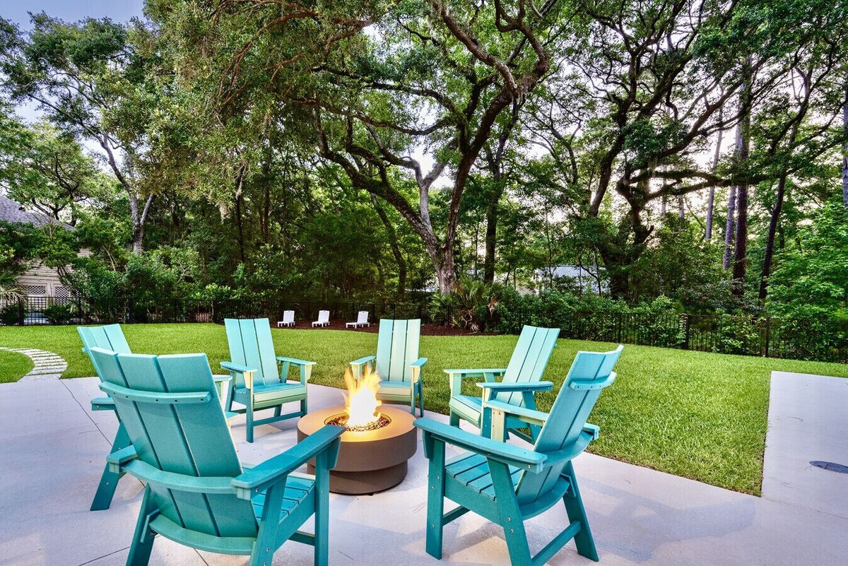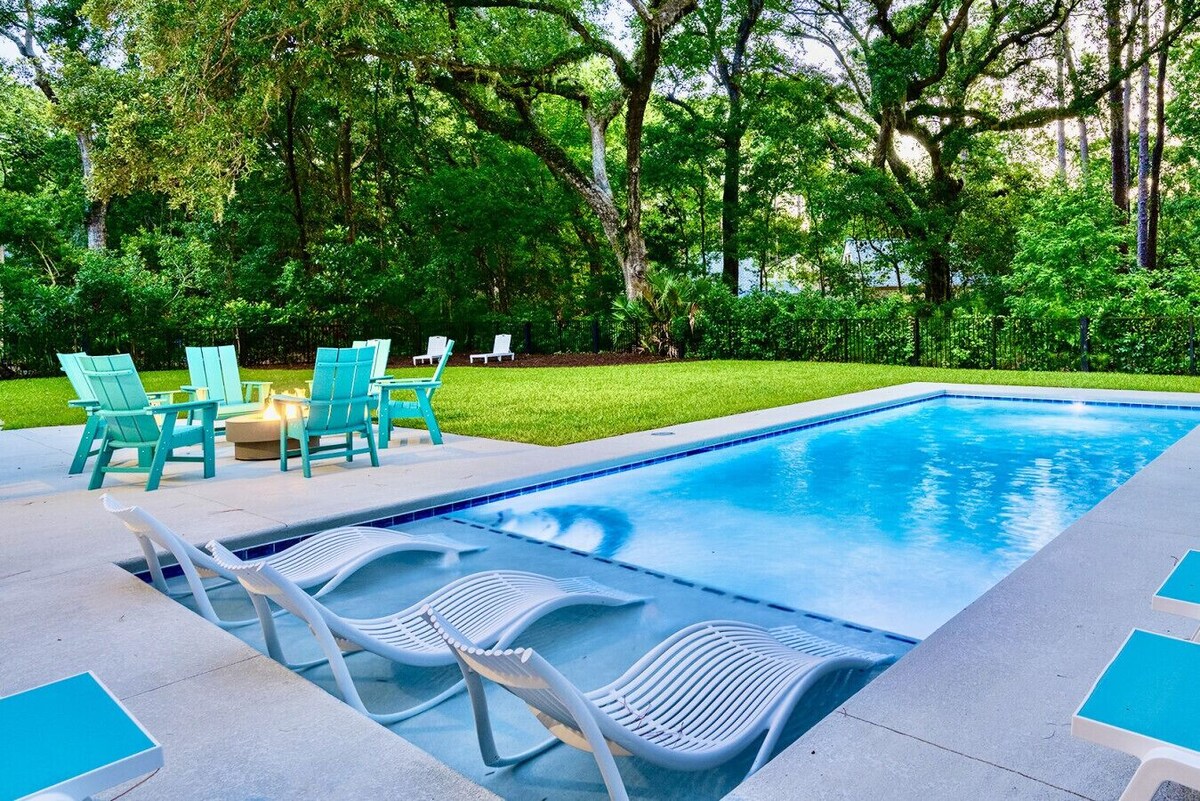 Located in the prestigious Sea Pines Resort, Sweet Carolina Retreat has the amenities needed for that perfect beach vacation. This home has the rare combination of a spacious outdoor oasis along with a large fenced back yard with grass for 2 or 4 legged guests. Relax in the large sports pool or hot tub, and gather with your guests around the fire pit or outdoor bar. All of this is walking distance to the beach and an easy bike ride to Harbour Town (lighthouse) and South Beach Marina (Salty Dog). If you are looking for a newly renovated beach home with one of the largest fenced backyards in the famous Sea Pines Resort, Sweet Carolina Retreat is a great home base for enjoying the best of Hilton Head Island. This charming Lowcountry style home on a beautiful expansive lot is gorgeous inside and out. After parking in the paver driveway that holds up to 6 cars, you can unload your cars under the shade of a massive live oak tree with that distinctive South Carolina Spanish moss in the beautifully landscaped front yard. Walk up the majestic front steps to a classic Charleston-style porch with rocking chairs, perfect for enjoying morning coffee with your guests. A spacious open family room, kitchen and dining area will welcome you as you walk through the front door. Designed for togetherness, the family room has space for you and your guests to relax on the comfy sectional, queen sleeper sofa and three stools under the sofa table. Plan out your activities for the day or cheer on your favorite team on the large 65 inch HDTV. On cool evenings, reminisce about the day around the gas fireplace. Before or after a fun island day, the fully-equipped kitchen has everything you need to fix delicious meals. Distinctive features of the kitchen are quartz countertops, bright white cabinets and a large island. Feeding all of your guests is a breeze with new stainless steel appliances (including a fridge, double oven range, two dishwashers, a microwave and an under the counter ice maker), pots and pans, cooking utensils and ample counter space to prep. Inside dining options include a dining table and stools at the kitchen island and the sofa table. There are also two dining sets (with a total of ten comfy C-Spring chairs) and a bar table with stools on the deck outside along with a large Weber Genesis 3 burner grill. We have not forgotten about the 4 legged guests as dog bowls are provided. All of the floors in the home are durable and water resistant wood-look ceramic tile so you do not have to worry about any guests messing up the floors. One of the best features of Sweet Carolina Retreat is its beautiful large landscaped yard with a heated pool (see rules for pool heat fees). The 13` x 35` newly built pool is a sports pool (for fun games like volleyball) and has a shallow tanning ledge with two bubblers for lounging or for little ones to play. For the ultimate in relaxation, the pool deck has a spacious hot tub that seats seven (open and heated year round for no extra fee!). The possibilities for fun in the yard are endless - from roasting marshmallows over the resort-style gas fire pit, to cooling off at the poolside bar equipped with a TV, to playing a game of corn hole, to reminiscing with loved ones on the deck at the end of the day. There are also opportunities for fun inside the home and garage. The garage game room (cooled with a ceiling fan) contains a ping pong table and foosball. While the adults gather in front of the family room TV to cheer on their favorite team, the kids can watch movies or play Xbox Series X on the 65 inch HDTV in the upper level living room. One entire side of the main level contains the spacious primary suite. This sanctuary has a plush king bed, TV and plenty of room to store clothes in the large door chest, dresser and walk in closet. Off of the bedroom is a cozy sitting room with a desk, desk chair and other seating. The spa-like bathroom features a double vanity, large tub and separate shower. Sweet Carolina Retreat has enough room for multiple families, couples or friend groups. Including the primary suite, the home has five bedrooms and four full (and one half) bathrooms. The adults will be happy with the four bedrooms that sleep two each in king, queen (two) and full beds. The kids and kids at heart will be ecstatic with their sleeping options, including a bunk room that sleeps up to five, a queen sleeper sofa (family room) and a comfy sectional (upper level living room). For the comfort of all guests, this home is recommended for no more than 12 adults and for no more than 16 guests total, including adults and teenagers/kids who can sleep on the bunk beds, trundle and sleeper sofas. Sweet Carolina Retreat also has the location and amenities that make trips to the beach easy. The home is less than a mile (about 19 minute walk; 5 minute bike ride) to a less crowded Sea Pines beach. A slightly longer, however more scenic walk, takes you on a leisure path through the Heron Point golf course, past the golf clubhouse to the Beach Club. If you prefer not to walk or ride a bike to the beach, the seasonal beach shuttle is just a one minute drive from Sweet Carolina Retreat. Don`t worry about bringing beach essentials on your trip since Sweet Carolina Retreat has you covered with beach towels, portable chairs, umbrellas, beach wagon, cooler, beach toys, etc. After playing in the sand, Sweet Carolina Retreat`s outdoor shower (and garden hose for the dog) will rinse off the sunscreen, saltwater and sand so you can feel refreshed before going inside. Sweet Carolina Retreat not only has a convenient location for getting to the beach, the home also has an ideal location for enjoying Sea Pines and Hilton Head. Sweet Carolina Retreat is close to the popular bike/leisure paths that take you all over Hilton Head. From Sweet Carolina Retreat, bike to Lawton Stables (3 minutes), the Forest Preserve (6 minutes), Harbour Town/lighthouse (10 minutes), Coligny Plaza (14 minutes) and South 