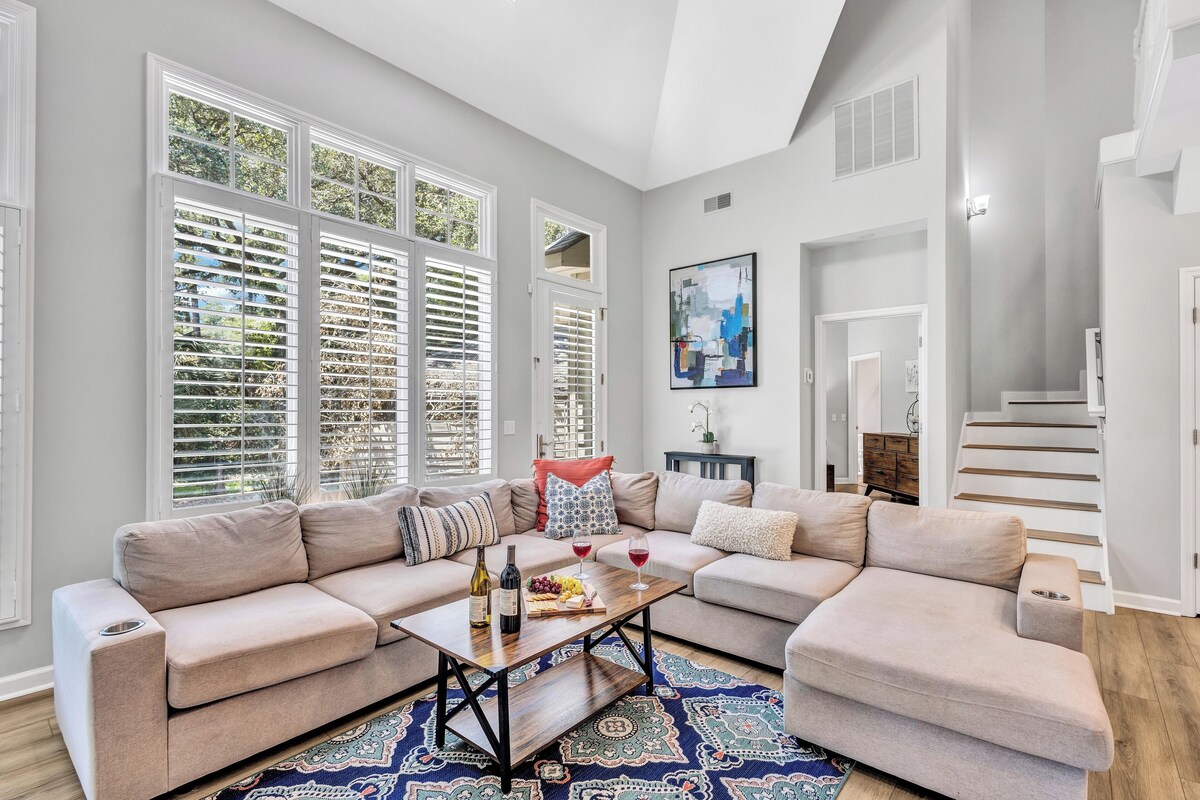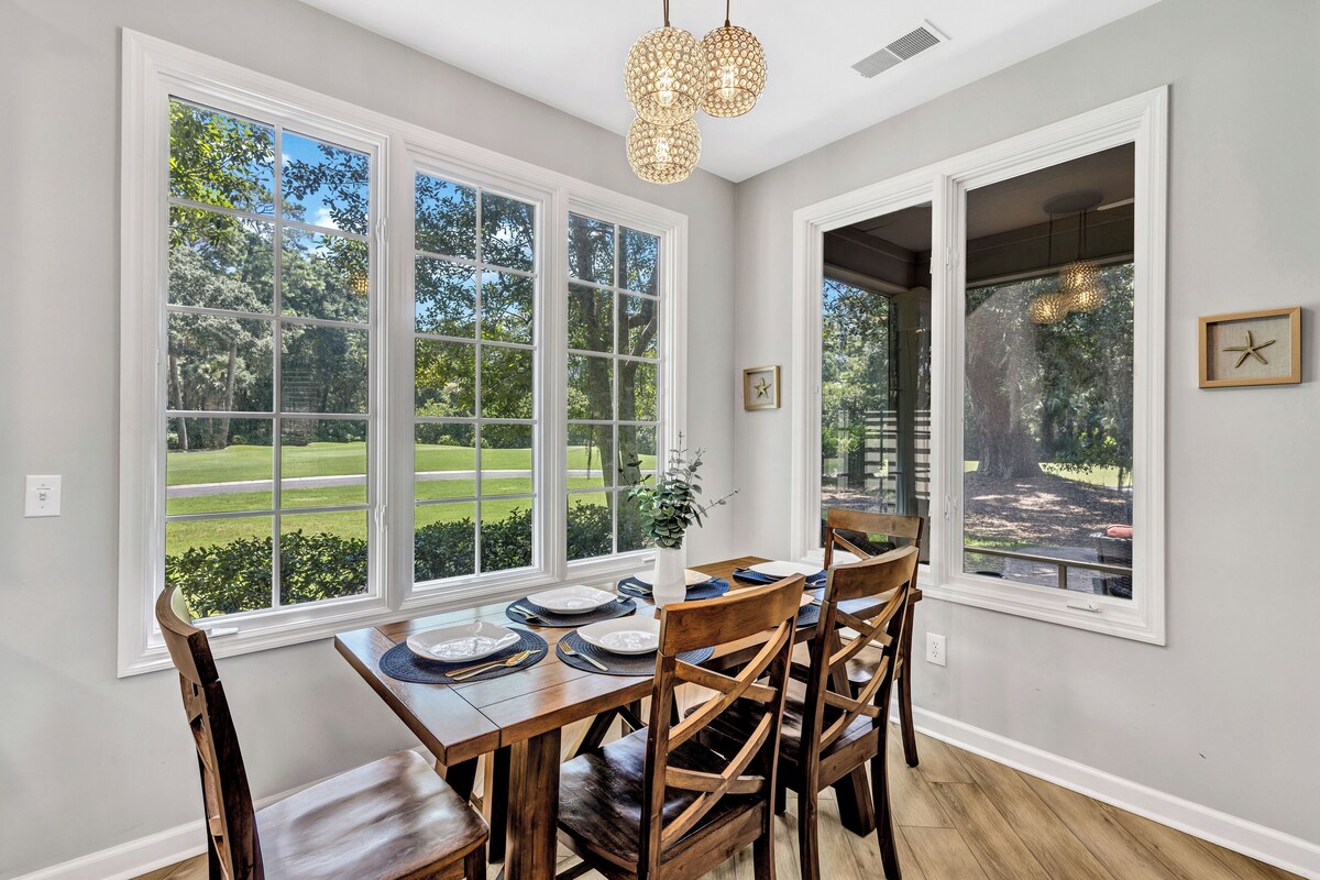 HOST & HOME presents…28 Wood Duck Court! Tucked away at the end of a quiet street in the exclusive Club Course community of Sea Pines, this pet friendly and beautifully renovated home offers sweeping views of the private 18-hole Club Course. Nestled between the fairway and a peaceful private street, the property provides a serene and secluded setting for your getaway. Relax on the private patio or screened-in porch while taking in unobstructed views of the green and tee box. Inside, nearly every room boasts scenic golf course views, making it easy to soak in the beauty of your surroundings throughout your stay. Learn more below ... ☆☆ HIGHLIGHTS ☆☆ ✹ Golf Course View: 270-degree golf views! ✹ Pet Friendly: Bring your furry dog! 1 dog 60lb or less, or 2 dogs where their combined weight does not exceed 100lbs is allowed. There is an additional non-refundable pet fee of $300 for up to 2 dogs. ✹ Outdoor Oasis: Screened-in porch, large paver patio, plus a deck off the great room! ✹ Modern Comfort: Accommodates up to 11 guests with 3 bedrooms, including a primary King suite with deck access ✹ Fully equipped kitchen for your culinary exploits ✹ Community Pool Access: South Beach Marina Pool Pass available for an additional fee ✹ Local Attractions: Within a short bike ride to Sea Pines Beach Club, South Beach Marina, & Harbour Town ☆☆ LIVING AREA ☆☆ Gather your group in the open concept living space, designed with comfort and entertainment in mind. A sectional sofa, large flat-screen TV, and stylish decor make it the perfect spot to unwind after a day in the sun. ✓ Living area designed for comfort and fun, with plenty of space for everyone to relax ✓ Cozy, inviting seating ideal for quality time with family and friends ✓ Smart TV, fireplace, and floor-to-ceiling windows ☆☆ KITCHEN AND DINING ☆☆ Enjoy preparing delicious meals with our stainless steel appliances, including a dishwasher, microwave, toaster, and Keurig coffee maker. The breakfast nook overlooks scenic views of the greens with seating for all, including additional barstool seating at the kitchen counter. ✓ Stainless steel appliances and Keurig coffee maker ✓ Fully equipped with cookware, utensils, and small appliances ✓ Dining table with seating for 6 & 2 additional spots at the kitchen counter ☆☆ BEDROOMS & BATHROOMS ☆☆ On the first level, you'll find the Primary suite located off the living room. This Primary suite boasts convenient deck access, a luxurious king bed, a Smart TV, and an en-suite bathroom equipped with a soaking tub and walk-in shower. The first floor also has a bonus room that highlights a twin daybed and twin trundle, sleeping 2. Venture up to the second level, where two comfortable bedrooms share a jack and jill bathroom with double vanity sinks & shower/tub combo. Bedroom 2 has a twin/double bunk bed and Smart TV. Bedroom 3 has 2 full-sized beds and a Smart TV. 1st Floor: ✓ Bedroom 1: Primary King suite, en-suite bathroom with walk-in shower and tub, access to deck, Smart TV 2nd Floor: ✓ Bedroom 2: 1 Double + 1 Twin bunk bed, access to shared bathroom, Smart TV ✓ Bedroom 3: 2 Full sized beds, access to shared bathroom, Smart TV ★☆ OUTDOOR PRIVATE OASIS ☆★ Step outside to a screened-in patio just off the dining room, complete with cozy seating and a ceiling fan—perfect for relaxing after a day on the course. A spacious deck offers additional outdoor dining and a second view of golfers teeing off. Fire up the grill for outdoor cooking and al fresco meals! ✓ Screened-in patio ✓ Spacious patio providing additional outdoor seating ✓ Weber BBQ grill ☆☆ EXCLUSIVE SEA PINES AMENITIES ☆☆ Enjoy easy beach access, along with the Sea Pines Beach Club and its renowned dining options. Take advantage of three world-class golf courses, the Sea Pines Racquet Club, Lawton Stables, or embark on a sea adventure at historic Harbour Town (additional fees may apply). ✓ World renowned golf courses including Harbour Town Golf Links and Atlantic Dunes ✓ Sea Pines Racquet Club ✓ Lawton Stables ✓ Sea Pines Forest Preserve ✓ Endless shaded bike and walking paths throughout resort and beyond ✓ 12 miles of sandy white beach ☆☆ NEARBY ATTRACTIONS ☆☆ Nearby, you'll find a wealth of attractions to explore, from the beach just to charming shops and family-friendly activities. Here are some of the best spots to check out: DINING AND SHOPPING: Discover a variety of upscale dining and shopping options nearby. ✔ South Beach Marina (5.1 miles) ✔ Harbour Town Shops & Lighthouse (3.4 miles) ✔ Shelter Cove Towne Centre (4.3 miles) FAMILY-FRIENDLY ATTRACTIONS: Explore engaging attractions that the whole family will love. ✔ The Sandbox Children's Museum (1.9 miles) ✔ Pirate's Island Adventure Golf (3.5 miles) ✔ Coastal Discovery Museum (6.8 miles) ☆☆ OTHER THINGS TO KNOW ☆☆ ✓ Beach towels provided ✓ This house has parking for 3 vehicles in the driveway. Guests do not have access to the garage. ✓ Street parking and parking on grass or pine straw are prohibited by the town. ✓ This property is in the gated community of Sea Pines and a car pass is required for every vehicle. One paid car pass is included with your reservation. Please contact your Host prior to arrival to purchase additional car passes. ✓ The Town of Hilton Head Island enforces quiet hours between 10:00 PM and 7:00 AM. ✓ The South Beach Marina Pool Pass is an additional fee. ✓ The minimum age requirement for renting this property is 25. ✓ PET POLICY: 1 dog 60lb or less, or 2 dogs where their combined weight does not exceed 100lbs is allowed. There is an additional non-refundable pet fee of $300 for up to 2 dogs. ☆☆ YOUR STAY - OUR PRIORITY ☆☆ At HOST & HOME we know that you deserve a vacation and we have a perfect place for it. Our carefully curated vacation homes are immaculate, safe, and meticulously maintained, ensuring comfort and quality 