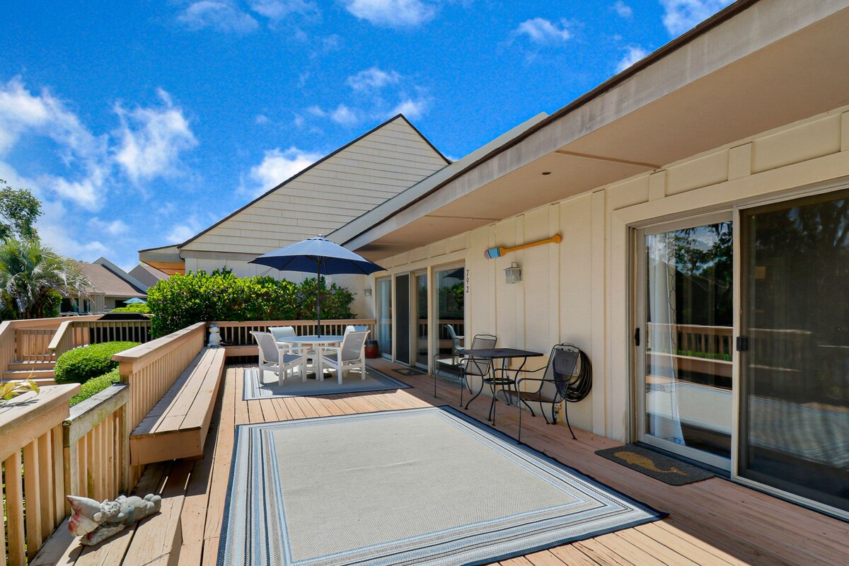 Queens Grant 792 Our calendar is updated in real-time & our nightly rates are accurately displayed. Simply enter your desired dates and click 'Book Now!' Welcome to your serene getaway in Hilton Head, SC! This spacious Palmetto Dunes condo offers a stunning lagoon view and a large, sunny deck perfect for relaxation and outdoor dining. The extra-large, fully gated deck features a comfortable patio set with an umbrella, ideal for enjoying your morning coffee or evening cocktails. Fire up the gas BBQ for a delightful cookout with family and friends, or gather around the dining room table that comfortably seats six. Inside, you'll find a large new sectional couch, perfect for unwinding after a day of beach adventures. The condo is dog-friendly, making it easy to bring your furry companion along for the fun. With a queen bed, twin bed, and king bed, there's plenty of space for everyone to rest comfortably. Conveniently located just a 5-minute bike ride, 14-minute leisurely walk, or 3-minute car ride to the beach, this condo is perfect for beach lovers. Plus, enjoy the FREE Dunes Buggy shuttle service available from April through September, which will pick you up right at your front door and whisk you away to the beach or the vibrant shopping and dining scene at Shelter Cove. The Queens Grant community pool is just a minute's walk away, offering another option for relaxation. Book your stay today and experience the best of Hilton Head! Things to Know Check-in time: 4:00 p.m. Check-out time: 10:00 a.m. All guests shall abide by Vacasa’s good neighbor policy and shall not engage in illegal activity. Quiet hours are from 10:00 p.m. to 8:00 a.m. No smoking is permitted anywhere on the premises. Please note E-bikes are not allowed. This property is managed by Vacasa South Carolina LLC If you are bringing a dog on your trip, the pet fee is already included in your quote when selecting ‘Yes’ to pets. If you would like to add more dogs, please contact us. Parking notes: There is free parking available for 2 vehicles. This rental is located on floor 1. Damage waiver: The total cost of your reservation for this Property includes a nightly damage waiver fee, plus tax if applicable (the “Damage Waiver”). (A discount may be applied for stays of 28 nights or longer, if permitted.) The Damage Waiver covers you for up to $3,000 of accidental damage to the Property or its contents (such as furniture, fixtures, and appliances) as long as you report the incident to the host prior to checking out. The Damage Waiver fee eliminates the need for a traditional security deposit. More information can be downloaded from the \ on the checkout page. Due to local laws or HOA requirements, guests must be at least 25 years of age to book. Guests under 25 must be accompanied by a parent or legal guardian for the duration of the reservation. Our prices include all fees. No hidden fees.