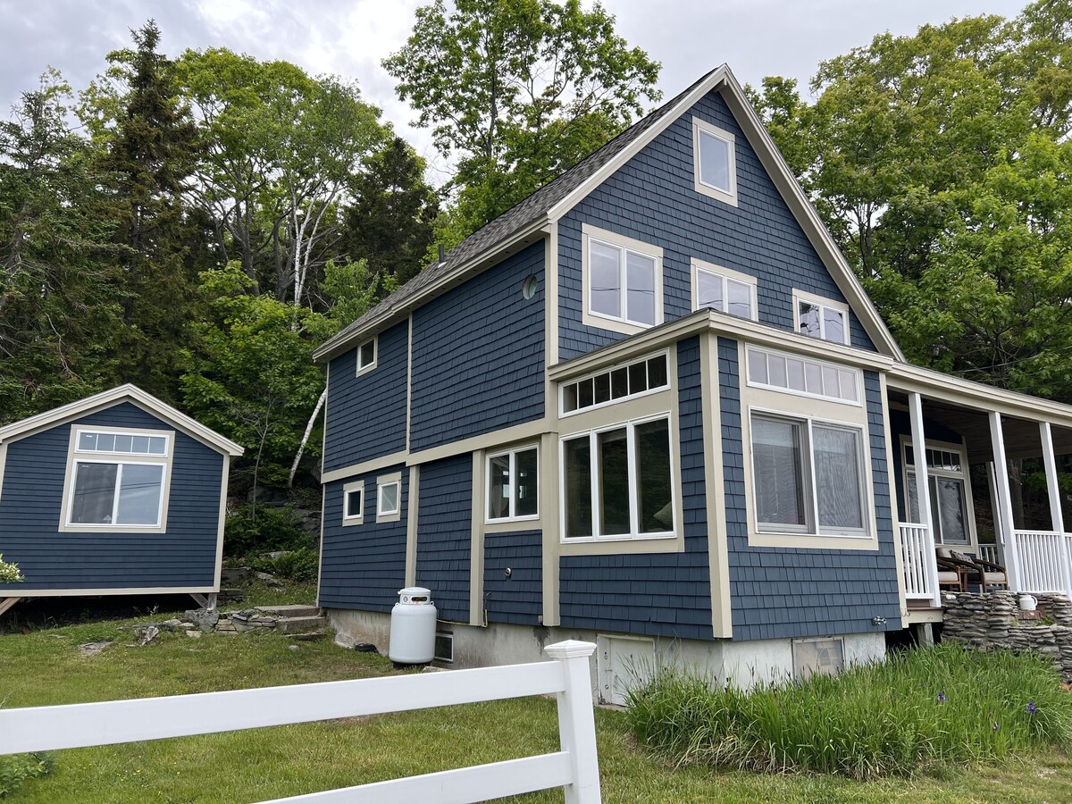 Bella Vista is a 3 bedroom, 2 1/2 bath home sitting directly on the Atlantic Ocean side of Peaks Island at Elm Tree Cove. One of only 2 houses on a small dirt road abutting a land preserve and conservation land. See and hear the ocean waves crash into the rocks just outside of your living room and bedroom windows. Spectacular views from every room. Enjoy your morning coffee on the large covered porch with an unobstructed view of the sunrise and a panoramic view up and down the rocky coastline.. Absolutely breathtaking! One of the best spots on the backshore. The home is a well maintained cottage home with 3 bedrooms. All are tastefully decorated, and all have ocean views!!!. The 1st floor has a well stocked updated kitchen with good size refrigerator and an electric stove/oven and microwave. There is also a long L shaped dining/living room designed to take full advantage of the amazing view. There is also a library and a full bath with a shower on the 1st floor. The 2nd floor has 3 bedrooms: the 1st with a queen size bed and a half bath attached. The 2nd has a a full size bed and a futon. The 3rd has a twin and an Antique bed (small full - 48x72). There is also full bath with a shower/Jacuzzi tub. Peaks island is a 15 minute ferry from Portland, where you can experience a beautiful seaside town with a wide variety of great restaurants and activities. The island offers exceptional walking, jogging, horse riding, tennis, swimming and relaxing with a wild bird preserve, a social club for activities, little shops, grocery store and restaurants. You can easily walk to everything. Amenities: wifi, weber gas grill, 42\ ,