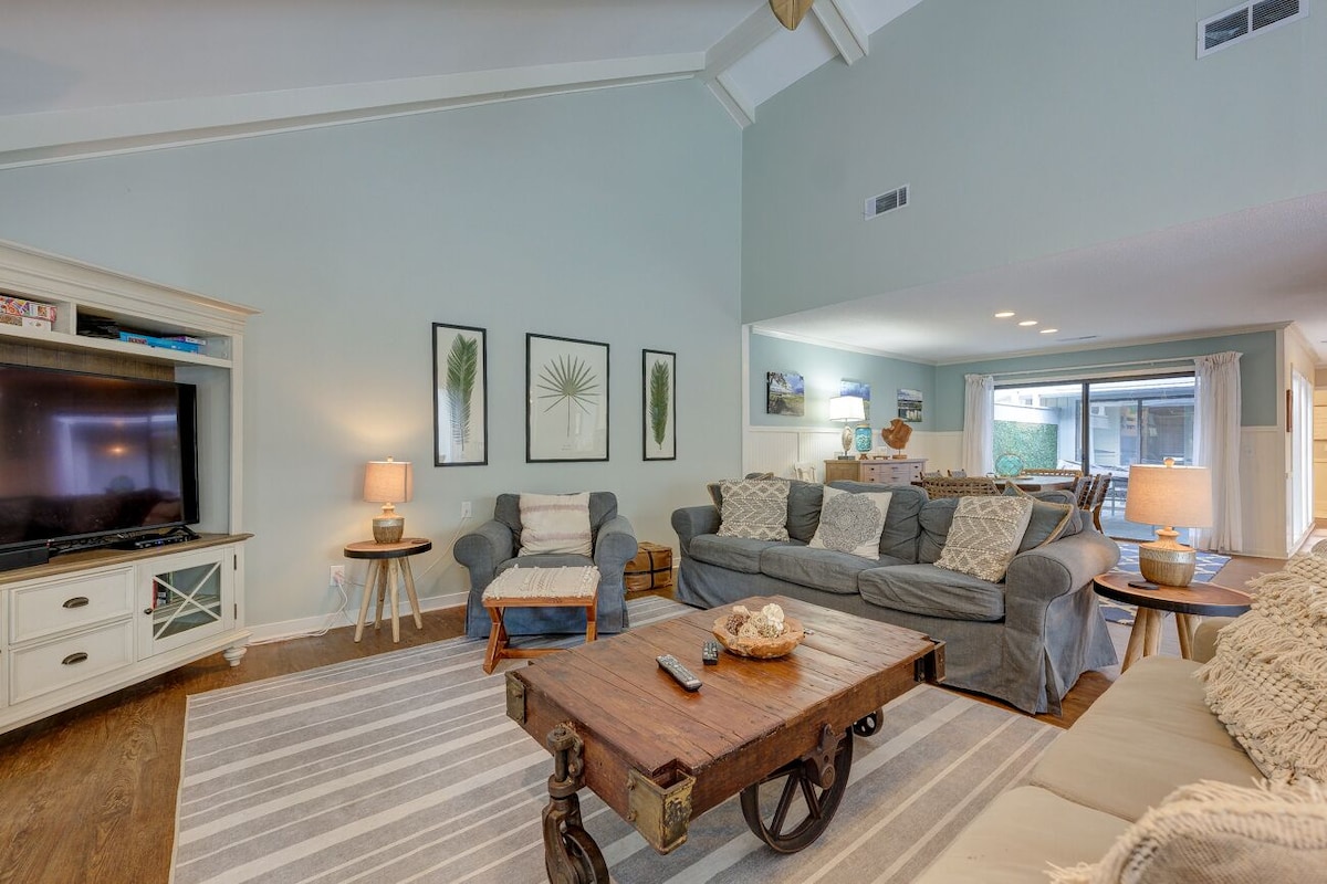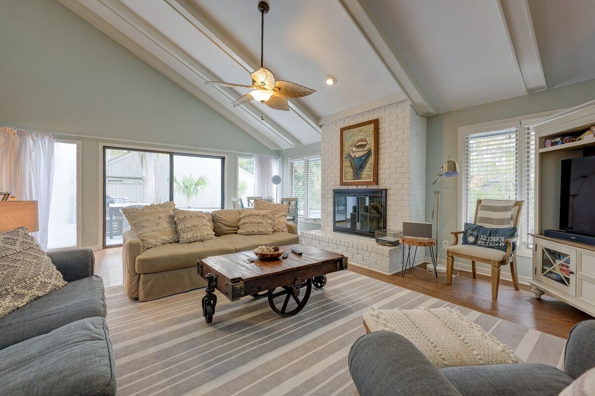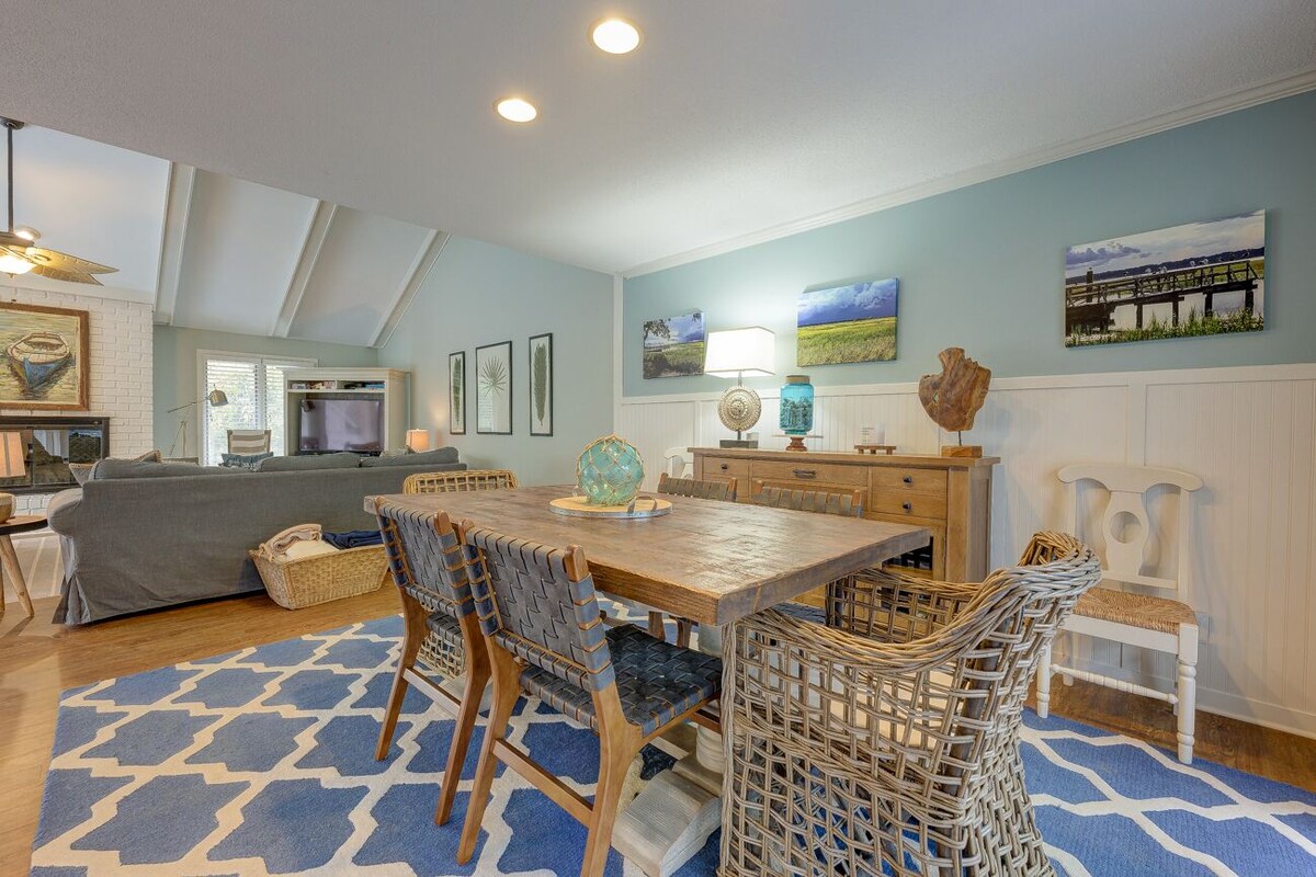 6 Cannon Row, Sea Pines Private Home, New Private Pool Basic Features: • 2121 sq. ft. • 3 bed, 2 Bath • 2 Kings, 2 Twins, 2 Bunk Beds • TV/DVD player in living room • Gas Grill • Huge back deck with lagoon view • WiFi • 1 Hour free tennis daily at South Beach Racquet Club • 1 Car pass into Sea Pines • 4 Free Adult Bicycles at home with South Beach Cycles • 4 Backpack Beach Chairs at the home * Pool Heating may be added between March and October for $50 per day plus a $50 setup fee. This 3 bedroom, 2 bath beach house is in a spectacular location, biking distance of the beach. It's situated in the Heritage Woods section of Sea Pines Plantation - just off the trail to the beach (only a ten-minute walk or a five-minute bike ride). The back deck is extremely spacious, and is perfect for barbecues. A large lagoon accents the surroundings, offering water views from inside and outside the house. This picturesque setting is located in a warm and friendly neighborhood in Sea Pines. Bike trails surround the neighborhood making beach access accessible in minutes. It's also a very short bike ride to Harbour Town to the West, and to South Beach Marina to the south. The nearby Sea Pines Beach Club features a beach shop, restaurant and outdoor grill, an outdoor tropical bar, and nightly entertainment. There are two access paths to the beach that are closer (see map) and offer ocean tranquility and beach beauty along some of the most valuable residential property on the whole island. A serene lagoon view greets you from all angles in and around the house. The home features new hardwood floors, newly renovated kitchen, a dining room, an eat-in kitchen area, a fireplace, and cathedral ceilings - all on one floor. The home has an open and bright floor plan with lots of windows and skylights. The living room has a vaulted ceiling, double sliding doors to the deck, a ceiling fan, and a fireplace. The dining area is separate, but open to the living room. The fully-stocked, gourmet kitchen is completely remodeled. With granite countertops and new tiling. There is a kitchen bar separating the kitchen from the breakfast and sitting area. Our prices include all fees. No hidden fees.