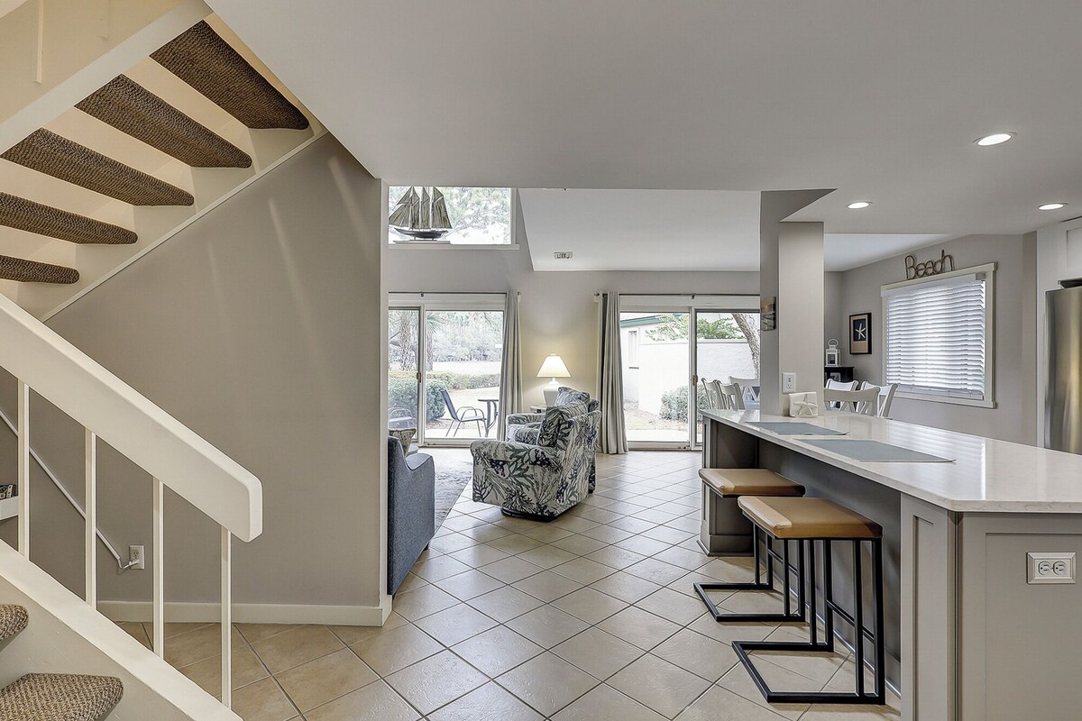 263 Stoney Creek is a 2-bedroom, 2.5-bath townhouse in the heart of Harbour Town. The first floor hosts the kitchen, dining area, living area, and half bath. The open floor plan and vaulted ceilings make this room very spacious and bright. Access your private patio through the sliding glass doors in the living area. The patio has gorgeous marsh views, a table with seating for 4, and a gas grill. Enjoy dining al-fresco and bird watching while enjoying your morning coffee on your patio. The 2nd level hosts the bedrooms. The primary suite is outfitted with king bedding and an en-suite bath. This bedroom also has a private deck with stunning marsh views where you can take in the beautiful scenery surrounding you. The second bedroom has two twins and a private bath. This is the perfect villa for small families and golf groups needing a vacation to Hilton Head. Beginning on May 5, 2025, two weeks after the finish of this year’s RBC Heritage, the world-famous, Pete Dye-designed Harbour Town Golf Links will close for an extensive restoration project. This project has a tentative completion date of November 2025. Views of the course may be obstructed as course maintenance will be taking place 5-7 days a week. HIGHLIGHTS • Marsh Views • Free Wireless Internet • 3 TVs • Gas Grill NEARBY AMENITIES • Onsite Newly Renovated Outdoor Pool • Harbour Town Golf Links • Harbour Town Marina SEA PINES RESORT FEATURES & AMENITIES [All Sea Pines Resort Features are subject to purchase, seasonality, and availability.] • Lawton Stables • Golf Courses - Harbour Town Golf Links home to the RBC Heritage Classic. Additional Sea Pines Resort courses include Heron Point by Pete Dye, Atlantic Dunes by Davis Love II, and Sea Pines Country Club [Private] • Harbour Town Marina - Lighthouse, Shops, Restaurants, Water Activities, Private Boat Charters • South Beach Marina - Shops, Restaurants, Water Activities, Fishing Charters, Dolphin Tours • Racquet Clubs - South Beach & Harbour Town • Trolley Transportation - Schedule Varies • Tower Beach Parking - Property Owners Only • Sea Pines Beach Club Parking - Major Seasonality Restrictions • Ongoing upgrades to enhance the resort include renovations, new construction, and road projects. PROPERTY CONFIGURATION • 2 Bedrooms • 2.5 Baths • Sleeps 6 • Washer/Dryer • Fully Equipped Kitchen BEDDING BREAKDOWN • Bedroom 1 - 1 King -2nd Floor • Bedroom 2 - 2 Twins -2nd Floor • Living Room - 1 Queen Sleeper Sofa PROPERTY REMINDERS • *This villa is dog friendly with $300 non-refundable pet deposit - Please inquire when making your reservation. Certain restrictions do apply. Dogs limited to 40 pounds or smaller. • Parking passes should be displayed at all times • The Vacation Company's Guest Connect will contain all your check-in information (lock codes, Wi-Fi codes, and other information pertinent to your stay). Our prices include all fees. No hidden fees.
