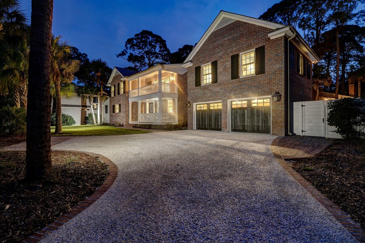 23 Ruddy Turnstone is a beautiful home packed full of history. This five bedroom, five and half bathroom home is your luxury vacation home located 4th row ocean on a beach path just steps away from the beautiful Hilton Head Island beach. Originally built in the 18th century, this home was moved to Sea Pines in 1963. Dubbed the \ - this architectural masterpiece is filled with character & charm. It underwent a major remodel and expansion and is stunning. The original bricks, beams, doors, mantels + railings leave all of the character that makes this such an amazing home. There is exposed brick throughout and truly just beams with architectural charm & charisma. Grill out for the family on the outdoor grill or relax in the seating area outside. The private pool and spa can be heated seasonally for an additional fee - see details in description below. This is a dog friendly home allowing two dogs maximum. The pet fee is $250 plus tax - must reach out to us in advance to confirm your pet details. 1st Floor: The kitchen is equipped with nice stainless steel appliances, Wolf gas range stove, full sized refrigerator (no freezer), marble countertops & more. There is also a stand-alone ice maker, wine fridge, a second oven, and 2nd full-sized refrigerator with a freezer located in a side room off the kitchen. The living room has a 65” smart flat screen TV + access to the pool deck. There is also a den off the kitchen area with a flat screen TV. The laundry room is on this level with a washer and dryer. Bedroom one has a queen bed, walk-in closet + 55” smart flat screen TV. The updated private bath has a shower/tub combo. 2nd Floor: The master bedroom has a king bed + access to the private southern style porch. There is a walk-in closet + 55” smart flat screen TV. The private bath has a large, updated walk-in shower + marble countertops. Bedroom three has a king bed + 43” smart TV. The private bath has a double vanity + walk-in shower. Bedroom four has a king bed & a twin bed with a pull out twin trundle + 43” smart flat screen TV. The private bath has a double vanity + walk-in shower. Guest House: Steps away from the main home, you will find the mother-in-law suite located upstairs separate from the home with a king bed + 65” smart flat screen TV. The private bath is updated with marble countertops, double vanity + large walk-in shower. Additionally, in this suite, you have a second washer & dryer, microwave, mini-fridge + coffee maker. *BEDDING CONFIGURATION* • Bedroom 1: Queen (1st Floor, Flat Screen TV, Private Bath) • Bedroom 2: King (Master, 2nd Floor, Flat Screen TV, Private Bath) • Bedroom 3: King (2nd Floor, Flat Screen TV, Private Bath) • Bedroom 4: King + Twin Bed with Pull Out Twin Trundle (2nd Floor, Flat Screen TV, Private Bath) • Bedroom 5: King (Separate Guest House, Flat Screen TV, Private Bath) *ADDITIONAL INFO* • Distance to Beach: 4th Row Ocean • Pool/Spa Info: Approximately 27' x 13'. The pool and spa can be heated seasonally for an additional fee. The spa can be heated year-round for an additional fee. The pool can only be heated for stays falling between Labor Day through Memorial Day for an additional fee. No pool heat is available during the summer months. Please email/call us at least two weeks prior to your arrival if you would like to add pool/and or spa heat + pay fee. • Fully Equipped Kitchen with a Regular Drip Coffee Maker, Keurig + Crockpot • 10 Beach Towels + 6 Beach Chairs • Dog Friendly: This home permits a max of two dogs to stay in the home. The pet fee is $250 plus tax. Please reach out to our office in advance to confirm + pay the additional pet fee. • 3705 Sq Feet • Paying guest reservations staying between 4-27 nights will receive a $250 VayK Life beach/bike gear credit. This will be emailed to you after making a reservation and is valid for VayK Life rentals only. • Parking is available for up to 6 cars max. Car passes are an additional $17/pass/week. Our prices include all fees. No hidden fees.