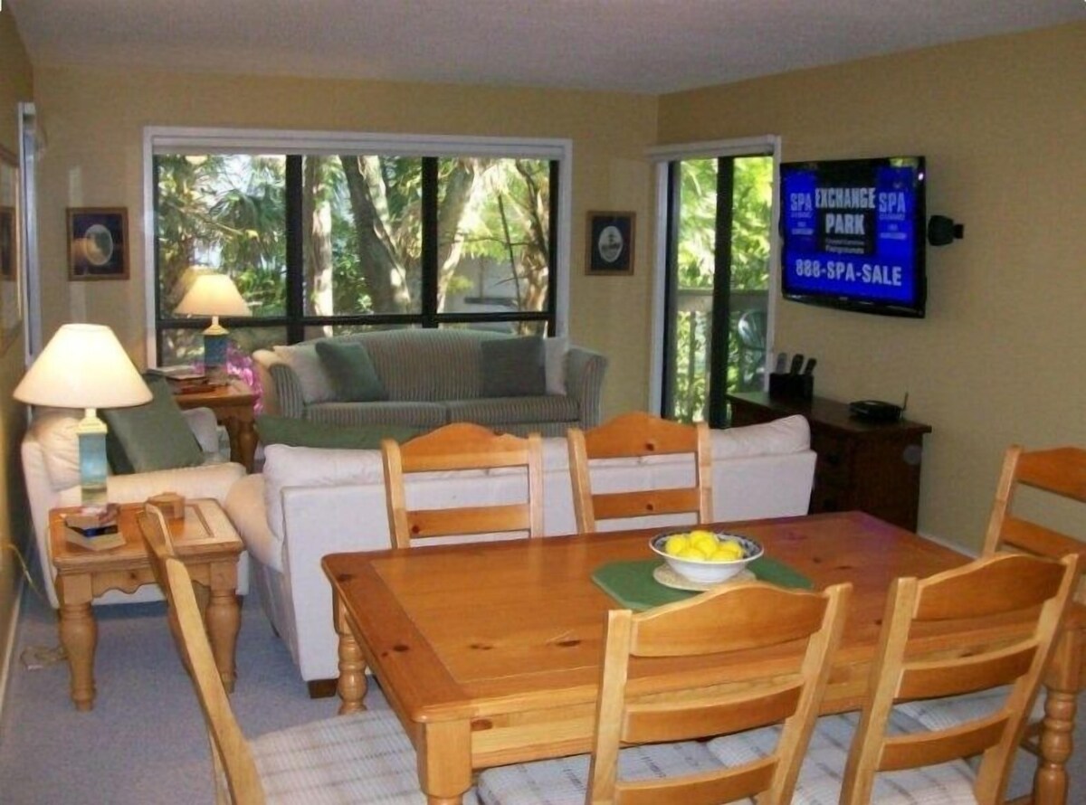 Welcome to Our Ocean Retreat at The Moorings in Palmetto Dunes Oceanfront Resort Located in the exclusive gated community of The Moorings within the beautiful Palmetto Dunes Oceanfront Resort, Unit 19 is a fully renovated 2-bedroom, 3-bathroom condo that offers the perfect blend of luxury, comfort, and convenience. Personally maintained by our attentive island-based staff, this 1,260-square-foot retreat is ideal for families, couples, or anyone seeking a relaxing getaway. Spacious Living & Modern Amenities The living room, designed for comfort and entertainment, features: • A 65\ flat-screen TV • Second Bedroom: Two queen-sized beds, en-suite full bathroom, and a 42\ s Restaurant • Bike, kayak, and canoe rentals Marriott Beach Resort & Spa, which offers restaurants, bars, spa services, and even Starbucks coffee Pet-Friendly Retreat We welcome dogs, because we know they love the beach just as much as you do! Explore Palmetto Dunes Palmetto Dunes is home to three world-class golf courses designed by George Fazio, Arthur Hills, and Robert Trent Jones. Enjoy miles of scenic biking and walking trails that connect to Shelter Cove Marina via a convenient tunnel under Route 278. At Shelter Cove Marina, you ,