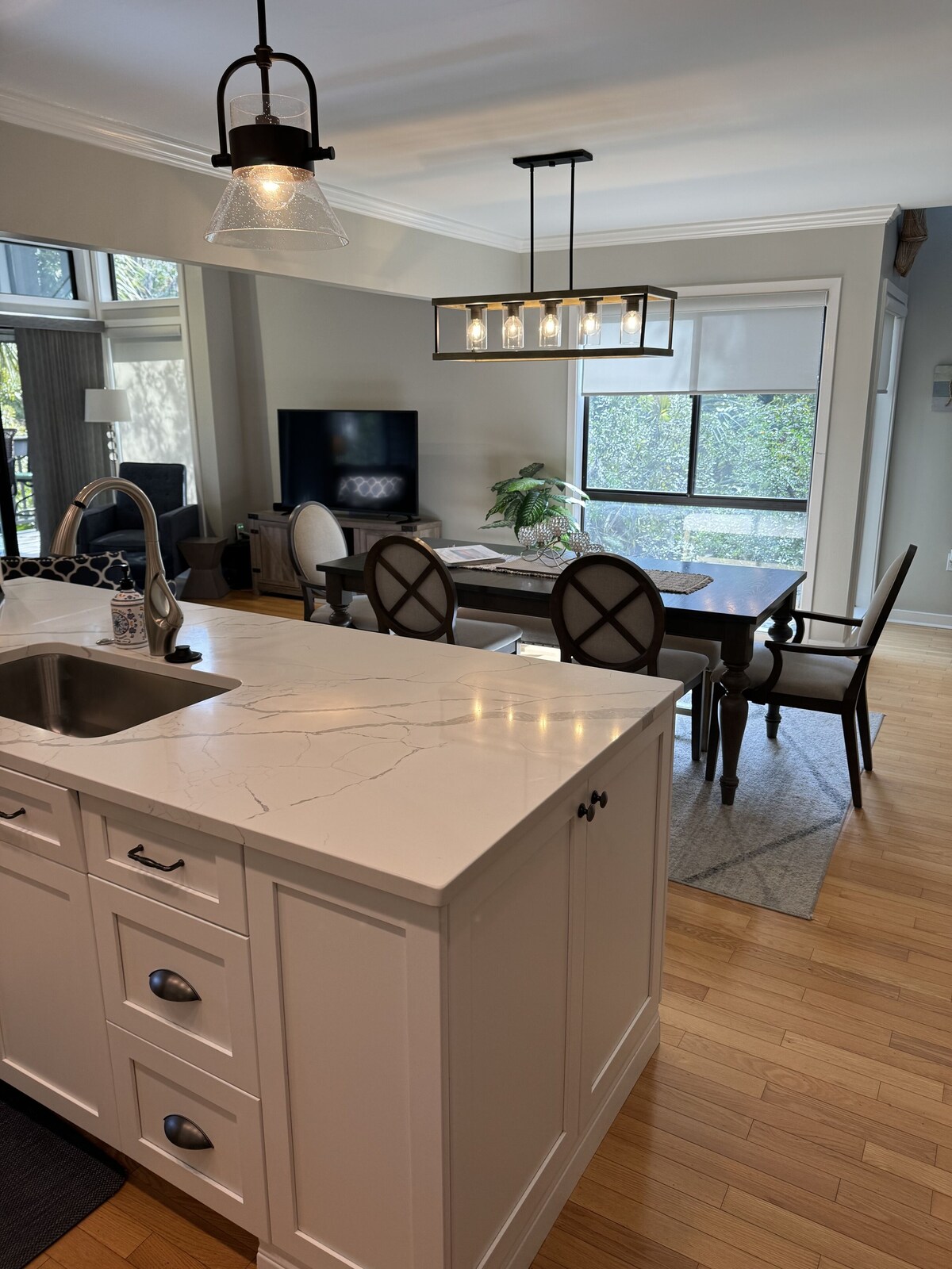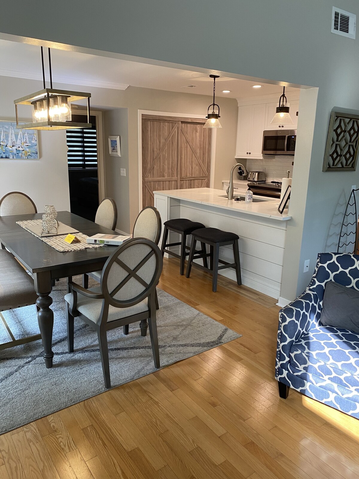 Stays that are 2 weeks or more …. ask about our specials for pickelball and tennis ! Quiet, tranquil, bright villa. The perfect getaway ! Whether your favorite way to relax is by spending time on a golf course, at the beach, sitting poolside or on a tennis court, the location of my 3 BR (2 private rooms plus a loft with a Murphy bed ),2 Bath villa is optimal for all of the above. An infant travel crib is located in the master bedroom closet. The deck overlooks the 10th fairway of the George Fazio course and a lagoon with water fountains . A short walk out the front door will find you at the Turnberry Village pool, and picnic area. Access to the beach or to the tennis courts by car in 2 minutes, by bike in 5 minutes and on foot in less than 15 minutes.(if walking around the golf course). Before and after golf course hours you can access the beach in less time via the cart path. The first floor of the villa contains a large open living room, spacious dining room, fully stocked kitchen,Master BR with a king-size bed, smart TV and full bath The second floor consists of a guest suite that has 2 full beds, large closet, smart TV, Walk in shower with large closets., small washer and dryer. The loft has a full size Murphy bed and large wrap around desk that over looks the golf course and water fountain for those eager to work at their stay. The living room has a 55\ s. A Bose 4 disc stereo system with jacks for auxiliary devices for a great sound!. Some of our favorite cd ,