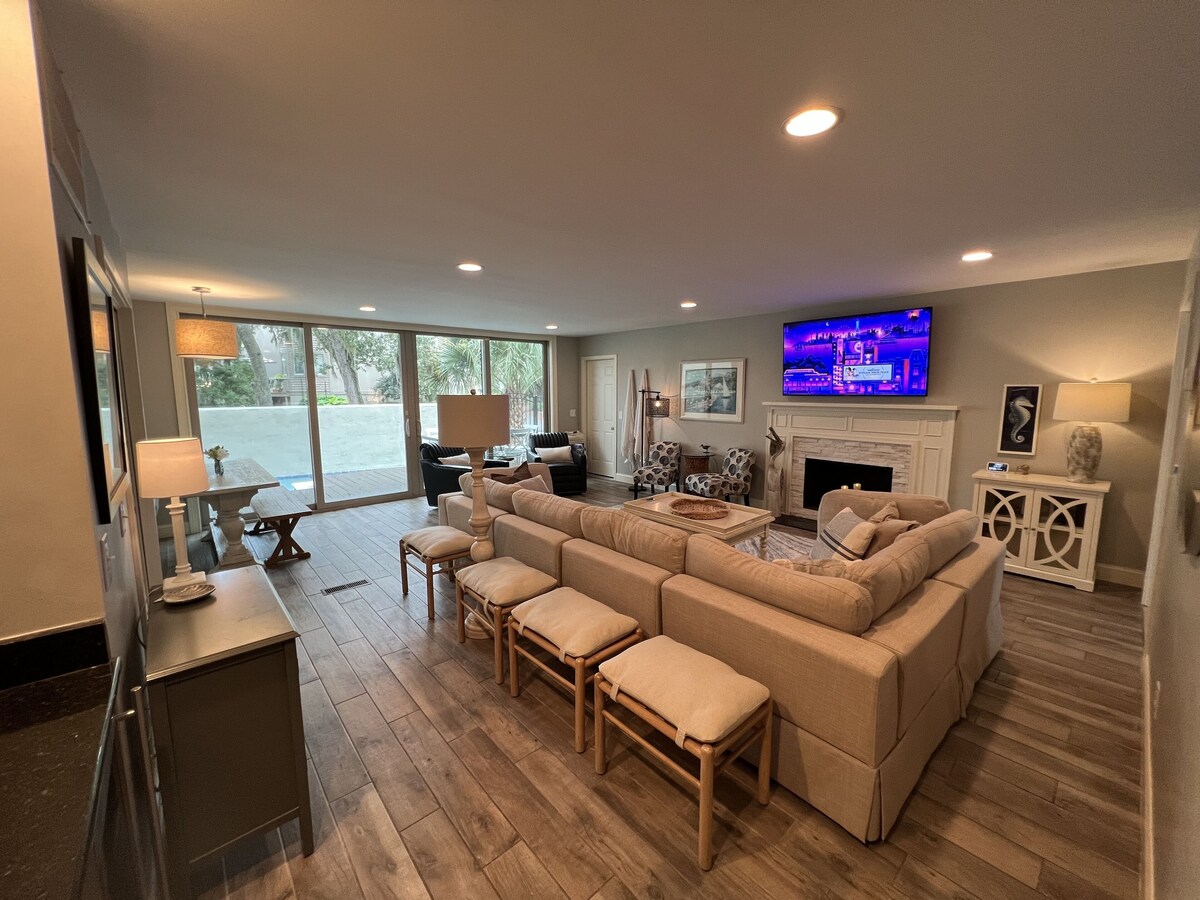 This charming, 5 bedroom, 4.5 bathroom three story home is located in the most lovely area of Harbour Town. It sits between the Lighthouse and the 16th green of Harbour Town Links Golf Course, just off the 18th fairway and Calibogue Sound, in the very heart of Harbour Town. In addition, you're only a 1.5 mile bike or car ride to the fabulous new Beach Club. You won't find a more quaint area of Sea Pines and will want to return again year after year. The home is the perfect mix of private space and proximity to everything Sea Pines and Harbour Town have to offer. It is a large and spacious villa within walking, biking or shuttle distance to the shops, restaurants, the beach, and any water sport activities available within the Harbour Town Marina area. It is also only a two minute walk to the beautiful, newly renovated (heated!), private, Harbour Town swimming pool and world class tennis facility. The members-only Harbour Town pool is also available for use by our guests. With a spacious floor plan, including a newly redecorated living room, dining room, and bedrooms, the villa has ample room for one large family, or for several families, couples, or groups of golfers or tennis buffs The first floor has a game room/sunroom, large dining room, well stocked and newly renovated kitchen, wet bar, living room and half bath. There is also access to a first floor patio and dipping pool from the living room on the main level. The second floor has 3 Master bedrooms, including a Master suite, a King bedroom with private bath including tub and shower; a second King bedroom with private bath; and a third King bedroom with private bath (shower). The laundry facilities are also available on this level. The third floor has two additional bedrooms, one with a queen bed and single trundle beneath, and the other with two sets of bunk beds. The third level also has a full bath with tub and shower. Recent upgrades include: complimentary WiFi; new Flat Screen SMART TV's (HDTV/DVD) in the Living Room, Den, and 3rd floor play area. There are flat panel TVs in the master suite and all 5 bedrooms, as well as 2 DVD players. We have also just completed a must see kitchen renovation that is sure to make your vacation even more enjoyable. The home has a partial view of the The Sound from the patio area. Take the short walk to Harbour Town and you'll find fabulous nearby restaurants, shops, and superb waterfront activities - including it's world famous vacation marina - all in the shadow of the iconic Harbour Town Light House. Our location is guaranteed to make your stay enjoyable! The pristine beaches of Hilton Head are a leisurely shuttle or bike ride on the Harbour Town Trolley. Explore the more than 30 miles of bike trails within Sea Pines, and thrill the kids by spotting alligators and turtles by the lagoons. The activities on Hilton Head are endless, this is truly one of the best vacation Islands in the United States. Keywords: Villa Harbour Town Golf Greg Russell Light House Our prices include all fees. No hidden fees.