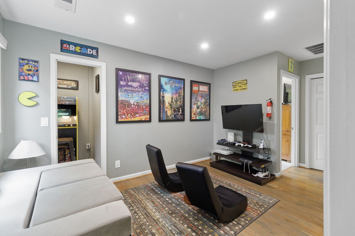 Welcome to Paradise in the Pines of HHI! Located on a beautiful street in Sea Pines on the 6th fairway of Heron Point Golf Course. Just a short bike ride to Harbour Town or the Beach. Or stay in Paradise and enjoy all the amenities of your vacation home. For Jan, Feb, and/or March, contact us for special price for longer stays 2 weeks or more. Contact us for quotes for extended stays. We are pet friendly (max 2 dogs) but please let us know in advance and there is a pet fee to cover additional cleaning. Recent updates: New laundry room with 2 sets of top of the line GE W&D and a half bath, kitchen remodel, 10 new sliding glass doors, HW floors, polished travertine, tankless hot water heaters, new HVAC in upstairs rooms, new pool table, new furniture, paint, new electronics, etc. Highlights: Walking through the front door, you're instantly greeted with natural light coming through the wall of windows leading to the pool area. This multi-story, 5 bedroom, 4.5 bath home, has gone through a recent renovation that was professionally designed by a local interior designer. There are 10 sliding glass doors providing gorgeous golf course views and access to the many patios and the screened-in pool makes this is a vacationer's dream. Outside, there are multiple decks, lots of shade and a large flat backyard for playing with the kids. Inside there are 4 King Suites with upgraded bathrooms, a separate loft for the kids, three entertaining areas for adults and kids, and 2 wood burning fireplaces. There are 8 HD TVs all with Roku, Sonos speakers (10+) in all the living areas and the pool deck, an Orbi mesh wifi network and a house ipad to control the audio. We have additional have amenities (pak-n-play and high chair) for families traveling with small children. Bedrooms: All the bedrooms are themed. The Heron bedroom has a king bed, 40\ flat screen TV and a DVD player. This room has a renovated bath with a walk-in shower. The 2 remaining Suites are the Sea Horse and Octopus. These are accessed through a staircase in the 1st living area. Each suite has a king bed, 32\ ll find the Whales and Mermaids loft area, which features 2 twin beds, a twin/twin bunk bed and a Queen bed. There is a 40" flat screen TV and Bluray player. The summary of beds is K,K,K,K, 4T, Q plus a sleeper sofa. Living areas There are three Living areas. The Den is the adult game room. There is a 65" flat screen, Blu-Ray player, wet bar and a new pool table. This living room is open to the kitchen, making it the perfect space for entertaining. There is a private deck off the Den. Just beyond the kitchen is the Living Room and dining area which also features a 65" flat screen TV and a Blu-Ray player. Both of these living areas have access to patios on both sides of the house. There is another living area on the mezzanine which is the kids gaming area. There is 50" TV with Xbox One and PS4. There is also a standup arcade with the classic arcade games. Kitchen The Kitchen is updated to be modern with all Stainless appliances. The wall oven and microwave combo are brand new. There are plenty of plates and utensils for everyone in your group. We even have kids plates and cups as we have younger kids ourselves. The pool can be heated in the cooler months (additional fees apply)**. Sea Pines is a wonderful community with 3 golf courses, tennis, beaches, bike/walk paths and Harbour Town. We are located very close to the biking path and its just a short ride anywhere in Sea Pines. There are shops close by at The Shops at Sea Pines Center. Lawton Stables is just around the corner from our house. There is a Trolley running in Sea Pines during the Summer months. There is an entry fee into Sea Pines so you will need to purchase a pass upon entry at the gate. The fee is $9 per day or $22 per week for rental guests and it ,