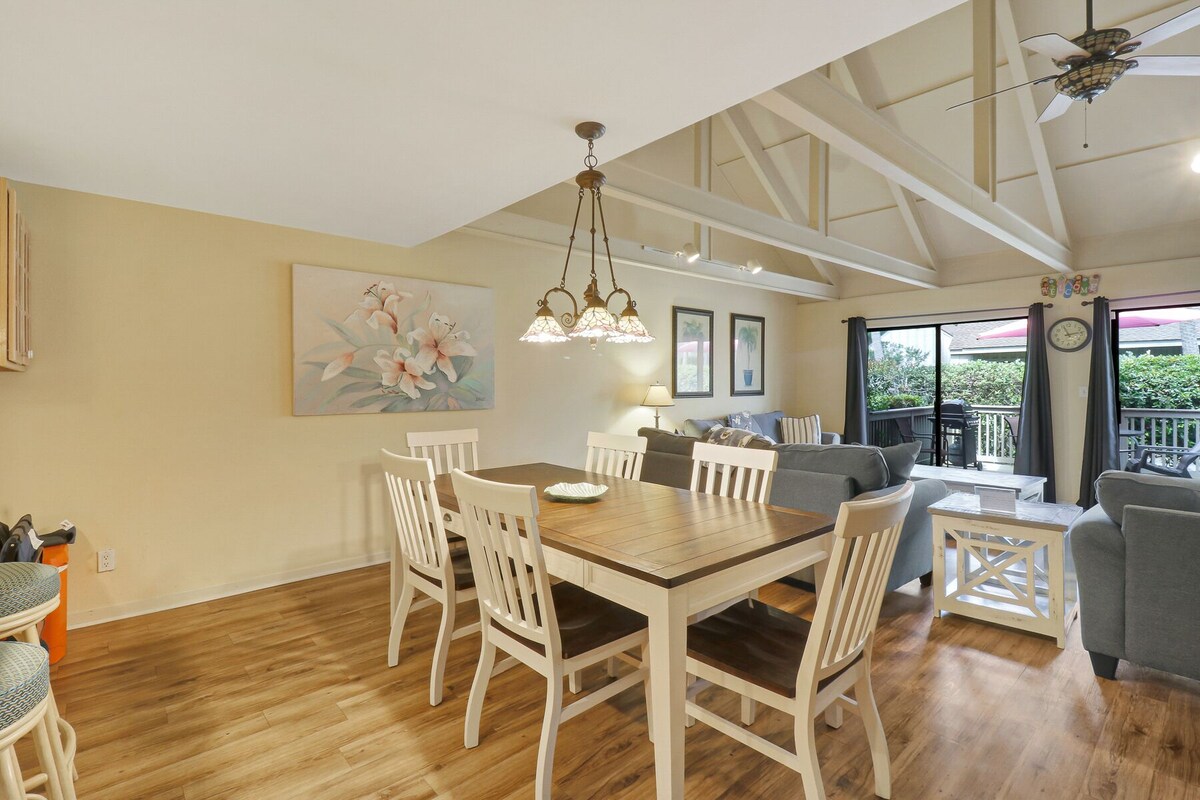 This vacation rental is both family and pet-friendly! Queens Grant is located in the popular Palmetto Dunes Resort, the center area of Hilton Head. With all amenities provided by the Award Winning Palmetto Dunes Resort, you are just minutes from the beach, steps from Hilton Head’s great bike paths, golf courses and terrific shopping and dining. There are 4 community swimming pools and the Robert Trent Jones golf course located just steps from my villa that can be enjoyed by family members. The Palmetto Dunes Tennis Center and General store are both just a short walk away. The recently renovated two bedroom private end unit villa can sleep a total of nine people when you utilize the queen sleep sofas in the living room. The spacious 1500 square feet villa has a large deck and patio area with beautifully maintained landscaping. The master bedroom has a patio, comfortable King-size bed, 42 inch HDTV, and brand new private tiled bathroom with extra large walk-in tile shower. The large living Room with vaulted ceiling has a brand new 60 inch flat screen TV in the living area, HIGH SPEED (Cable Modem) internet access WIFI (Wireless). WIFI is SECURE! The spacious kitchen has an open space design and is very well equipped with all the comforts of home. New washer and dryer off the kitchen area. We provide beach chairs, beach cart with big rollers and one cooler with big rollers. Sorry, NO SMOKING! This is not a timeshare! There are no tours or sales presentations! There are no hidden fees. If you are interested, e-mail me the following information: your full name; date of arrival, date of departure, number in party, if you have a pet, and telephone number. CHECK-IN TIME IS 4:00 P.M. AND CHECK-OUT TIME IS 10:00 A.M. Guests pay the parking passes at the security gate, up to two parking passes allowed. Relax and enjoy the good life here at Palmetto Dunes Resort! Our prices include all fees. No hidden fees.