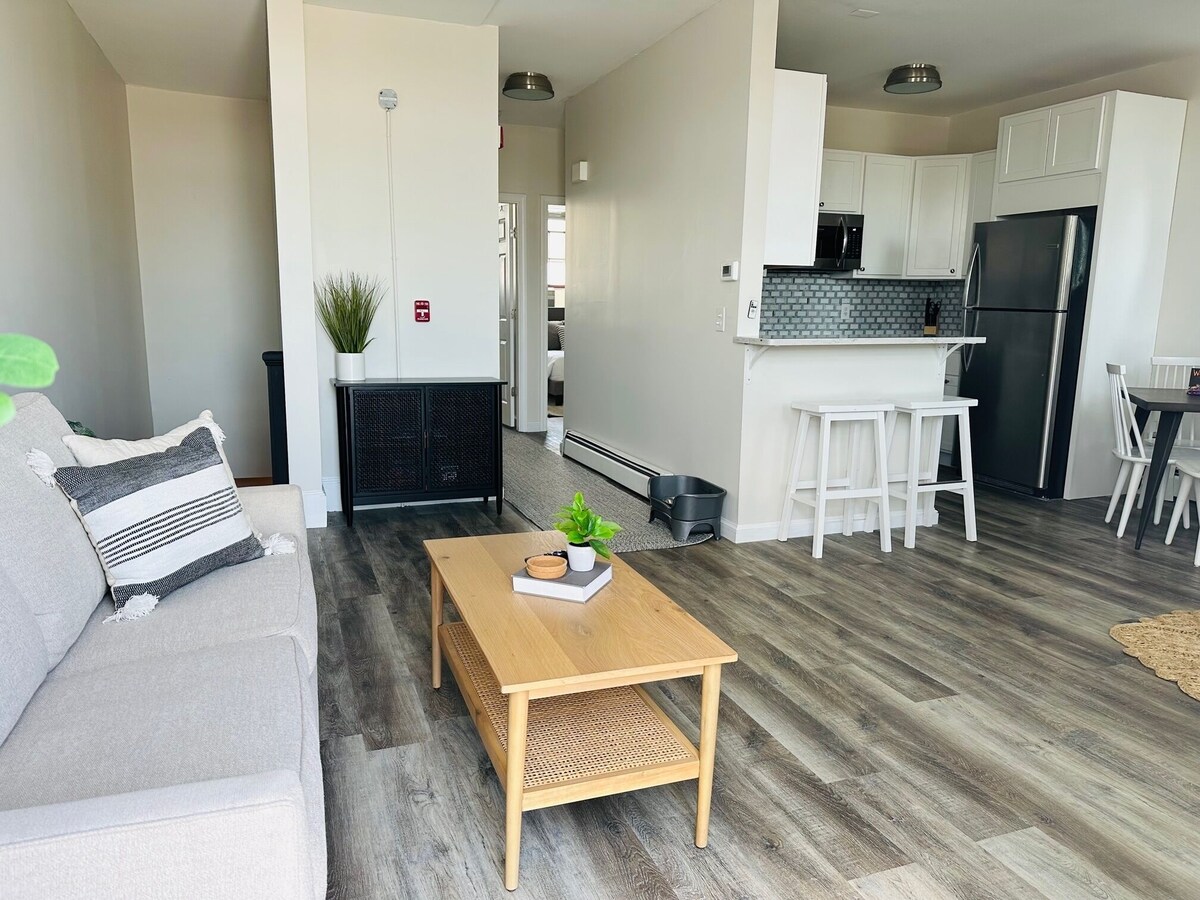Come stay in the heart of Portland's West End. Located just steps away from some of the best restaurants, cafes and bars in Portland's Longfellow Square area. This very recently renovated top floor, three story walk up apartment in a historic brownstone row house includes 2 bedrooms (queen beds), pullout full size sofa bed, and 1 full bathroom. Dedicated parking, Wifi, air conditioning (in both bedrooms and the living room), dish washer and in unit washer/dryer make this an ideal home away from home. Our prices include all fees. No hidden fees.