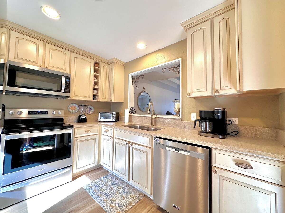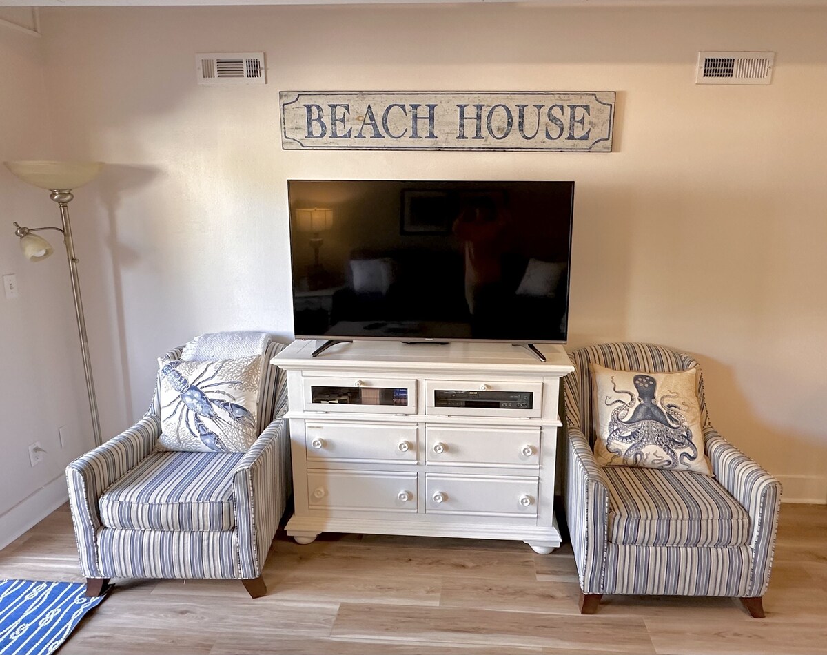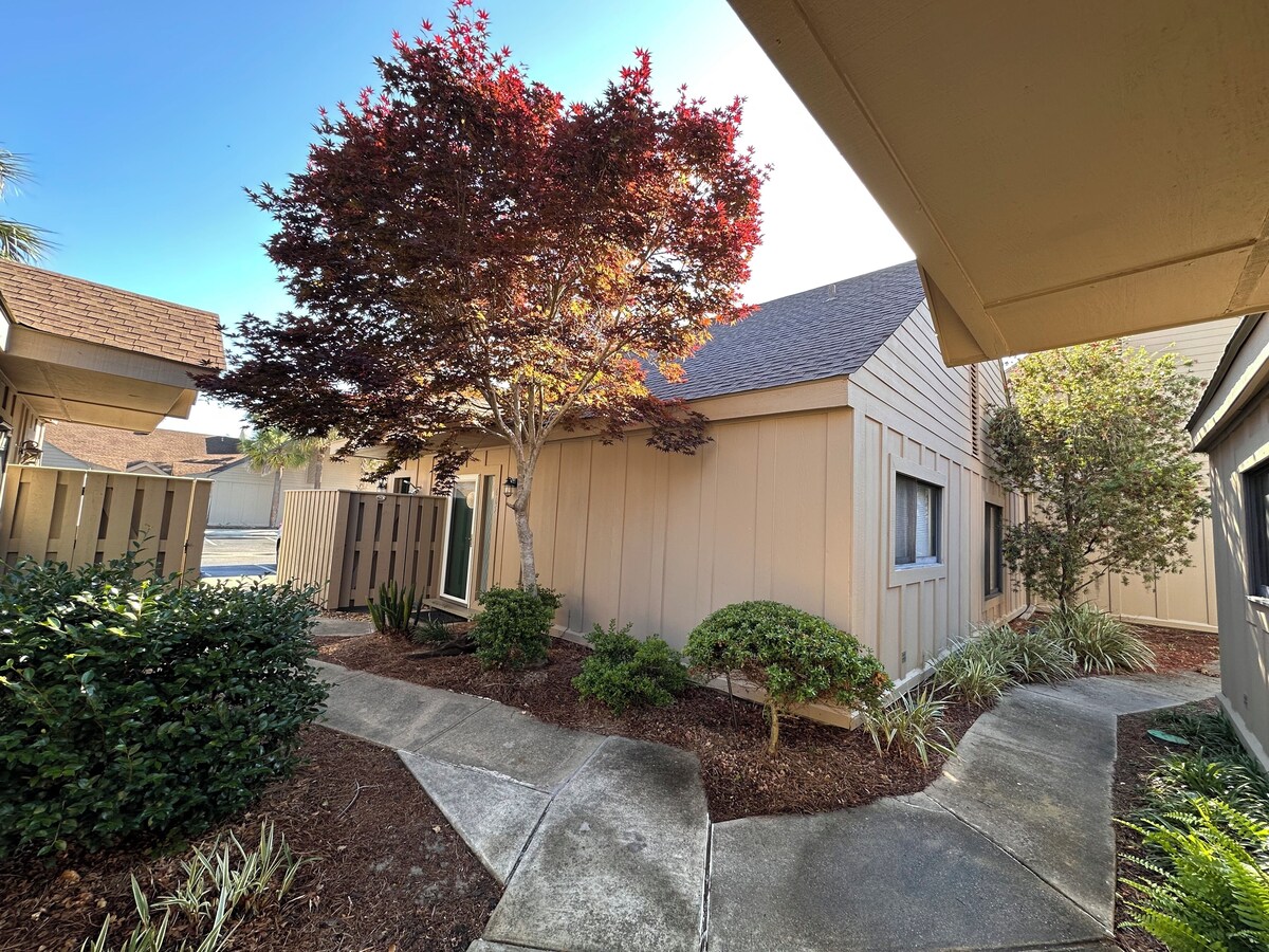 Ready for coastal breezes, fruity umbrellas in your drink, and some serious R&R? Then Latitude Adjustment is just what the doctor ordered. A perfect couples retreat. 6/10 a mile to the beach, 15 min walk or 5 min bike ride via large sidewalks shaded by beautiful oaks (see pic) This completely updated 1,100 sq ft villa has all the comforts of home, without the hassle. The kitchen is fully stocked. All you need to bring is the food. The living room is spacious, cozy and open to the dining room. 55”, 4K smart TV allows for streaming Netflix, etc. The glass front door and large sliding doors to the courtyard let in lots of natural light. Cozy king bed in master and queen bed in 2nd bedroom. Linens provided. Each bedroom has a flat screen. Various board games and books are also availabe for you to enjoy. Beach towels and chairs provided. Queen's Grant is part of the lovely Palmetto Dunes complex. Queens Grant has five swimming pools. You're a 15 min walk or 5 min bike ride to three miles of perfect beach, all in the shaded embrace of large trees that over hang your path. Hilton Head beaches are dog friendly. Don't forget to utilize this villa's private, outdoor shower for a refreshing rinse when you return. A general store and bike rental facility are also within walking distance and within the Palmetto Dunes. Enjoy 2,000 acres of beautifully manicured grounds, six miles of bike paths, and an 11 mile lagoon perfect for kayaking, or canoeing. Not to mention three golf courses, to include Robert Trent Jones. Over 20 tennis courts and a new world class, pickle ball facility! There's also tons of shopping available, to include two Tanger Outlet Malls just minutes away. This is a one story villa with NO stairs. Parking is available right next to the unit. We welcome large dogs. Our prices include all fees. No hidden fees.