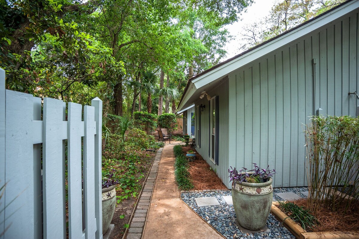 🏝 Only 500 ft. from the best semi private beach & fresh air on Hilton Head Island and a 5 minute bike ride to town. Not to many places can tick of these boxes! Need some fresh air, relaxation, peace & quiet? This popular 3 bedroom 2 bath private home with lots of room to spread out is at the end of a cul-de-sac, in North Forest Beach with palm trees, beach and a forest.