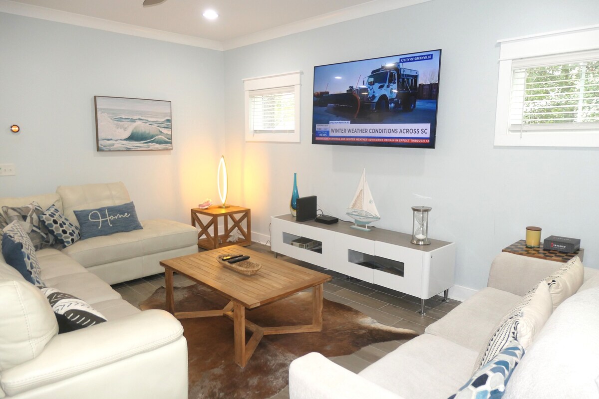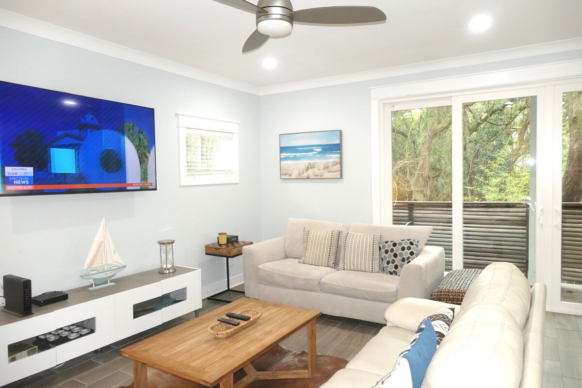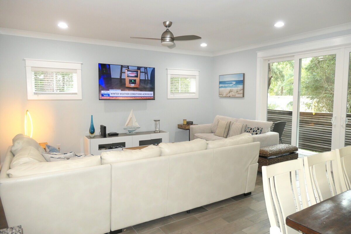 Property can sleep up to 20 comfortably depending on sleeping arrangements. The home is located in a gated community and is a easy walk to the beach on pathways and sidewalks. The beach also has a parking lot if you prefer to drive. The home is 4 stories and offers an elevator. The pool is on the ground level, it is heated and screened in to allow enjoyable bug free times. The main floor of the house offers a large great room for family and friends to gather. The dining room table seats 10 and their is additional seating at the island. The main level also includes a bedroom and full bathroom. The third level includes the master bedroom with a spacious walk in shower and two additional bedrooms with queen beds. Their is also a laundry room. The fourth level includes a bedroom with two queen beds as well as two bunk beds each having a full and two twins. We offer a crib and high chair for infants. This is a great property ad it will make your stay in Hilton Head Island that much more enjoyable Rear yard is fenced. Golf cart available for rent, check availability at time of booking, Dill Dinkers indoor pickleball minutes away. Our prices include all fees. No hidden fees.