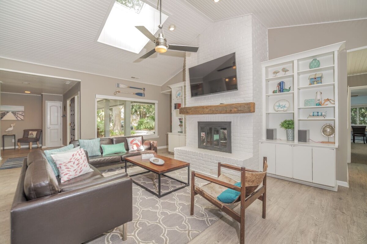 Hilton Head Island will undergo beach renourishment from September 2025 through May 2026 to help preserve the shoreline. During this time, small sections of beach (no more than 1,000 feet at a time) may be temporarily closed to pedestrian access as the project moves along. Plenty of beach will remain open and accessible for you to enjoy throughout your stay. Does Mooring Buoy 187 look familiar? If so, you may have seen it featured on HGTV’s “Vacation Home for Free” TV show. Walls were knocked out, rooms reconfigured, and everything raised to the level of a dream vacation getaway when this beautiful vacation home in the Palmetto Dunes neighborhood was completely renovated. Featuring four bedrooms and three beautifully outfitted bathrooms spread across one level, Mooring Buoy 187 can accommodate 12 guests (and your furry friends) comfortably! Mooring Buoy 187 is only five rows from the beach! Walk to the beach in five minutes or hop on a bike and be there in two. Mooring Buoy 187 is a sprawling ranch style home with a deck that backs up to a lagoon where you and your friends can kayak. If you have a kayak, be sure to bring it! This is a home that welcomes everyone, including your pets. The open design allows full accessibility for the mobility challenged and also makes it safe for any young ones in your group. When you drive up, you’ll discover there’s plenty of parking in front of the beautifully landscaped Mooring Buoy 187. With a yard this nice, you might linger for a few moments before you dive into your vacation! This is a home designed for outdoor living and features a covered patio area with comfy chairs and Adirondacks. The real showstopper is the deck out back that is right on the lagoon. There’s a gas grill where you can prepare the fish you plan to catch off the Harbour Town pier or on a fishing charter. You even have an enclosed outdoor shower in case the kids need to wash off sand from their trip to the beach. Mooring Buoy 187 is just as spectacular inside as it is out. An open floor plan with skylights, large windows, and wood floors gives the home a warm, inviting feel that draws people together for conversations, games, and fun. Sleek and modern, but exceptionally comfortable, furniture is a hallmark of this immaculate property. In addition to the main living room with its decorative fireplace, there’s a den containing a huge 60-inch flat-screen TV with cable. With so many options, your biggest group decision may be what to watch! There’s also free WiFi and a CD player to add to your enjoyment. With Coco’s on the Beach and the restaurants of Shelter Cove Marina close by, you have many options for dining out. However, with the beautifully updated Mooring Buoy 187 kitchen at your disposal, you may prefer to make a trip to the nearby Kroger’s or Whole Foods Market and prepare your meals at home. Brand-new white cabinets, Bosh stainless-steel appliances, and sprawling black countertops make cooking in this kitchen pure delight. You have everything you need from cookware to serving ware and utensils on hand. If you’re not dining outdoors on the patio (there's room for six!), you can gather your group around the dining room table. The ingenious design of Mooring Buoy 187 creates an actual dining room while also keeping the space open and accessible to the flow of the home design. Every meal you serve in this dining room will feel special. The table seats up to six. If additional places are needed, you can seat up to six additional guests at the breakfast bar. There’s so much to do and see on Hilton Head Island that your days will be filled with fun. Within Palmetto Dunes there are three golf courses, an award-winning tennis facility, and a General Store. You’ll also want to visit Harbour Town to tour the lighthouse, book a dolphin-watching cruise, shop, and maybe rent a bike to explore the extensive trail system on the island. When you’re ready to settle in for the night, you’ll love slipping into your king-size bed in the primary bedroom. If you can't fall asleep, there's a 60-inch flat-screen TV to catch up on your favorite shows before a restful snooze. The room has access to the deck where you can enjoy a late-night cocktail by the lagoon before drifting off to sleep to the gentle stirrings of the ceiling fan or enjoying the dancing flames of the remote-controlled fireplace. Your primary en-suite is just as impressive. With its dual vanities, each with a sink, and lots of counter space, you’ll be able to get ready for your day at your leisure. The second and third bedrooms each include a comfortable king-size bed, ceiling fans, and sitting areas as well as their own en-suite bathrooms with walk-in showers for the ultimate guest experience. The fourth bedroom is the perfect kid zone featuring two bunk beds for up to four children. Coupled with the books and games available at the property, just imagine the fun and adventures the kids will have at Mooring Buoy 187! Book your preferred dates to visit Mooring Buoy 187 today (three night minimum required). It’s a vacation destination you’ll remember fondly for years to come! Our prices include all fees. No hidden fees.