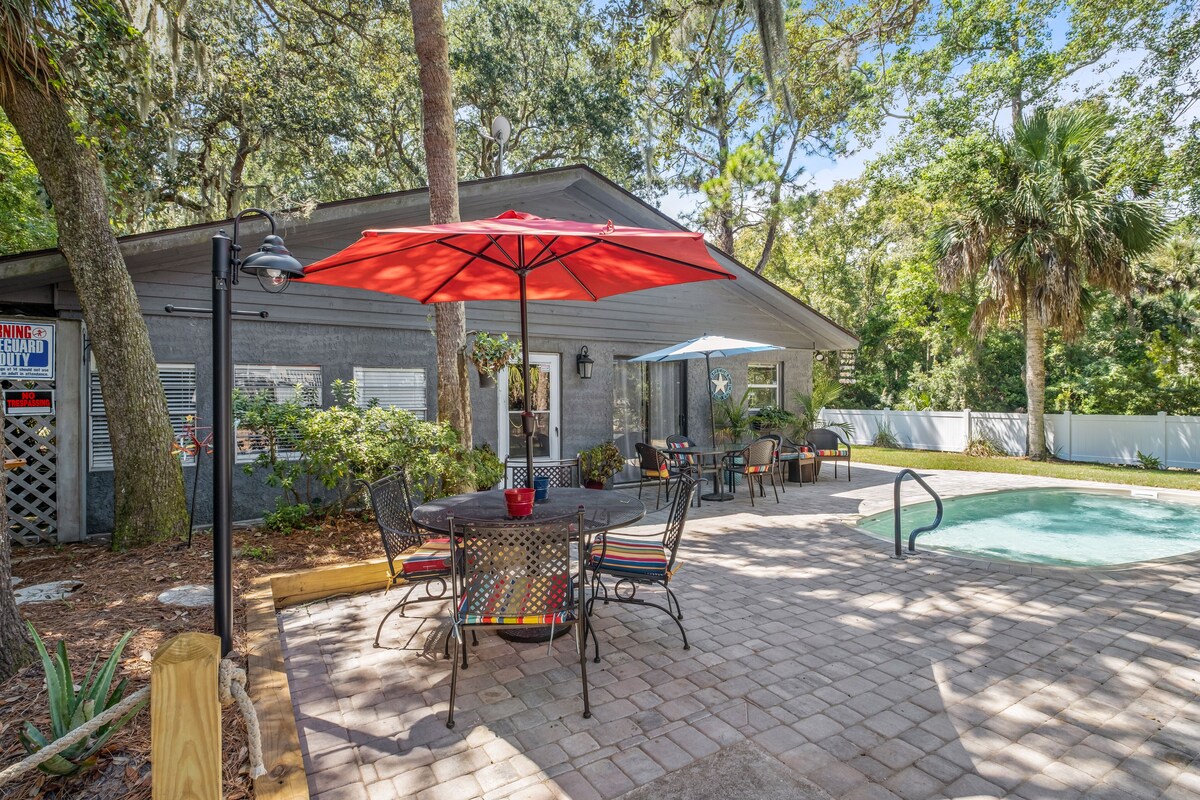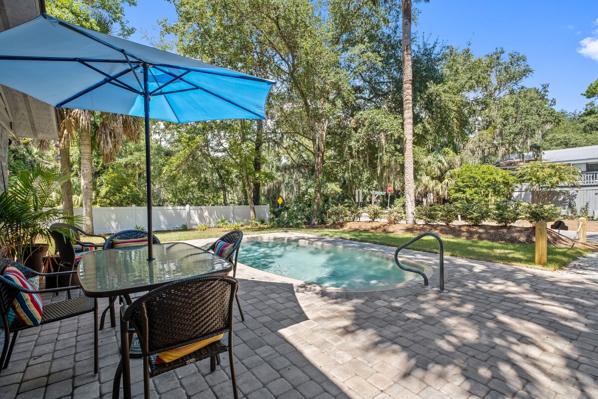 *Freshly remodeled bathrooms (including walk in master bathroom shower) and new flooring 11/2023! Instead of dealing with a large resort with thousands of guest you will have your own private home with a private parking area, private pool with large patio, outdoor shower, hammock area, seating and tables for outdoor entertaining, fenced in yard, and all the amenities of home including washer and dryer! There’s a grill by the pool in case you want to cook some burgers, steaks, or locally caught seafood. Outdoor Amenities: - Under one minute (45 seconds) walk to beach access - Private (non crowded) beach. South Forest Beach - Under one mile to Coligny Plaza shops and restaurants - Bike path extends all the way to Coligny Plaza - 6 minute walk from house on the beach to Loggerhead Landing beach bar (beach access) - Just a few minutes from Harbortown, Shelter Cove, and .25 miles from Sea Pines - Close to several great golf courses - Under a mile to the new green space park beside Coligny Plaza *no parking in back of the house *parking for 3-4 cars in driveway and off road Inside Amenities: -All One level home -Newly renovated beach cottage with new flooring in king bedroom, appliances and furniture -4 bedrooms, 2 full bathrooms -Sleeps 11 comfortably and 14 with a sleeper sofa in the family room and single futon -1 king, 1 queen, 1 futon, 1 single over full bunk, 2 sets of twin bunks, 1 Queen Pullout -Pet friendly -Kid friendly with pack and play, high chair, 2 baby gates, kid dishes and silverware -Propane grill -Plenty of outdoor seating and tables -6 HDTV's -WiFi -Well appointed and equipped kitchen This is a owner operated unit, please feel free to contact me about any more details or questions! Our prices include all fees. No hidden fees.