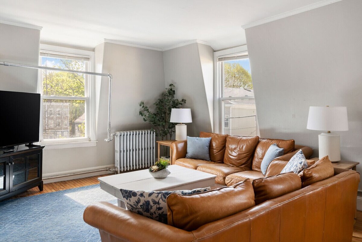 Welcome to Skyline 138! Experience the fusion of old world charm and modern comfort in this top floor apartment, nestled in the heart of Portland`s downtown historic district. From a location that can`t be beaten, you`ll enjoy elegant hardwood floors and tasteful period details, with mid-century furnishings, modern amenities, and local art carefully curated. Despite being walkable to all the great restaurants & old port, we are located on a quiet street, near Chaval & Holy Donut to name a few. THE SPACE: Skyline 138 boasts radiant heating and AC, galley kitchen complete with a gas range and stainless steel appliances, well appointed with plush leather couches and casper bedding, a large TV equipped with streaming services. Whether it`s a family vacation, a friends` reunion, or a fabulous bachelorette weekend, Skyline 138 has you covered! With three spacious bedrooms plus two optional queen sized air mattresses, this stylish haven can comfortably accommodate up to eight guests across 1350sqft of penthouse living space. Stay connected with our lightning-fast 2G fiber Wi-Fi and work remotely in our cozy office space. Free laundry area on site. INTERACTION: This home is lovingly and professionally managed by EVERROW PROPERTY. We respect our guests’ privacy and space, but our friendly, local team is available 24/7 to provide recommendations, answer questions, or respond in person should you need anything during your stay. NEIGHBORHOOD: We are in the heart of downtown Portland in the historic arts district where you will be within walking distance of many great restaurants, scenic views and historic neighborhoods. Skyline 138 is a five-minute walk from the Western Prom, Portland Farmer`s Market, Portland Museum of Art, Several Music Venues, many acclaimed restaurants, and Maine Medical Center. Additionally, you will be a 15-minute walk from the Old Port. TRAVEL: We are located in an area of downtown with free street parking. Spaces are generally abundant before 5pm. As it gets later, parking becomes more limited. Off street spaces can generally be made available for $25/night on a first come first serve basis. SAFE ENJOYMENT: We ask all guests to please take responsibility for their safety during their stay and to please take appropriate precautions. While children are welcome, please note that the property has not been childproofed, and therefore may not be suitable for those requiring a fully child-safe environment. Our prices include all fees. No hidden fees.