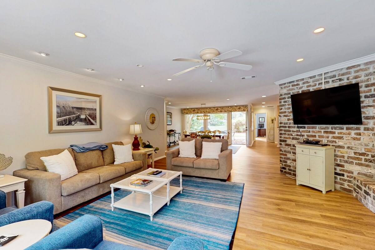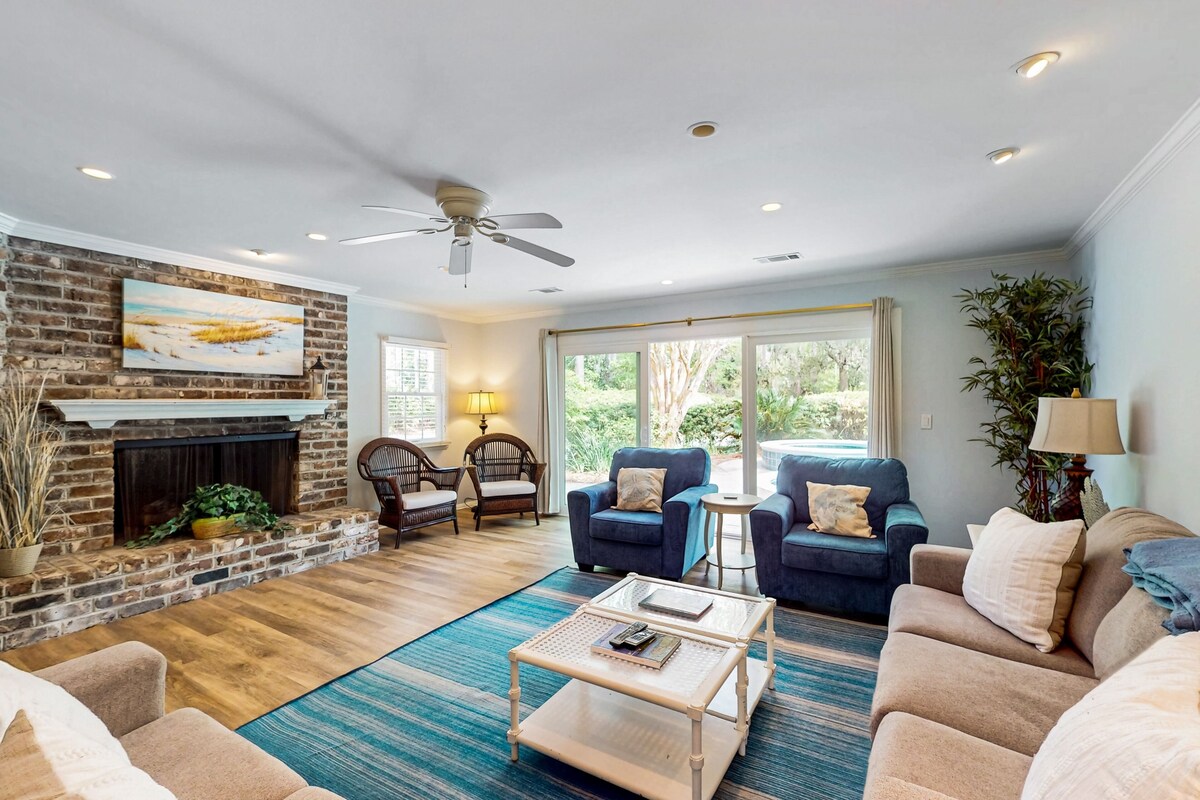 Tupelo Road 28 Our calendar is updated in real-time & our nightly rates are accurately displayed. Simply enter your desired dates and click 'Book Now!' Enjoy your very own slice of paradise with this magnificent ranch-style retreat. The open layout and extensive kitchen allow up to eight guests to comfortably spread out and make this place home. After a delicious meal, kick back and relax by streaming all your favorite movies on any of the four smart TVs, ensuring perfect downtime. Though the interior design and decor are stunning, the backyard is a secluded sanctuary with a spacious deck, private grill, and pool with spa! Spend an afternoon grilling up some juicy burgers and splitting time between lounging in the sun and taking a dip in the pool. Open a few bottles of wine and watch the golfers pass by as the sun goes down to finish off the perfect day. Heron Point by Pete Dye is remarkably close, as you can see the fairways from your backyard! If you want a day by the water, Sea Pines Beach is a short bike ride away where you take some time for yourself on the warm sand. Plus, a tremendous local surf shop is nearby for some shopping and gear if needed. Pool can be heated from Labor Day-Memorial day. 7 days notification is required in order to heat the pool. A fee of USD 65 per day plus tax must be paid prior to check-in. Guests can contact Vacasa after booking to purchase pool heat for your stay Things to Know Check-in time: 4:00 PM Check-out time: 10:00 AM All guests shall abide by Vacasa's good neighbor policy and shall not engage in illegal activity. Quiet hours are from 10:00 PM to 8:00 AM No smoking is permitted anywhere on the premises. Please note E-bikes are not allowed. This property is managed by Vacasa South Carolina LLC. If you are bringing a dog on your trip, the pet fee is already included in your quote when selecting ‘Yes’ to pets. If you would like to add more dogs, please contact us. Parking notes: There is free parking available for 4 vehicles. This rental is located on floor 1. 2 days notification is required in order to heat the pool and pool spa. A fee of USD 65 per day must be paid prior to check-in to purchase pool and pool spa heat for your stay. Damage waiver: The total cost of your reservation for this Property includes a nightly damage waiver fee, plus tax if applicable (the “Damage Waiver”). (A discount may be applied for stays of 28 nights or longer, if permitted.) The Damage Waiver covers you for up to $3,000 of accidental damage to the Property or its contents (such as furniture, fixtures, and appliances) as long as you report the incident to the host prior to checking out. The Damage Waiver fee eliminates the need for a traditional security deposit. More information can be downloaded from the \ on the checkout page. Due to local laws or HOA requirements, guests must be at least 25 years of age to book. Guests under 25 must be accompanied by a parent or legal guardian for the duration of the reservation. Our prices include all fees. No hidden fees.