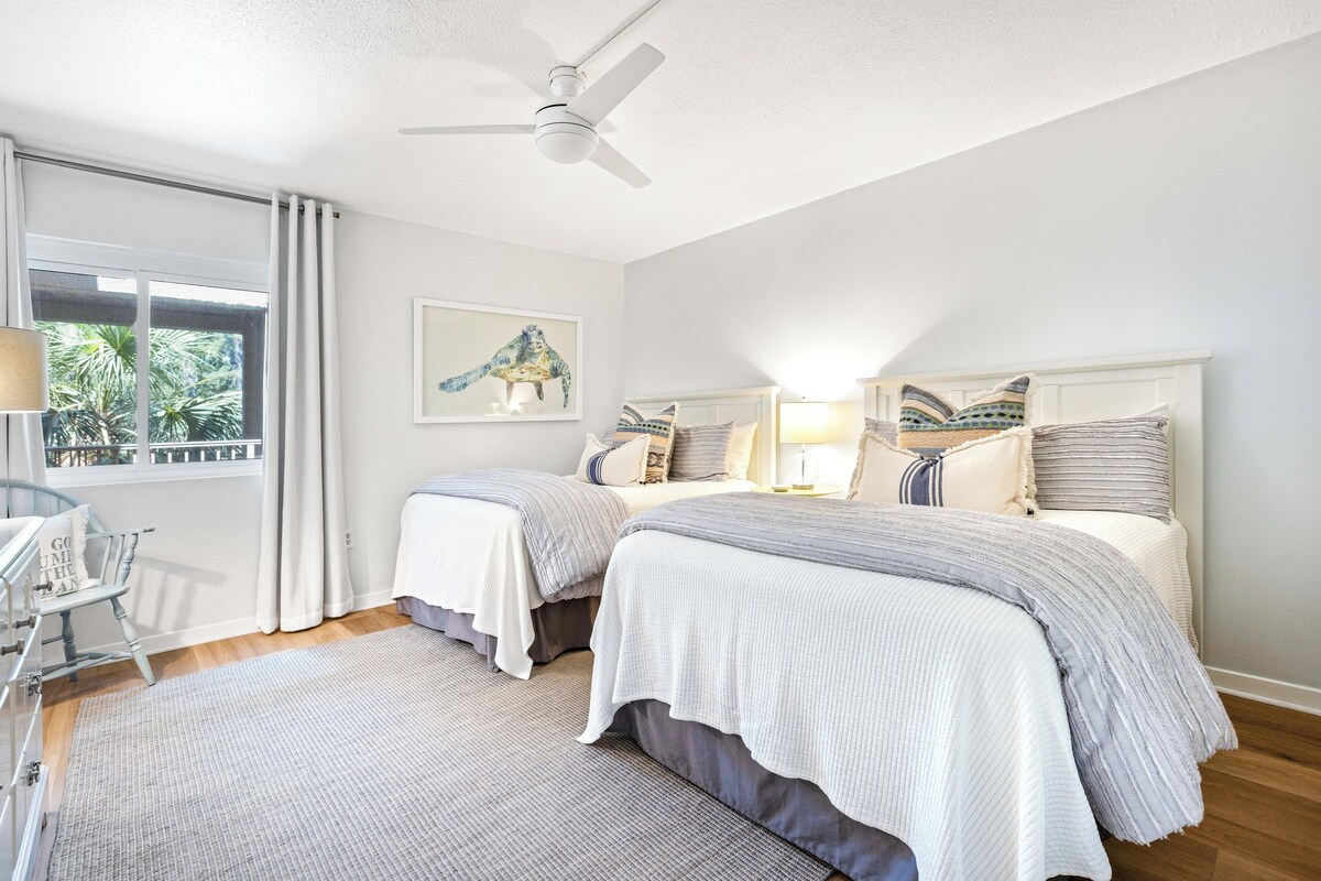 Welcome to the BESTNEST at 476 Plantation Club Villas. Here’s the skinny - just buzz us for more details! Our advertised rates are our very best rates and calendar shows real time availability. We encourage you to book online! • 2 BR/ 2 FBA with open floor plan. Fully renovated and NO carpet. • 3rd floor villa (w/ elevator) • Easy walk to Beach Club- Stand on the sand in about 7-12 minutes. • Villa pool just outside your front door and to the right or left is OPEN April-September each year. • 3rd floor, center building, with beautiful tree top and golf view year 'round. • Password protected WiFi. • Laundry is a breeze with big dedicated laundry room off the kitchen • Plenty of parking and a trolley stop (seasonal) right outside! What’s in a BESTNEST: • Our hallmark? CLEANLINESS! Yes, we’re shouting it out and so are our guests- just read our reviews. • Linens: Ahhhhh, yes! Completely comfortable, all cotton bed and bath linens including extra blankets and clean and comfy sleeping pillows, and clean kitchen linens. • Always provided in every BESTNEST in quantity for your stay: beach chairs/umbrellas/sand toys/beach cart, beach towels, a supremely equipped kitchen (in quality and quantity), hand soap, dish soap, kitchen sponges, trash bags, paper towels, tissues and toilet paper, your favorite hair dryer ever, fragrance free laundry soap and dryer sheets, ziploc bags, coffee filters, cleaning supplies, loads of quality coat and skirt hangers, and a few surprises. • Always courteous, knowledgeable, and professional, 24/7 guest service. • Allow us to amaze you, again and again. Our FAQ: HOW FAR TO BEACH: Out the front door, turn left on the leisure trail. 5-7 minutes biking or 7-10 minutes walk and your toes are in the surf. Prefer to drive? DAY AFTER LABOR DAY THROUGH MARCH, EVERYONE MAY PARK AT THE BEACH CLUB. PETS: We welcome your well-behaved dog (small to medium sized) for $350 per dog, maximum 2. Regrettably, Labradors and other oily coated breeds are not allowed. Dogs are never allowed on furniture or beds (or their humans have to pay a fine) and must be crated when left alone. No pets in your party? No problem as there is NO pet evidence in this villa. PAYMENTS: For reservations made thirty (30) days or less days prior to arrival, payment in full is due at the time the reservation is made. For reservations made thirty one (31) days or more prior to arrival, payment of 25% of the total is required, and the full amount of travel insurance premium, if accepted, is required at the time of booking. The balance of the final total is required thirty (30) days prior to arrival. Long term winter reservations policy differs- please inquire. CANCELLATIONS: You are welcome to cancel your reservation without penalty and receive full refund of your deposit up to 31 days prior to arrival. Cancellations made 14 days to 30 days prior to arrival will receive a 50% refund of total payment. At 13 days prior to arrival, your reservation becomes noncancelable and non-refundable. Travel insurance is always highly recommended. ABOUT US: We are proud to have developed a niche concept in vacation rentals on Hilton Head Island: Each and every BESTNEST is outfitted and equipped to exactly the same high standard, no matter the address. Nothing quite compares to a BESTNEST. Our prices include all fees. No hidden fees.
