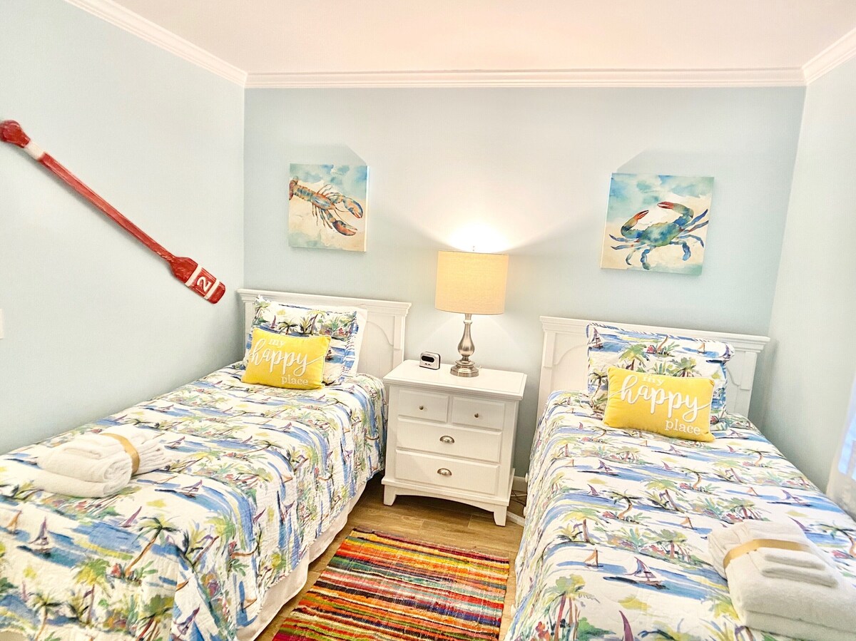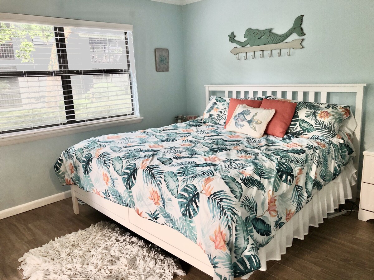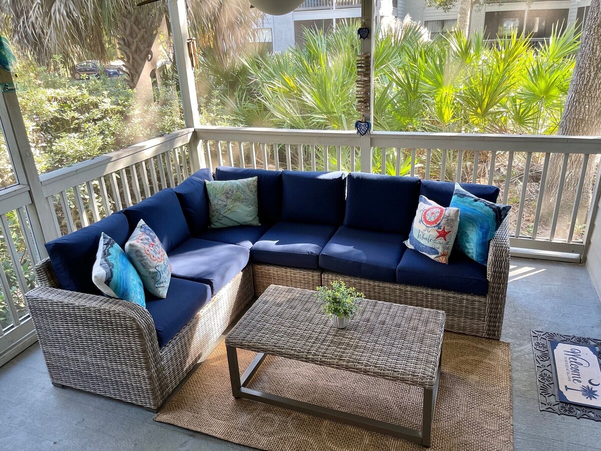 Beautiful first floor villa in South Forest Beach - 2BR 2BA + sleeper sofa villa (sleeps 6)! 8-10 minute walk to the beach. Close to Coligny! *** Welcome to our cheerful, beachy 2 bedroom, 2 bath villa at desired Ocean Breeze / Treetops! We purchased this beautiful villa in 2020 and are happy to share it with you. Our property comes with everything you need to make your stay comfortable and relaxing. Rest assured you will be in good hands!! Come and see why Hilton Head is our FAVORITE vacation getaway! Spend the day at the beach, relax by the three on-property pools, browse through the many local shops and enjoy good food all year round. Our beautifully furnished first-floor villa has tile flooring throughout. Our villa hosts an open floor plan allowing for an airy and light feeling throughout. You will love the beautiful shiplap on one wall as well as the coastal colors throughout. The fully stocked kitchen has butcher-block countertops and stainless steel appliances. The dining table comfortably seats six people and there are three additional bar stools for sitting at the kitchen bar. The Living Room is very comfortable and beckons you to sit back and relax. The large, comfortable sofa is equipped with a pull out queen-sized sleeper. A swivel accent chair allows you to rest comfortably after a fun day at the beach. A 48” Smart TV with Blu-ray/DVD player is available for your viewing pleasure. The TV is mounted on a swivel to allow for you to watch the big game from the comfort of our screened in porch. The Master Bedroom provides a comfortable king-sized bed, ample closet space, a 32” smart-TV with Blu-ray / DVD player and its own renovated Master Bath . The private bathroom offers double sinks and a large walk-in tiled shower with two additional massage water jets for that spa-like feeling. The second bedroom provides two twin beds, a 32” smart TV with Blu-ray / DVD player and a full bathroom with a tub and shower in the hall. Wide, sliding doors lead you to the delightful screened-in porch, which is accessible from both the Living Room and the Master Bedroom. Relax on the comfortable patio furniture and you will find a great view of South Carolina's beautiful Palmetto Trees, lush landscaping, and sub-tropical feel. This is a quiet and serene place to have breakfast or enjoy happy hour after a day at the beach. All televisions and blu-ray DVD players allow you to stream content from the Internet using your own Netflix, Amazon, Hulu, etc. accounts. Cable, free high speed WIFI, bed linens, bath and kitchen towels are included in your stay, along with a starter supply of detergent, soap, paper towels, trash liners and toilet paper. We have provided a nice collection of DVD's, books, puzzles and games for both children and adults to enjoy. We have a laundry room within our unit where you will be able to use the HE washer and dryer. A beach wagon, beach chairs and a cooler are also available for your use. Please remember to bring your own beach towels. Our unit has a keyless entry, a convenient option for self-check-in and not having to worry about carrying keys during your stay. There are 3 pools in the Ocean Breeze / Treetops development, and the closest is just steps from our front door. Each pool has free WIFI! The tennis court in Treetops is also conveniently located close to our villa. Unfamiliar with Hilton Head Island and all it has to offer? No worries, we have created a listing of all of our family's favorite things to do on the island full of dining recommendations, activities and entertainment, golfing and boating excursions and tips to help you discover all the fun available on the island. We have spent many years visiting the island and are happy to provide our recommendations and favorites places! While this is not a beachfront property, the beach is less than a mile away. Depending on what kind of mood you are in, it is an easy 8-10 minute walk, a 5 minute bike ride, or a 2 minute drive to the beach. Our villa is .5 miles from the Coligny Beach public parking lot. Coligny Beach offers endless restaurants, live entertainment and shopping. The Splash Pad will make any kid’s day at the boardwalk! It leads to the public beaches with a beautiful walkway, bath houses, and rocker swings. Great spot for pictures! Coligny is one of the most popular places on the island and you can easily walk or bike ride there. World class golf is available close by in Sea Pines, Shipyard and Palmetto Dunes. There’s also plenty of putt-putt for all ages. Daily tennis programs are available at Van Der Meer Tennis (which is next door) as well as South Beach Racquet Club. Pickleball is also available daily at Palmetto Dunes and South Beach Racquet Clubs. Visit the neighboring sights of Harbour Town and its Lighthouse, the famous Salty Dog Café of South Beach (don’t forget to buy a t-shirt!), Coligny Beach and the boats of Shelter Cove. Biking is another popular activity on the island. Bring your own bike or rent locally. Bikes can be delivered and picked up right from your doorstep and the property has plenty of bike racks for you to use. Miles of trails will bring you hours of sightseeing and exercise throughout the week. Free onsite parking is included with your rental with a maximum of 2 cars. **** SWIMMING POOL SEASON is APRIL 1ST TO NOVEMBER 1ST. FREE WIFI AVAILABLE AT ALL POOLS. The pools are not heated but are very warm in the summer months. **** Our villa welcomes pets and there are several pet waste stations around the property. Our villa is non-smoking. All Peak season rentals are from Saturday to Saturday. Out-of-season rentals are available for shorter (or longer!) periods of time. Monthly SNOW BIRDS WELCOME! Our villa would be perfect for the Heritage Golf Tournament! We will not rent to anyone under the age of 25 years unless accompanied by an adult guardian or parent for the entire rental period. Once payment is made, you will be asked to sign our Guest Rental Agreement. On