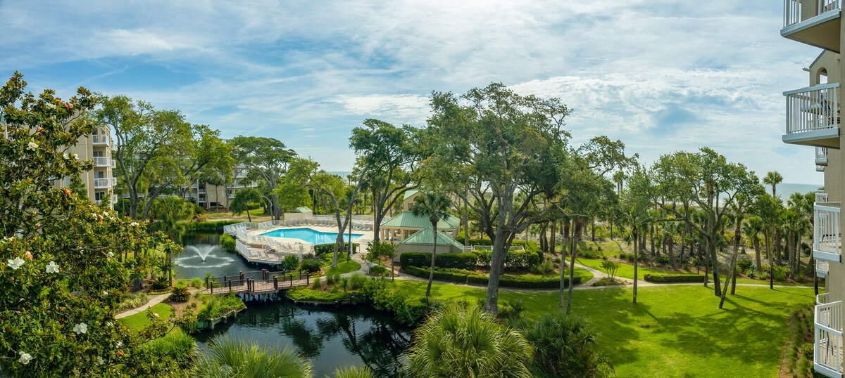 -Ocean Views -Walk to Beach -Complex Pool + Hot Tub -2 Free Adult Bikes (Valid for stays from 3 - 21 nights) -Pet-Friendly Welcome to Barrington Court 309, a third floor retreat with stunning oceanfront views in Palmetto Dunes. The villa is furnished with sunny bright beach colors to ensure your total relaxation. This villa sleeps four and features a full kitchen, a big deck with comfortable seating and an unbeatable view overlooking the beach, oceanfront pool and the Atlantic. Living Spaces: The living room features a new flat screen TV and a new DVD/VCR unit, and there is also a second half bath off the foyer for your convenience. You can enjoy a meal at the upholstered seating in the dining area or grab a quick bite at the kitchen's breakfast bar. Additionally, a Maytag washer and dryer are available. Accommodations: The master bedroom suite is equipped with a king-size bed, mirrored double closet, cable TV, a balcony, and a whirlpool tub in the master bath. The great room offers a queen-size sleeper sofa and access to a half bath. Outdoors: From your private covered balcony, you can hear the ocean, view the sunrise or the reflected sunset while enjoying a panoramic view of the ocean, the beach, the gardens, and the pool! Area: Palmetto Dunes offers an array of amenities: -3 miles of private beach -3 championship golf courses -26 tennis courts -Bike/kayak rentals -General store, marina, shops/restaurants -Beach access at the Disney Resort (5-minute bike ride away, parking available) -Guests can also enjoy free transit w AC via the Palmetto Dunes Buggy within Palmetto Dunes and Shelter Cove for convenient exploration. When you book with Hilton Head Properties R & R, your vacation comes with added perks: -Complimentary Activities & Equipment: Enjoy two bikes, two beach chairs (Memorial Day–Labor Day), and daily activities like golf, ropes courses, mini-golf, and a dolphin tour, with coverage for one person for stays of 3–21 nights. Complex Pool & Hot Tub (Heated October 1-November 30, April). Access to the Palmetto Dunes Buggy. -Luxurious Touches: Relax with plush beach towels and first-morning Starbucks coffee to start your day in style. Elevator in building. Community grills and outdoor showers. -Prompt Maintenance Support: Our full-time maintenance team ensures a hassle-free stay. -Thoughtful Amenities: We provide high-quality bedding, bath towels, beach towels, and a starter kit with toiletries, detergents, and paper products to make packing easier. Entry is keyless. -Pets: Bring your furry friends along for the fun! (Non-refundable pet fee, approved breed, size, and age) Choose us for a worry-free vacation filled with comfort, convenience, and unforgettable memories. Let us help make your dream getaway a reality! Our prices include all fees. No hidden fees.