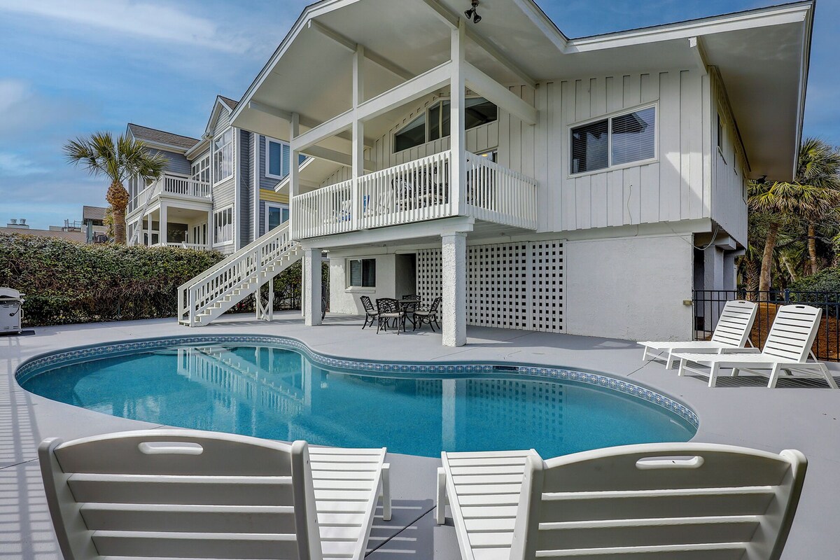 Welcome to 99 Dune Lane! This four bedroom, three bathroom home is located oceanfront in the Forest Beach area of Hilton Head Island and can host a group of up to ten guests. This is a dog friendly rental & allows up to two dogs total. The pet fee is $250 plus tax. If you are planning on bringing your furry friend, please reach out to our office in advance to pay the additional fee and confirm your dog. This oceanfront home features a private pool that is fenced in + a private walkway to the beach. The pool also offers complimentary pool heat seasonally. As long as the temperature doesn't fall below 55 degrees, you are all set to enjoy FREE pool heat typically March through May & September through October. One of the three bathrooms is located outside off the carport and pool area. This is a full bathroom with a shower that is located downstairs, outside by the pool area. All bedrooms and common areas are located on one level at the home - which is elevated up one flight of stairs. On the left side of the home, there is a queen bedroom located oceanfront. The second bedroom has two double beds. These two bedrooms share a hall bathroom with a walk-in shower. On the right side of the home, you have the two remaining bedrooms. Bedroom three has a queen bed and bedroom four has two double beds. These two bedrooms share a hall bathroom with a walk-in shower. The living room faces the ocean and has direct access to a deck. There are stairs from the deck that will lead you down to the pool. Downstairs off the carport/pool area you will see a room with the the washer/dryer & third bathroom. This bathroom & laundry room are accessed from the outside of the home downstairs off the carport. 99 Dune Lane is a quaint, classic older Forest Beach rental home. If you are looking for a clean, comfortable, and moderately priced ocean home - 99 Dune Lane is for you! While it has had a few updates, it is more of a smaller leisure beach home. **BEDDING CONFIGURATION** • Bedroom 1: Queen (Oceanview - Flat Screen TV - Shared Hallway Bathroom #1) • Bedroom 2: Two Doubles (Flat Screen TV - Shared Hallway Bathroom #1) • Bedroom 3: Queen (Oceanview - Flat Screen TV - Shared Hallway Bathroom #2) • Bedroom 4: Two Doubles (Flat Screen TV - Shared Hallway Bathroom #2) **ADDITIONAL INFORMATION** • Distance to Beach: Direct Oceanfront with a Private Beach Boardwalk • Pool Info: Private pool fenced in - approximately 30' x 10' (kidney shaped pool). The pool is able to be heated seasonally only. It is not able to be heated if the temperatures drop below 55 degrees at any point during your stay. Must reach out to our office at least two weeks prior to your arrival to arrange for pool heat. 2025 Updates: New pool deck, pool plaster + tile & new beach boardwalk. • Fully Equipped Kitchen with a Regular Drip Coffee Maker & Keurig • Washer/Dryer, Wireless Internet, Gas Grill • 8 Beach Towels • Dog Friendly: This home permits a max of two dogs to stay in the home. The pet fee is $250 plus tax – please reach out to our office in advance to confirm and pay the additional pet fee. • 1,624 Square Feet • Paying guest reservations staying between 4-27 nights will receive a $250 VayK Life beach/bike gear credit. This will be emailed to you after making a reservation and is valid for VayK Life rentals only. • There is parking available at the home for up to three cars total -- two in the driveway and one in the carport. About the area… Often referred to as the unofficial “downtown district” of Hilton Head Island, Forest Beach is one of the island’s original communities and retains much of the charm that has set it apart since its inception. Boasting 3 miles of coastline reaching from Sea Pines to Shipyard, including beaches widely regarded as the island’s best, Forest Beach’s natural beauty and breathtaking views are without parallel. Forest Beach is also home to Coligny Plaza - one of the island’s most popular shopping district. Our prices include all fees. No hidden fees.