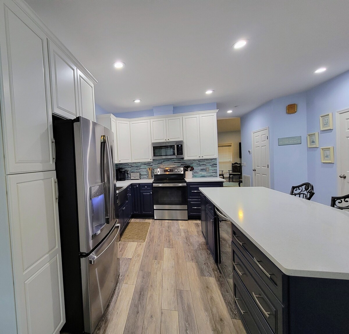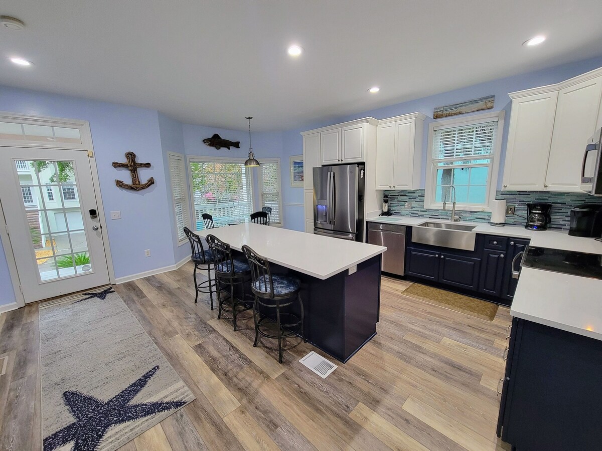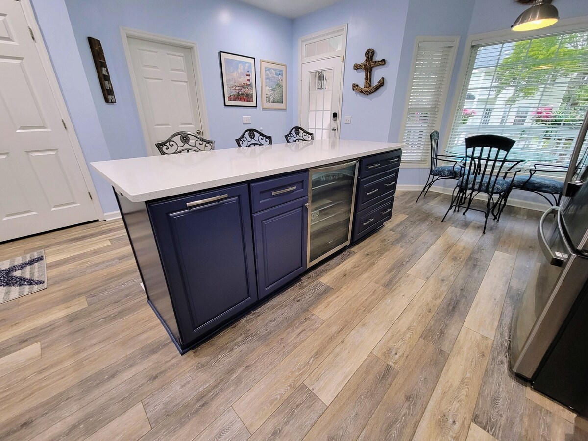 EASY BEACH ACCESS IN A COMFORTABLE PRIVATE HOME - 2024 Full Home Renovation Just Completed - All new luxury bathrooms and modern open concept kitchen with large island. Walk out the front door to beautiful Driessen Beach Park, just 100 yards away, and a short boardwalk stroll to the sand. Driessen Beach is a quiet locals beach, away from the crowds. You will also have the seclusion and beauty of a modern, updated home with a private heatable pool and a spacious deck and patio, where you can relax and enjoy the quiet beauty of the nature preserve behind our house. The perfect home for families, friends (and dogs!). This well-maintained private home is comfortable inside and out, including 4 bedrooms, 3.5 bathrooms, a large dining area, and a fully equipped kitchen and laundry room. You'll also find the comforts of home such as Flat Screen Smart-TV's, Cable and High Speed Internet/WiFi. On the outside, walk out from the living room to our 12x21 deck, perfect for relaxing, grilling, and dining while enjoying the quiet of the beautiful nature preserve. Walk down the steps to enjoy the rest of our backyard oasis - sit in and watch TV in our new covered paver patio area, and swim in the private pool, all in a private, fenced-in yard. The Pool can be heated for your comfort during your stay. The best part of our home is its location - a four-minute walk to the beach through beautiful Driessen Beach Town Park - a hidden gem on Hilton Head Island. It features a fun modern playground for the kids, comfort stations, outdoor showers, a foot rinse station, and a four-minute walk to the beach on an elevated boardwalk through a beautiful, undisturbed natural area. You'll also find whatever you need for the beach, including chairs, toys, and carts available for your use in the basement of our home. We are also dog-friendly ($300/week). House Details: First Floor: Kitchen completely updated in 2022 with new appliances and a large island for eating and gathering. Also, updated laundry room with a large new washer and dryer. Spacious living room with 65-inch Flat Screen Smart-TV, large sectional sofa, and dining area for 10. Bedroom 1: First Floor Master Bedroom, King Bed, Flat Screen, Smart TV, Master bath completely renovated in 2022 with new luxury shower and vanity. Bedroom 2: Second Floor, Master Bedroom, King Bed, Flat Screen TV, with a newly renovated luxury Private Bathroom with a beautiful tile shower/tub combo and vanity room with LED mirror. Bedroom 3: Second Floor, Two Queen Beds, Flat Screen Smart-TV, Newly Renovated Luxury Bathroom with large tile shower and LED mirrors. Bedroom 4: Second Floor, Two Queen Beds, Flat Screen Smart-TV, Newly Renovated Luxury Bathroom with large tile shower and LED mirrors. Private Pool - Dimensions: 17' x 6' 5-foot depth (Heated - additional fee $300/week) Parking for 2 cars in driveway and 2 in garage. Doorbell camera for security. Sleeps 10 comfortably. What's Near Our Home: - Under five-minute walk (0.2 miles to the sand) to Driessen Beach Park and beach access (with a matted walkway so it's easy to pull a cooler or cart) - Less than 5-minute drive to grocery, retail, and restaurants at Shelter Cove - Easy access to world-class golf courses, including Port Royal, Palmetto Dunes, and Shipyard (discounts available) - Less than 6 miles to Coligny Plaza shops, restaurants, and the new green-space park. Our prices include all fees. No hidden fees.
