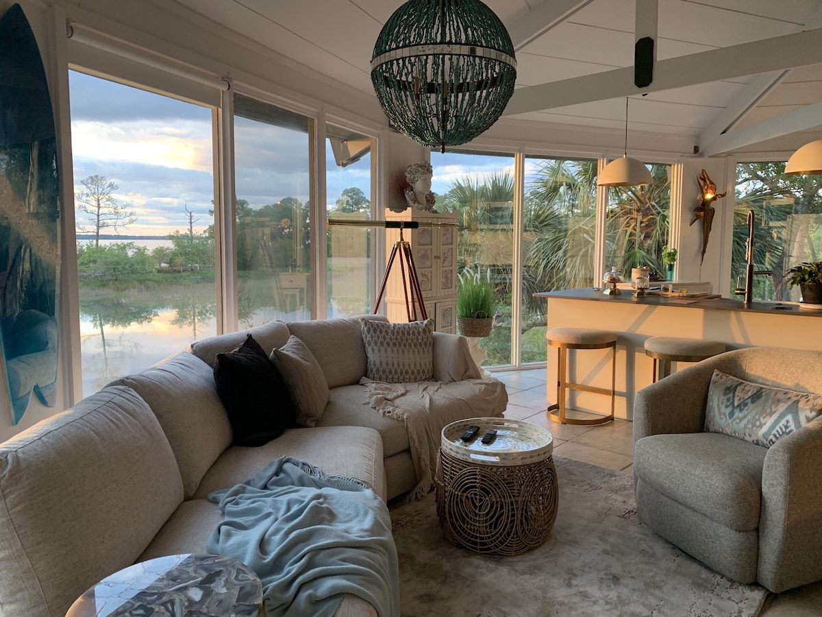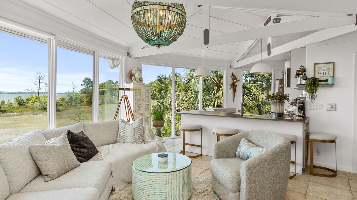 This Sea Loft is located just steps from the famous Harbour Town Restaurants and shops inside of the beautiful Sea Pines Resort. Imagine your own treehouse with 180 degree views of the marsh and Calibogue Sound. The uniqueness lies in the solitude you sense when you stand at the living room with floor to ceiling windows 15' above the marsh below and see everything... sunset vistas, deer and dolphins. Harbour Town with all of the shops, restaurants and big boat marina is only steps away. The pool you can access is the South Beach Pool ( $75/week for up to 5 people). the expansive Sea Pines Beach is yours to use free and is accessed by multiple bike paths and close by trolley service. There is a recording security camera at the front door and parties are not allowed. Our prices include all fees. No hidden fees.