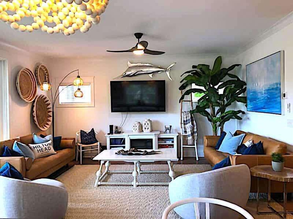 <p> Hilton Head Island SC Beach House on the Peaceful Lagoon -Spacious! SLEEPS up to 25- -Walk to the best beaches! The Hilton House is the perfect escape to the Island Life. Perfect for entertaining guests!</p> <p> Catch the Free Trolly service that comes past the home April through Labor Day called \ to easily get around the whole island and enjoy the restaurants , shopping and entertainment!</p> <p> Walk to The Best Beaches on the Island, 6 COMFORTABLE Bedroom /4 Bathroom , FREE FAST WIFI, Salt Water FREE Heated Private Pool, Poolside top of the line comfortable seating lounge, with dining table and Propane Fire Pit. Commercial 4200 Games 1-2 Player Arcade Machine, Movie Theater Room with Super Comfortable Seating, Tournament Ping Pong Table, Better than Hotel comfortable beds! On the Lake, Lavish Luxury.</p> <p> **Pet Friendly- Must Read- ---If your pet will be enjoying the home with you, Add them to the reservation upon booking as there is a pet fee. Any Guests who bring a pet that is not on the reservation will be charged $300/ea. </p> <p> *** There is a 3% Credit card processing fee that's non refundable for any cancelations made within Cancelation Policy. </p> <p>1 LARGE King Bedroom Suite with Bathroom (Portable Crib and play yard in closet),</p> <p>3 Comfortable Queen Bedrooms</p> <p>6 Full/Double size bunk beds in the Bunk Room Bedroom and 3 Twin Trundles and Arcade</p> <p>3 Twin (Triple Bunk bed) in Theater Room with very comfortable sofa seating.</p> <p> Welcome to The Hilton House!</p> <p>**Pre Booking Information: Your Host lives next door. If you need anything please ask! Non Smoking, No Illegal Substances.</p> <p>Get Your Vacation BOOKED Now for the Best Location on Hilton Head Island Sun and Fun- BRAND NEW BUILD Beach House- Filling up really FAST! Everything at your fingertips- Arrive and Relax Lounge by your own Private Heated SALTWATER Pool listening to the fountain as it shimmers on the lagoon.</p> <p>-Vacation in Luxury! Entertain /Enjoy your Family and Friends in a Professional Magazine Beach House Boho Decorated and Landscaped Beach Home!</p> <p>-Cozy, Romantic Electric Fireplace in Living room AND In Master Bedroom!</p> <p>-Movie Theater Room with ultimate comfort leather seating and Foosball Coffee Table. -Towels/Beach Towels and Bedding Linens all provided! - FAST WIFI - Desks/Work Stations and a printer/fax ⁃Fully Stocked Kitchen (blender, coffee makers all size, coffee grinder, Keurig, toaster, lobster pot, commercial ice maker, Air Frier ⁃You will Enjoy the Easy 6 minute walk on tree shaded paved path to the most Pristine Beautiful Beaches! ⁃Best Private Heated Saltwater Pool with Posh group seating Near Grill! </p> <p> -Washing Machine and Dryer ⁃5 Star Hotel Beds and Bedding for Comfortable Nights Sleep -Nest Security for your peace of mind. -Smart Roku TVs in every room including Pool Area ⁃Propane BBQ Grill in Heated Saltwater Pool Area with plenty of comfortable seating and ideal for entertaining! ⁃Shimmering Fountain/Lagoon View Right Outside! ⁃Commercial Ice Maker-Never run out of ice for Beach Coolers and Fun Drinks! ⁃2 Wagons and Beach Chairs/Gear, Cooler for drinks/snacks and Fun Beach/Sand toys and Bodyboards are Provided ⁃Professional Ping Pong Table in Garage and CornHole! ⁃World Famous Golf Courses and Tennis all around close by! ⁃LOADED with Family Games, Board Games, Card Games and Monopoly for Game nights! ⁃Movie Theater Room with COMFORTABLE Seating!</p> <p> - Full 4500 Game REAL Commercial Cocktail table Arcade Machine- FREE UNLIMITED PLAY ⁃Close to( 2 minutes) Restaurants, Entertainment, Museums, Ferry, Antiques, Best Shopping Around, Live Bands Local! ⁃Gated Neighborhood and Easy KeyCode for entry into home. (We will assign and message you the code the week before your trip). ⁃Walk to Adventure Cove Mini Golf and Games Arcade is right outside Neighborhood! ⁃Highchair, Mini Crib and Pack'n Play included ⁃Everything you need for Memories that last a Lifetime! ⁃Professionally Coastal Low Country Bohemian Decorated Home Perfect Getaway Retreat for Family Reunion, Sport Teams, Work Gatherings, Wedding Guests or just Fun at the Beach! Central Island Location- Everything you want and need nearby! -A Master Bedroom with comfortable King Bed with adjoining bathroom, Mini Crib -3 separate Queen Bedrooms (Two Queen Bedrooms have adjoining bathrooms) -Movie Theater room with triple twin bunk beds. -One large Bunk Room/Playroom with 6 Full beds (3 Bunks) and three Twin size Trundles -sleeps 15 Come escape to the beautiful Hilton Head Island and enjoy a stay in our BRAND NEW Sandcastle by the Sea! We are just a short, few minutes stroll down a relaxing path to the Folly Field Beach entrance ..that's just a 2 minute bike ride or 30 second car drive. Sandcastles by the Sea has both a gated vehicle and pedestrian entrance that is kept closed at 7pm to 7 am. Code will be provided at check in. Starting on the ground level, the home features a large garage under the house with a beach cart, beach chairs, and kids beach toys as well as a ping pong tableand CornHole. The back of the ground level under the home boasts a gorgeous sparkling, heated, private saltwater pool with paver patio. The pool area includes relaxing patio loungers, chairs, a propane grill, plenty of seating and comfortable round sofa with fire pit! Flying in? Hilton Head Airport 2.5 miles away (6 min drive) Enjoy the serenity of each guest having his or her own room. Award Winning Island of SC- Voted Conde Naste Traveler Readers Choice Award again 2020! Bike Walk and Jogging Trails covering entire Island of Hilton Head, Horse Back Riding, Golf, Mini Golf, Sunset Cruises, Surfing, Longboarding, Fishing Charters, Best Shopping, Antiquing, and Boutique- All Right Here for you to Enjoy! Basketball Courts lit till 10pm nearby at Chaplin Park. <a href=\ >https://www.hiltonheadisland.o...</a> Weddings on the Beach, Corporate Meetings, Military Graduation, Marin