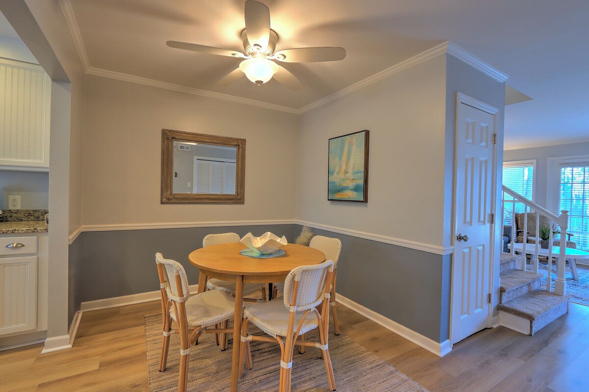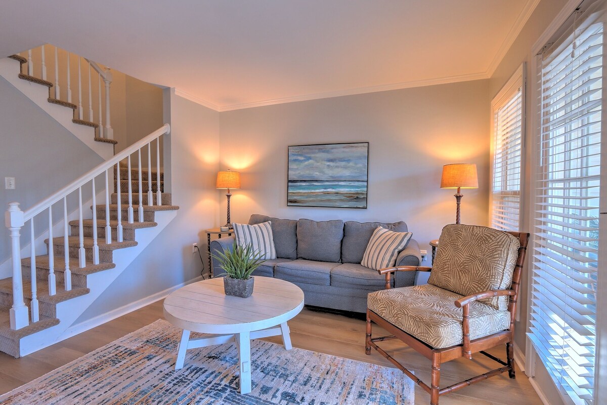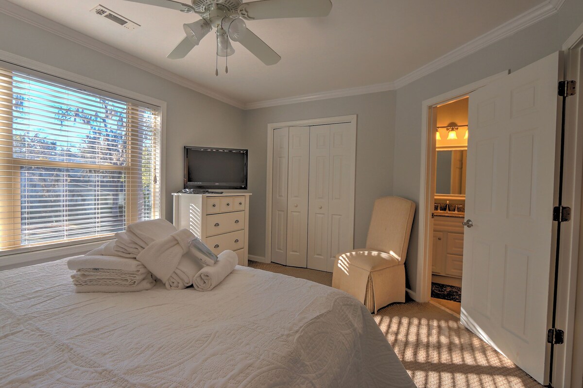 This modern 2 bed 2.5 bath cottage features access to great community amenities including private beach access and the Shipyard beach club. Within the gates of Shipyard, enjoy world renowned golf courses, biking trails, restaurants, bars, spas, and the Sonesta Resort. Dozens of restaurants offering up Hilton Head Island's famous local seafood, craft beer, and the HHI Distillery are a stones throw away. Shopping and site seeing are a walk or bike-ride away at Coligny Plaza and Celebration Park. HHI's newest attraction, The Bank, is a short walk from our cottage. It features a local brewery, various food vendors, an expansive outdoor area and often live music THE COTTAGE: *Appointed with luxury amenities including cable TV's in the living area and bedrooms, Roku streaming stick in the living area, free high speed WiFi, fully stocked kitchen, and large outdoor private patio overlooking the Shipyard Golf Course. *The kitchen is fully stocked with everything needed to cook and serve a homemade meal, including condiments, coffee, tea, and even child-safe plastic dinnerware. *The open concept dining area located between the kitchen and living area features a dining room table with room to fit 4-6 people. *The living area features a flatscreen television, access to the patio, and views of the beautiful Shipyard Golf Course. *The master bedroom has a queen sized bed, flat-screen television with cable, and an en suite updated bathroom. *The second bedroom has a queen sized bed, flat-screen television with cable, and an en suite bathroom. *Towels, linens, soaps, shampoos, dishwashing detergent, and laundry detergent are all included and complimentary. THE LOCATION: *Beach access at the Shipyard Beach is a 20-minute walk from our cottage. One beach parking pass and two gate passes are included. Shipyard boasts miles of bike paths, the Van der Meer Tennis Resort, and the Sonesta Resort. *Shipyard Golf Club features 27 holes of the most spectacular golf views imaginable and was rated one of the finest layouts on the Champions Tour. *Hilton Head has been voted the #1 island in the country by Conde Nast Travel for 4 years in a row! There are 250+ restaurants and 24 golf courses on the island. We pack a lot on our beautiful 12 miles long by 5-mile wide piece of paradise. We are looking forward to having you stay with us! Book today! Our prices include all fees. No hidden fees.