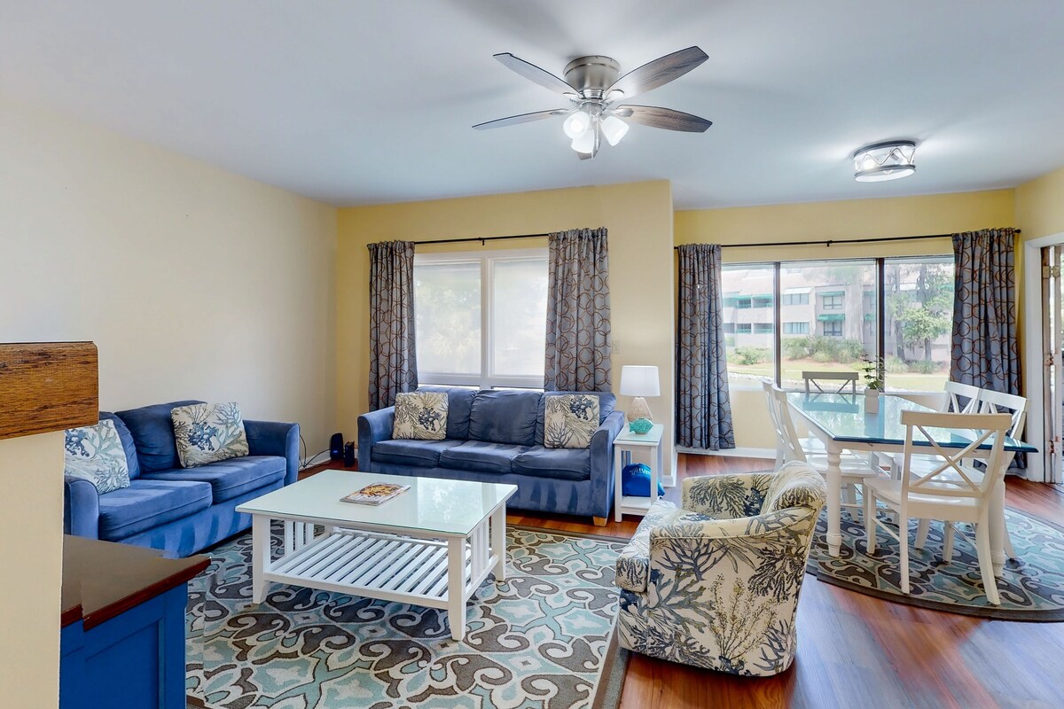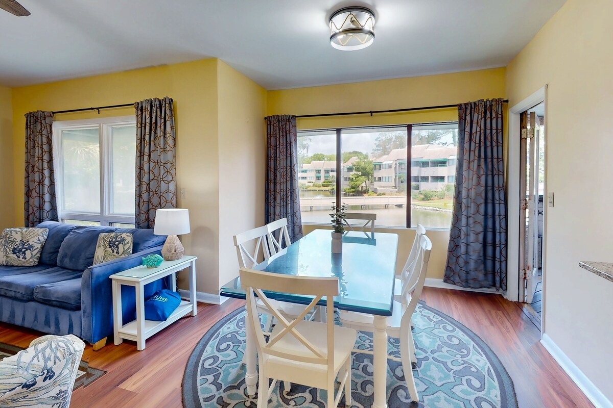 Anchorage 7449 Our calendar is updated in real-time & our nightly rates are accurately displayed. Simply enter your desired dates and click 'Book Now!' Located in a beautiful community near Shelter Cove Marina, this lovely getaway is a sure bet for your island vacation! This coastal condo features an open-concept layout with a sunlit living area with a TV, and a sofa bed provides an extra sleeping option. The chef in the group can whip up delectable dishes in the immaculate kitchen, which offers a full suite of appliances and ample cookware. Start your mornings with coffee on the lagoon-view balcony, which has a table for alfresco dining. This vacation rental provides access to a shared pool and hot tub. The beach is only a short drive or bike ride away when you want to hit the waves! Winter beach lovers rejoice - this rental is snowbird-friendly for year-round enjoyment. Added perks include central air-conditioning and a private washer/dryer. THINGS TO KNOW Please note E-bikes are not allowed. This property is managed by Vacasa South Carolina LLC. If you are bringing a dog on your trip, the pet fee is already included in your quote when selecting ‘Yes’ to pets. If you would like to add more dogs, please contact us. Parking notes: There is parking available for a fee and charges will apply for 1 vehicle. This rental is located on floor 1. Damage waiver: The total cost of your reservation for this Property includes a nightly damage waiver fee, plus tax if applicable (the “Damage Waiver”). (A discount may be applied for stays of 28 nights or longer, if permitted.) The Damage Waiver covers you for up to $3,000 of accidental damage to the Property or its contents (such as furniture, fixtures, and appliances) as long as you report the incident to the host prior to checking out. The Damage Waiver fee eliminates the need for a traditional security deposit. More information can be downloaded from the \ on the checkout page. Due to local laws or HOA requirements, guests must be at least 25 years of age to book. Guests under 25 must be accompanied by a parent or legal guardian for the duration of the reservation. Our prices include all fees. No hidden fees.