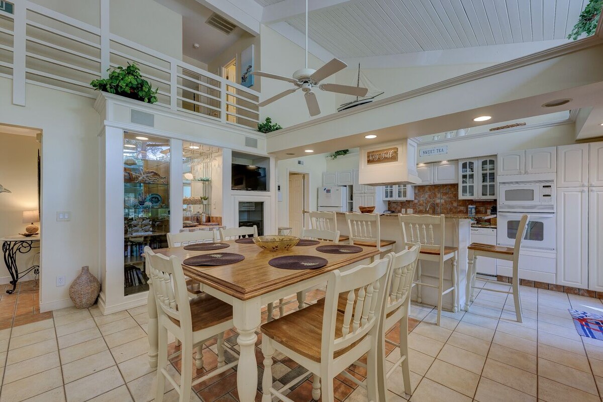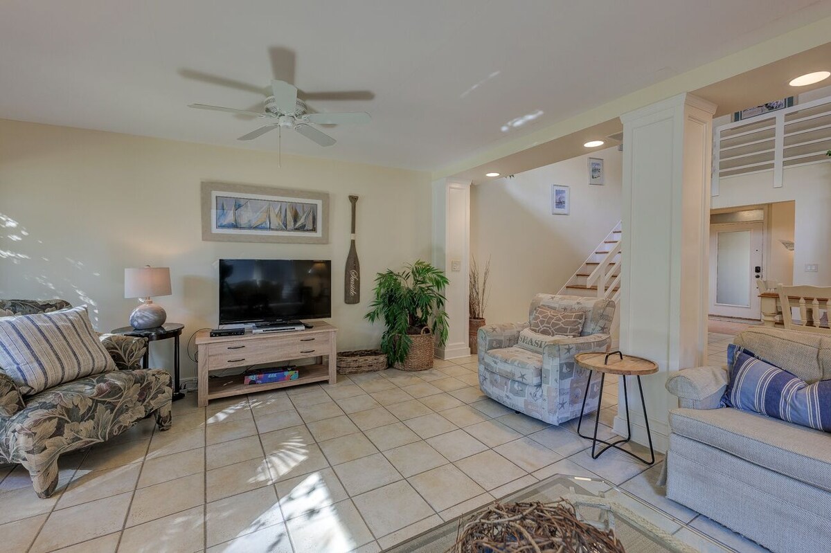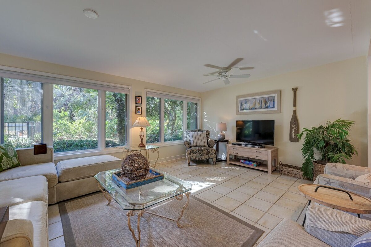 Heated community pool! 5 Minute Walk to the Beach. This spacious and beautifully maintained 2-story Lighthouse Road Villa offers the perfect getaway in the heart of Sea Pines. Tucked near the 10th fairway of the Atlantic Dunes course, you're just a short walk from the ocean and Sea Pines Beach Club. The villa sleeps 7 and features a comfortable layout ideal for families or groups. The primary bedroom includes a king bed and ensuite bathroom. The first guest bedroom has a queen bed, while the third bedroom is outfitted with a full and a twin bed — perfect for kids or additional guests. The two upstairs bedrooms share a hallway bath. Each bedroom has its own TV for your convenience. Step outside to a large, peaceful patio with views of the pool and surrounding nature — perfect for relaxing or grilling up dinner on the gas grill. Located in “Bicycle Heaven,” this villa includes 4 adult bikes so you can explore the scenic, shaded bike trails throughout Sea Pines with ease. Don’t miss your chance to stay in this ideal beach retreat with unbeatable proximity to sand, surf, and all Sea Pines has to offer. Book now and enjoy your perfect Sea Pines vacation! Basic Features: • Under 5 minute walk to Beach Club • Community pool shared with only 8 other units. Heated March to November. • 3 bed/2 bath • King, Queen, Full, Twin • Washer & Dryer • TV in all bedrooms • Gas Grill on Patio • Wifi Internet • 4 Beach Chairs • 4 Free Adult Bicycles • 1 Car pass into Sea Pines for your stay • Beach towels • Hair dryer Our prices include all fees. No hidden fees.