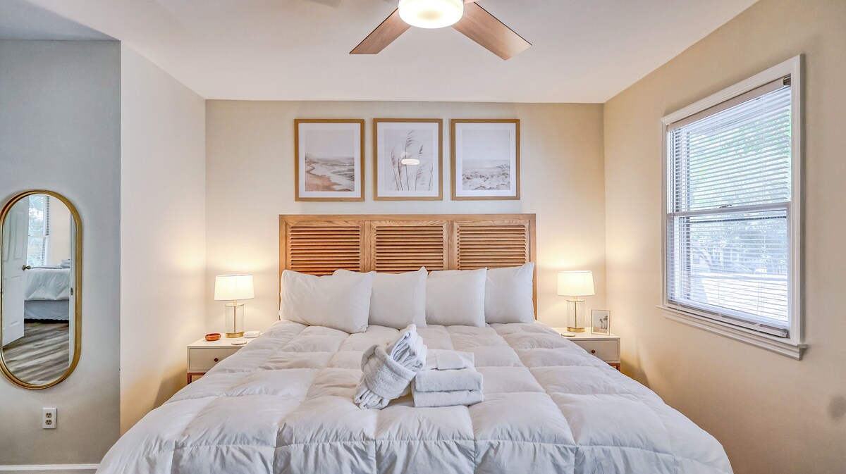 Enjoy your Hilton Head Island vacation home away from home in this lovely and newly decorated villa, which has an on-site pool, a new tennis court, and free Wi-Fi. Step into our newly furnished villa, where every detail is designed with your comfort in mind. Sink into the plush seating of the open living and dining area, where large windows invite natural light! Whether you're unwinding with a good book or enjoying a lively family game night, our comfortable layout ensures there's room for everyone to gather and create unforgettable memories. Prepare delicious meals in the well-equipped kitchen with modern appliances and sleek countertops. And with a new Keurig and dishwasher, your vacation chores are a breeze! Step outside onto the deck, fire up the grill for a BBQ or relax and soak in the tranquil ambiance. After a day of island adventures, retreat to your private sanctuary in one of our cozy bedrooms. Each features new memory foam mattresses for a restful night's sleep. With individual bathrooms for added convenience and TVs in every room for entertainment, relaxation is always at your fingertips. But the fun doesn't end indoors! Take a dip in the on-site pool, challenge your family to a friendly match on the new tennis court, or unwind with complimentary Wi-Fi. For those furry family members, our pet-friendly policy ensures that no one gets left behind. Don't let this opportunity slip away—book your stay at 78 Ocean Breeze today and discover why Hilton Head Island is the ultimate destination for making lifelong memories. This vacation rental allows dogs of any size for an additional fee of $250. ($100 for each additional pet). Enjoy a vacation reimagined with host2coast, your trusted Hilton Head Island Property Management partner. BR 1 - 1 King Bed BR 2 - 1 Queen Bed BR 3 - 2 Twin / Per the regime, only two people are allowed per bedroom. Our prices include all fees. No hidden fees.